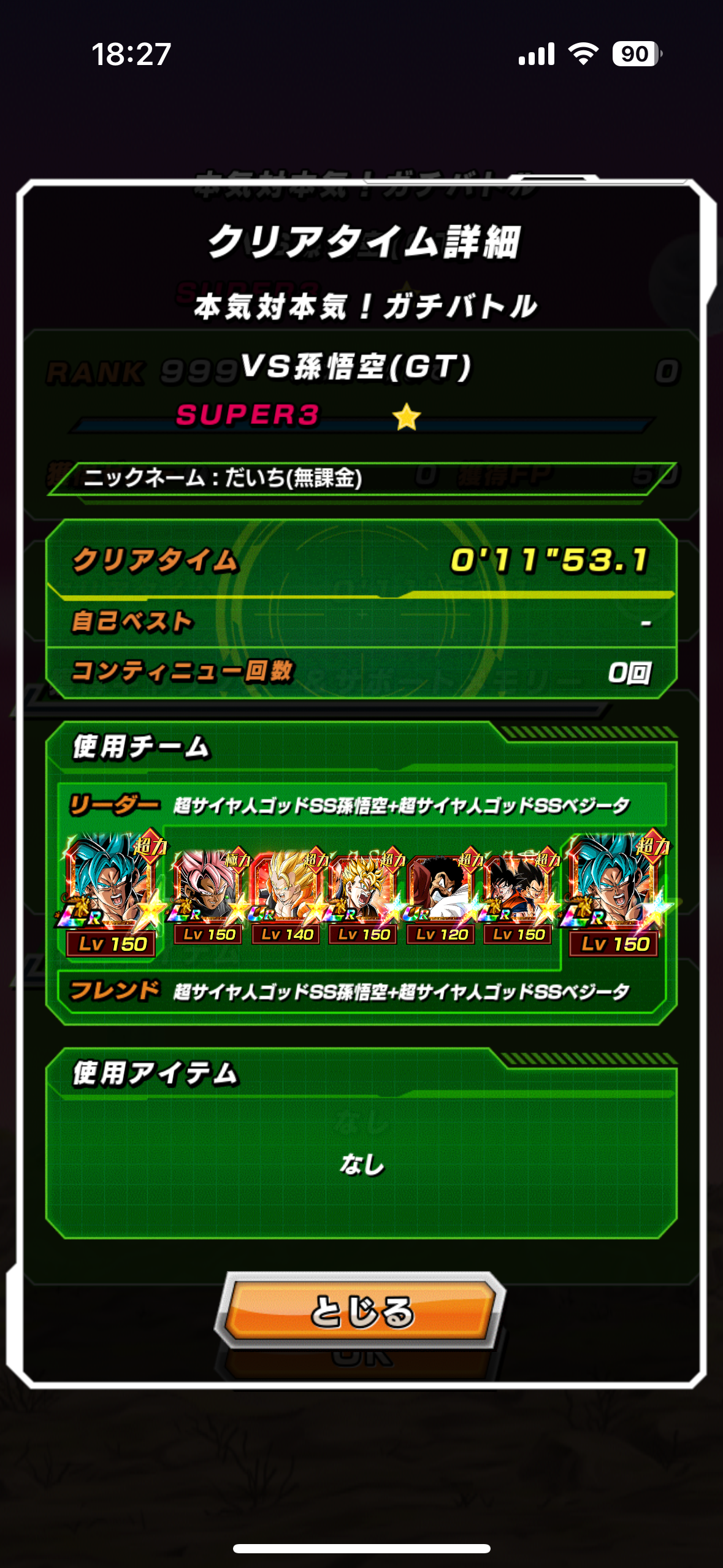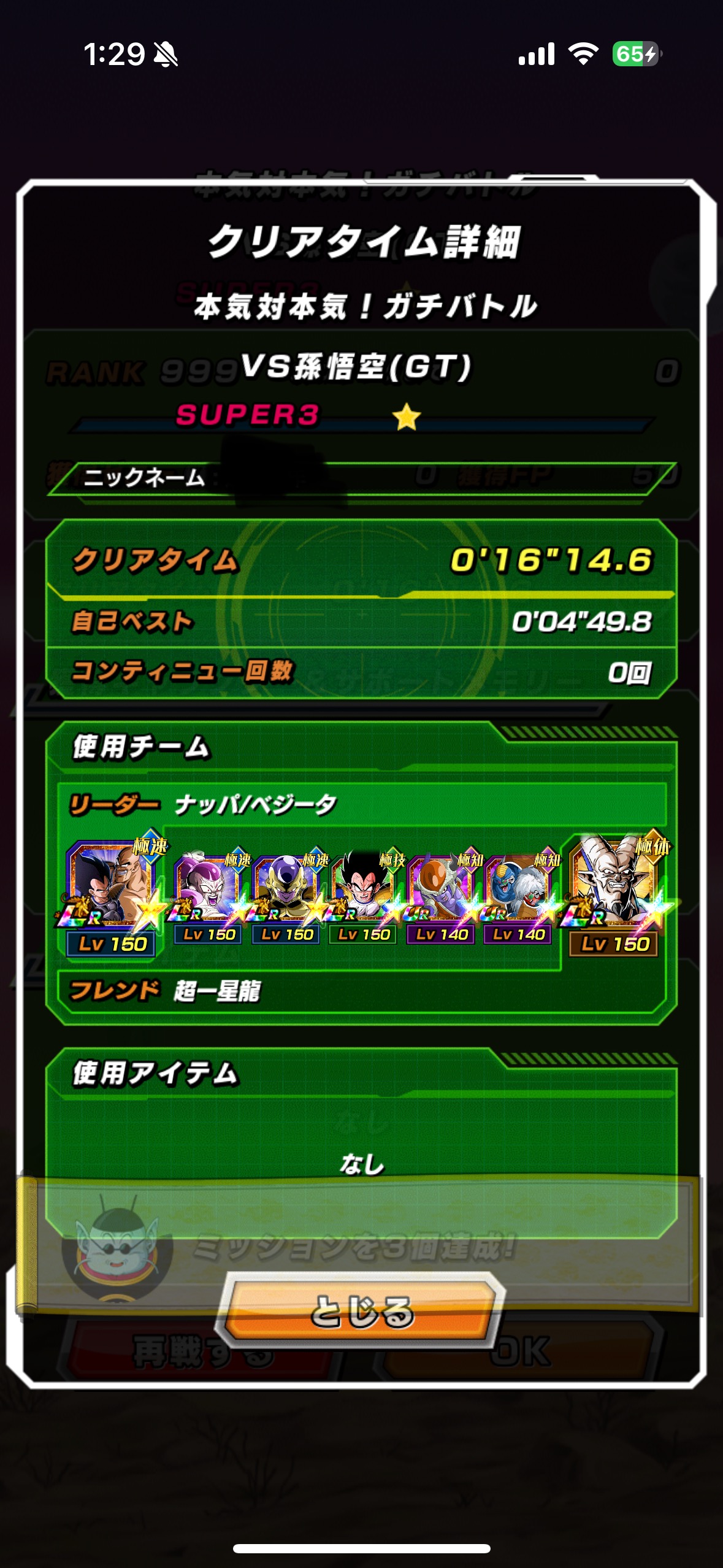 3悟空で4ターン使って5ターン目からベジットで吹っ飛ばすだけだけどメタルクウラはこの手のミッションでほんと強いな
