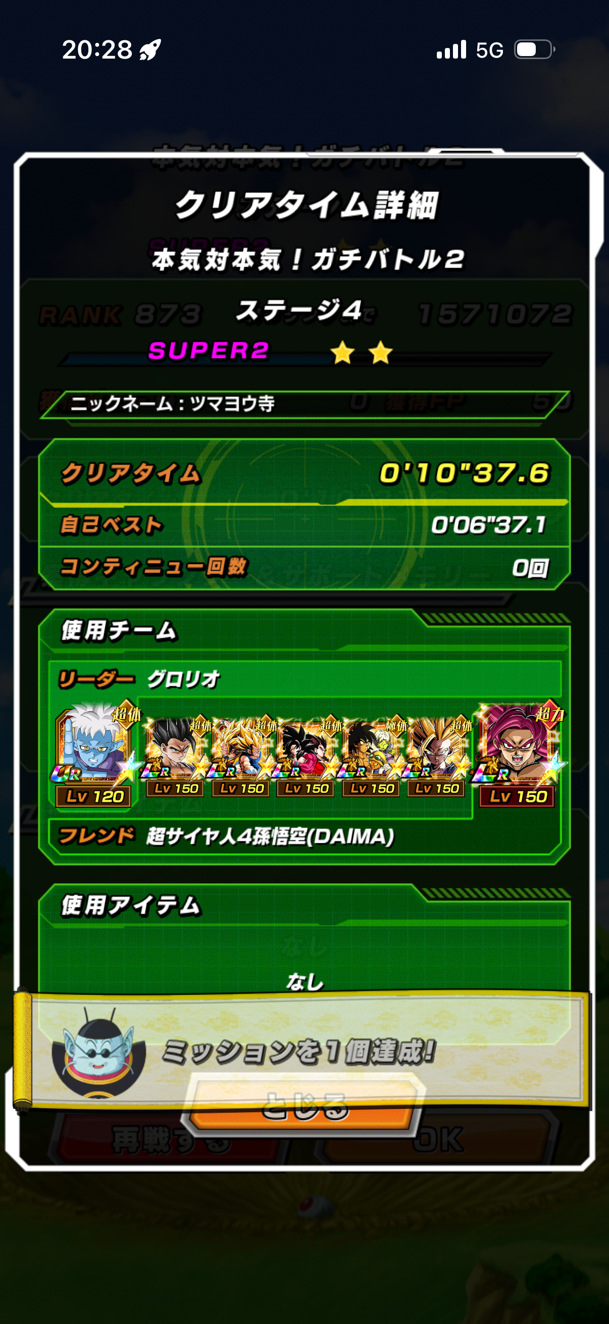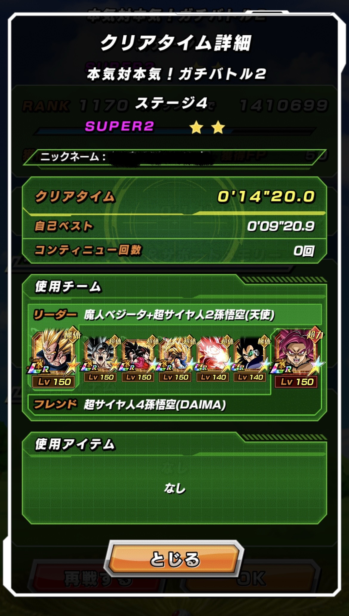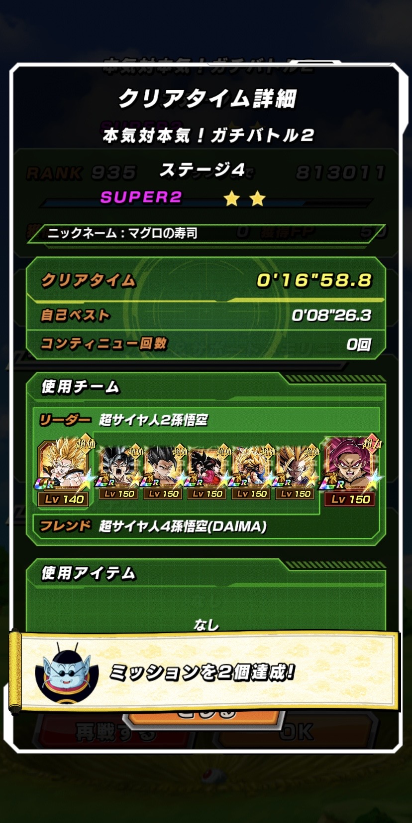 • 体属性6体ミッション リバ2なしでクリア。身勝手とダイマ4で火力出してビーストで必殺無効しまくるだけ。