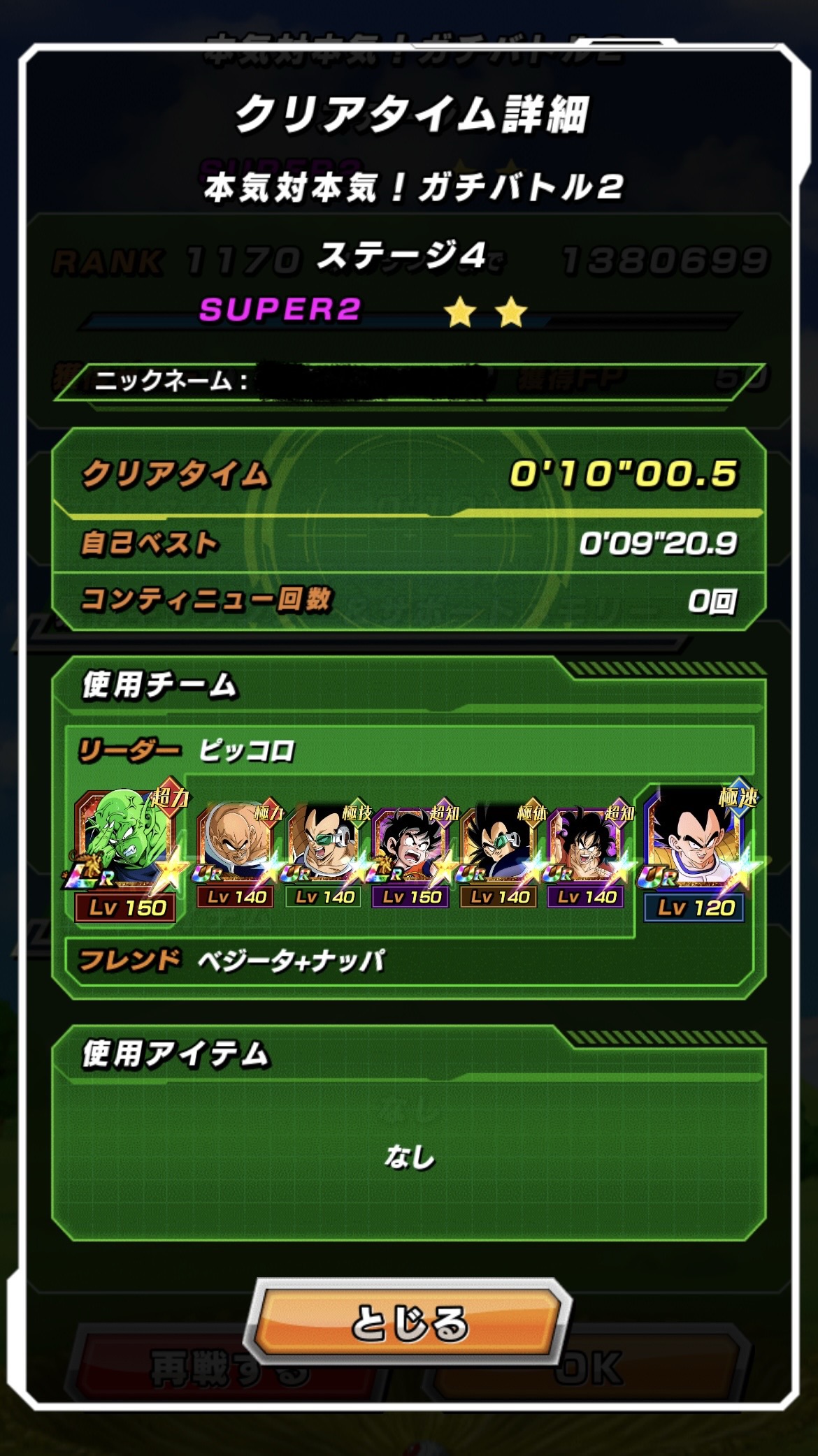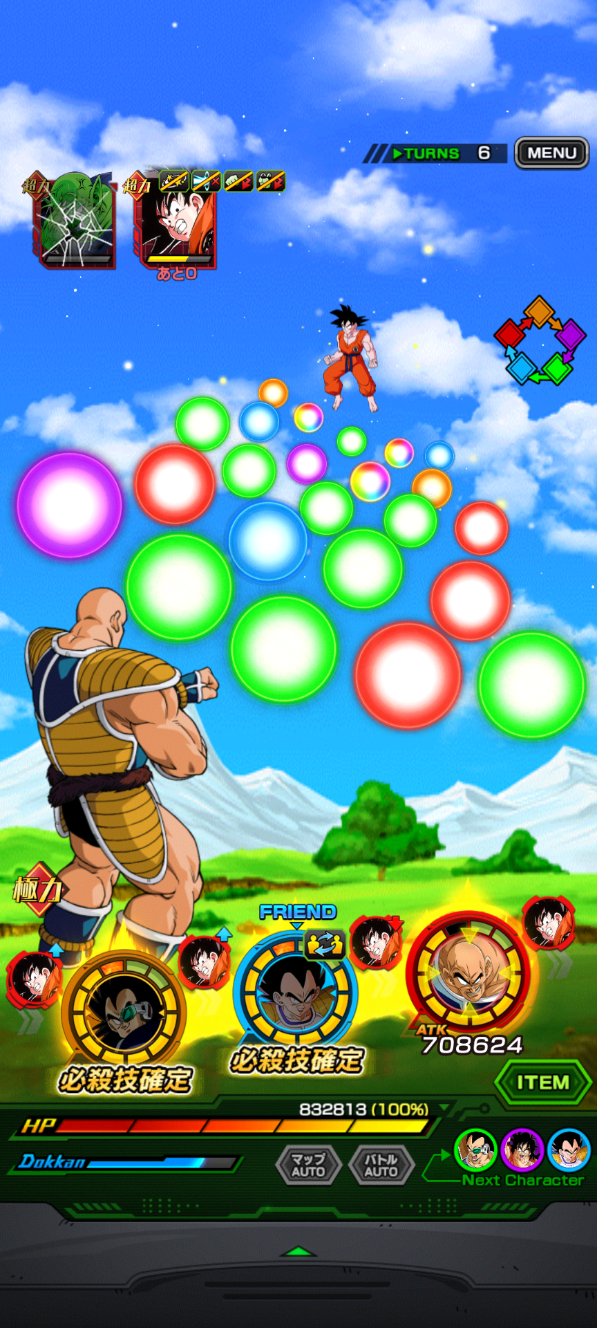 ATK低下と必殺封じは本当にめんどくさいですが、その妨害を乗り越えて4ターン以内にピッコロを落とせれば『ATK730万を受けられる1番手』『ATK260万を受けられる2,3番手』の並びを作れるなら負け筋はなくなるし、それを理想形としてやって行くのが王道の戦い方にはなるでしょうか。