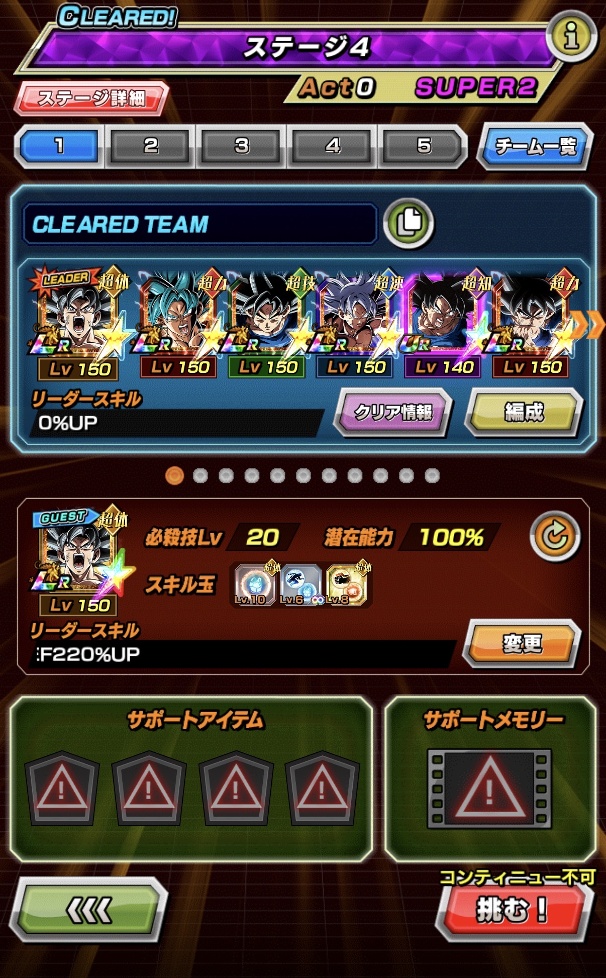 ③SUPER2速、技、知、力、体属性のキャラクターを編成してクリア (龍石×1,中リンク玉×2)