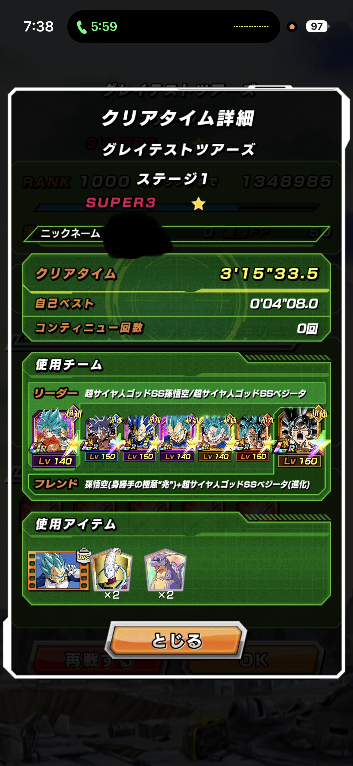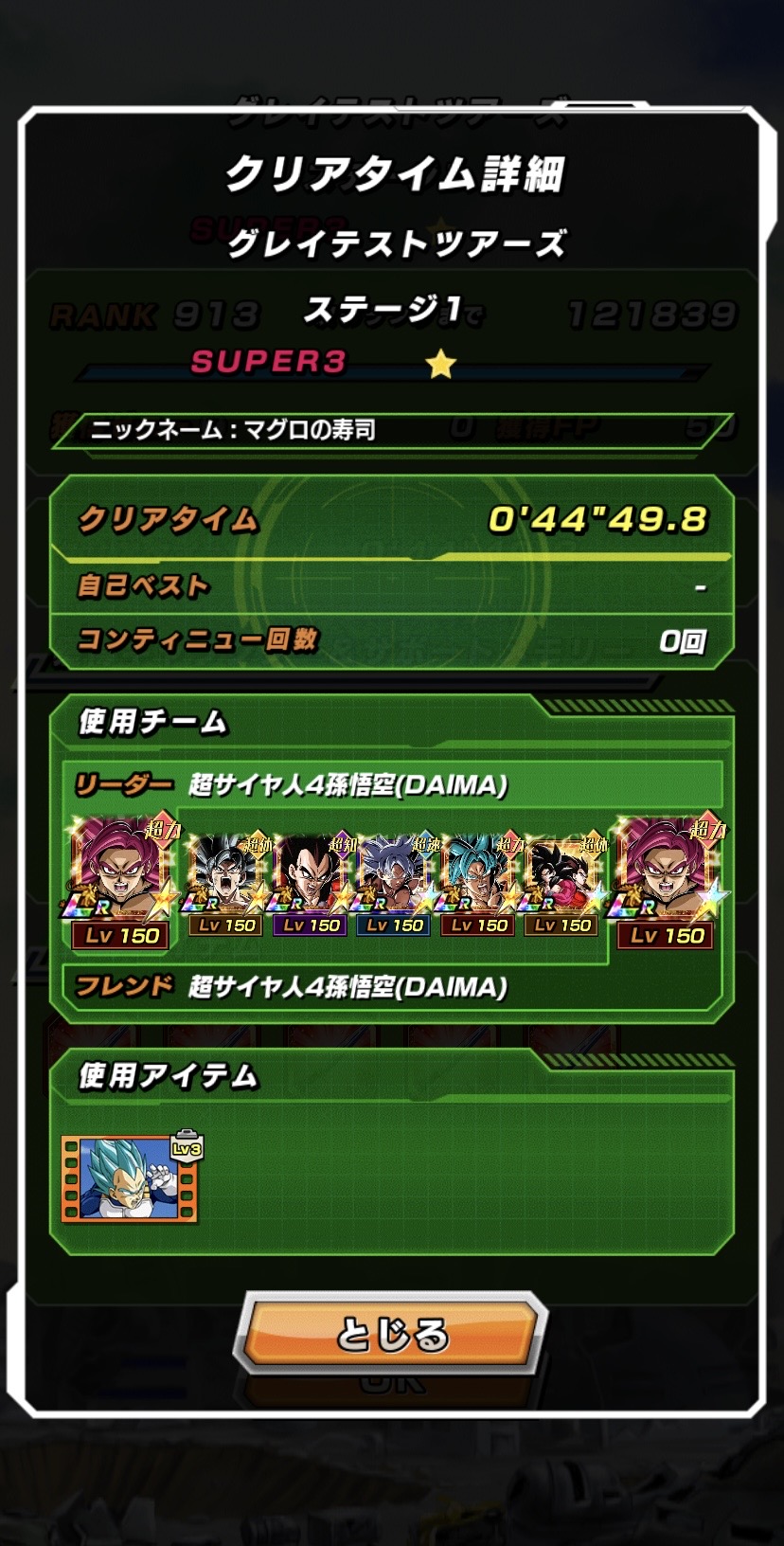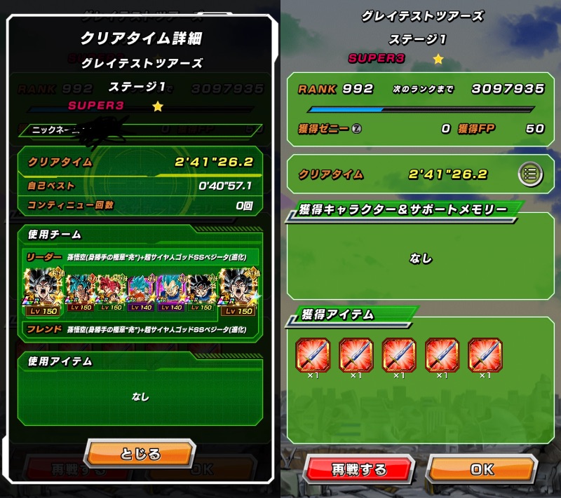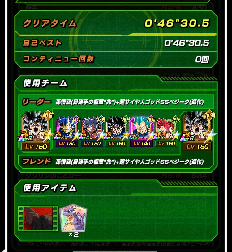 まあ流石にアイテムありなら楽勝よね、怖いから一星龍だけウイス使ったわ