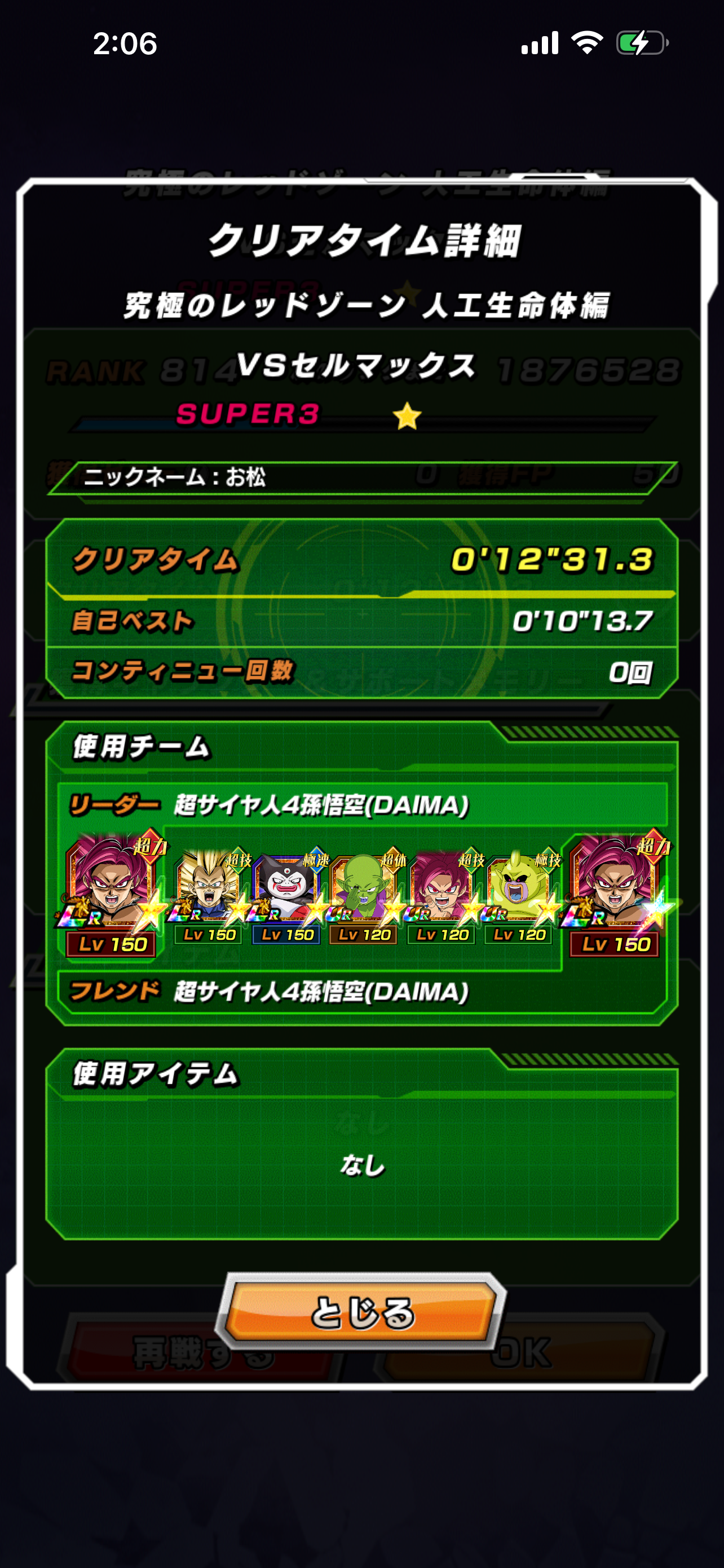• by 49.109.160.140さんの編成でビーストではなく、速身勝手verでクリア出来たけど、間違ってウィスを2ターン目に重ねかけしてしまったから4ターン目の身勝手がいる時にとりあえず誰かに亡くなってもらい復活して、5ターン目&6ターン目はリバチェンゴジータと、ブルーゴクベジのアクティブ多用して勝てました。