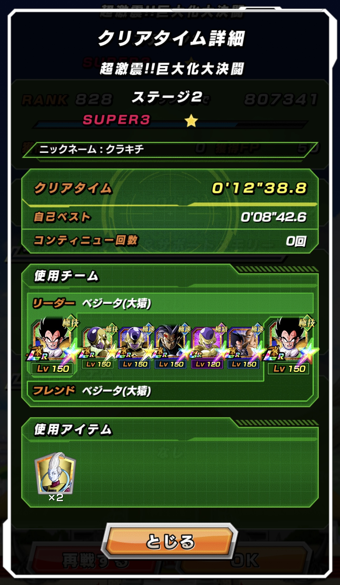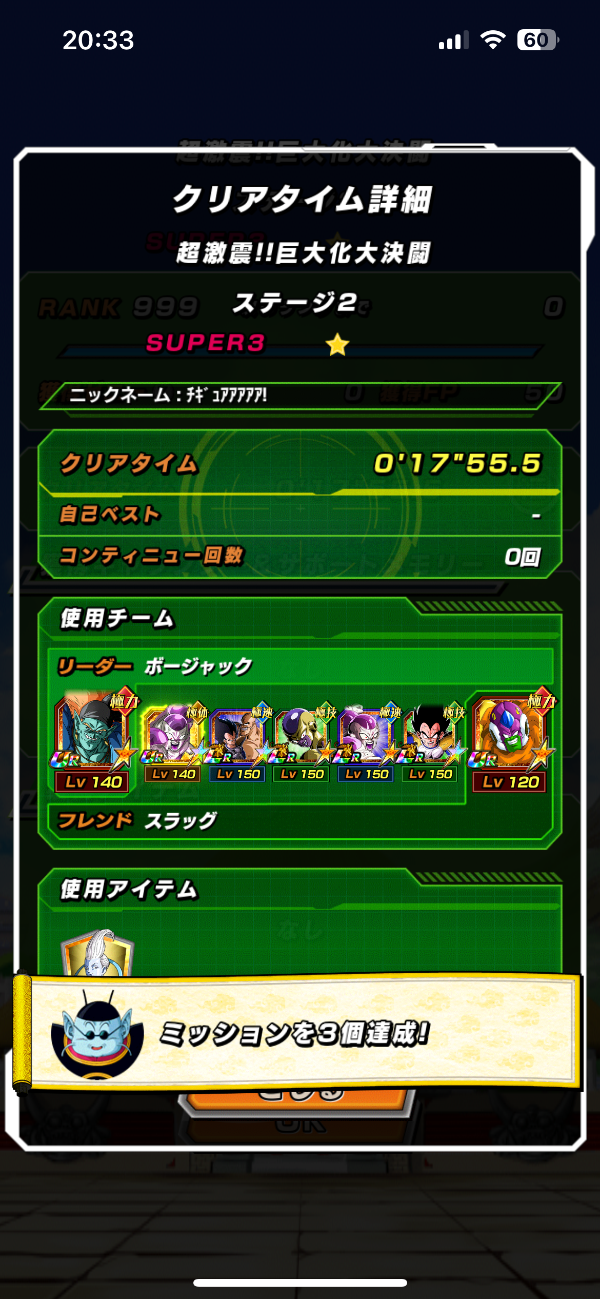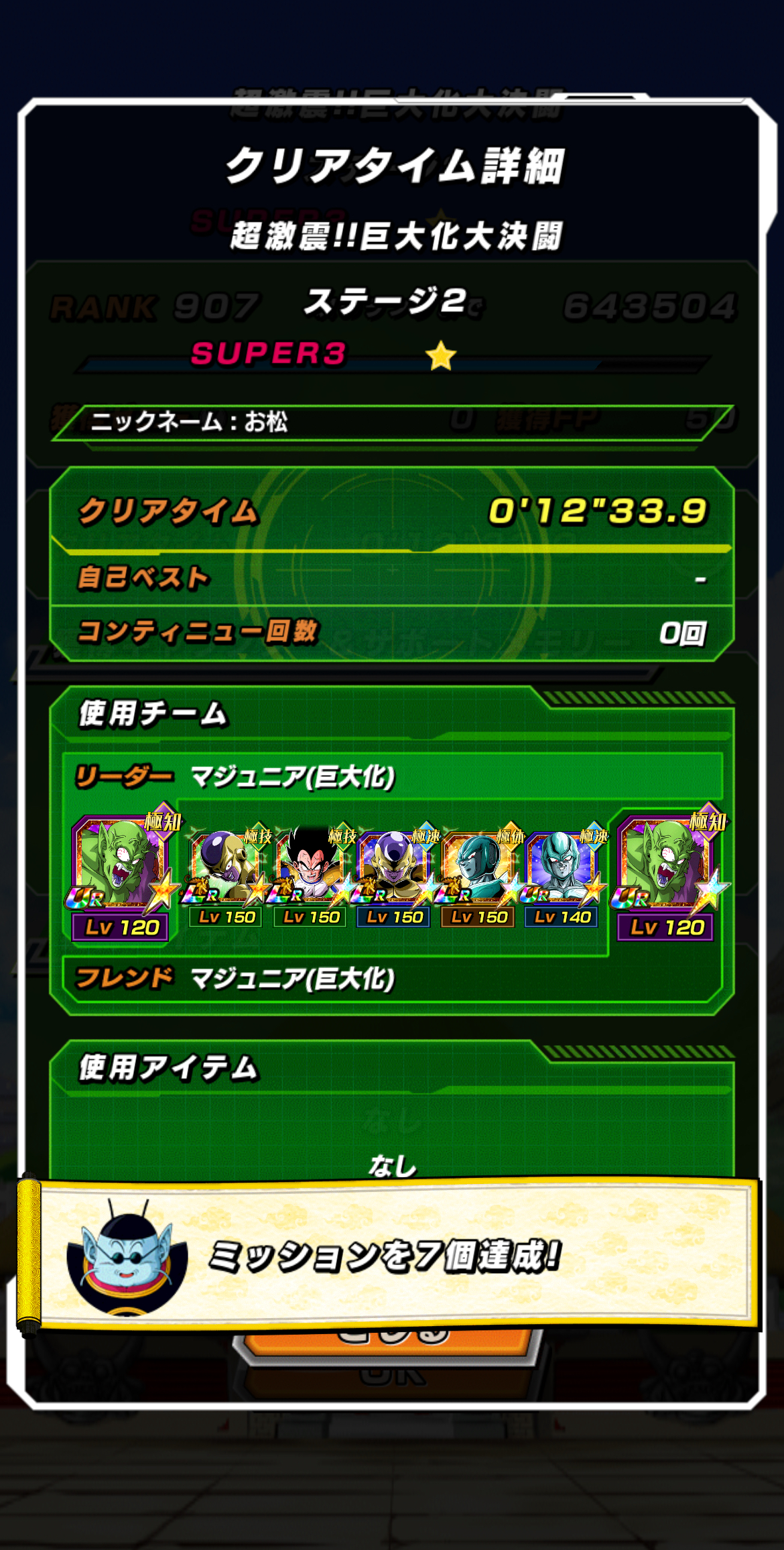征服ミッション、わざと爆弾取ってHP40%以下の大猿ベジータ様でターン稼ぐのがいいな