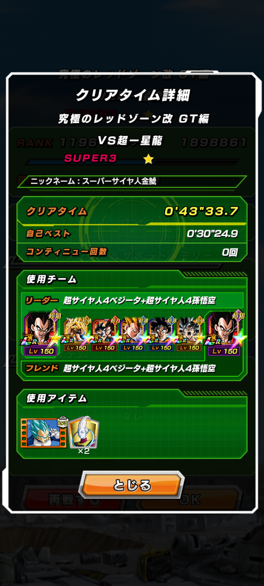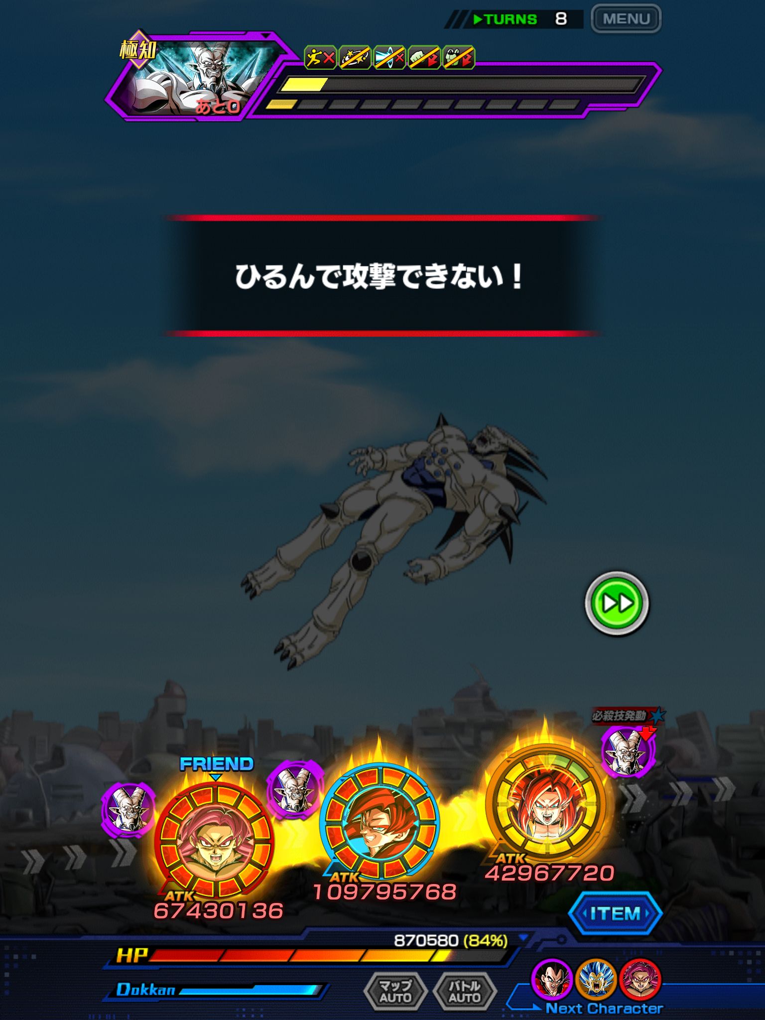 気玉の並びが事故りまくって全然火力出なかったので17ターンもかかったけど…