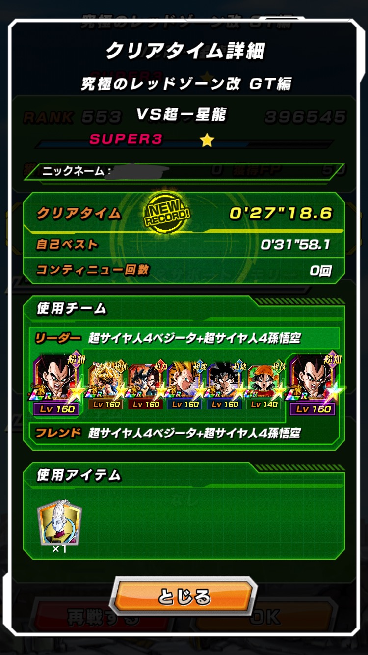願いの力。改悟空はレッゾもバトスペも5属性ノーアイテム同時達成の速枠で大活躍だった。願いの力枠でも大活躍したわ。クソ極限だと思ってごめんな。