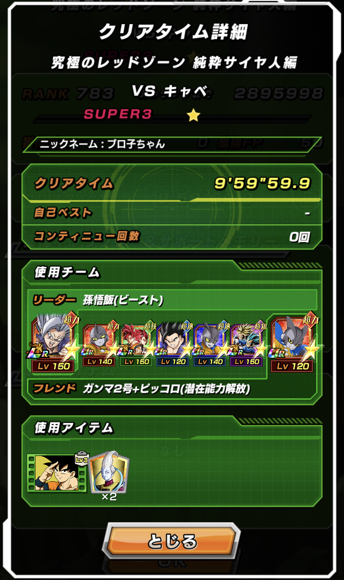 まあ、ベジータで積んだり、アイテム使えば楽勝だから圧倒的に強いは強いけど。