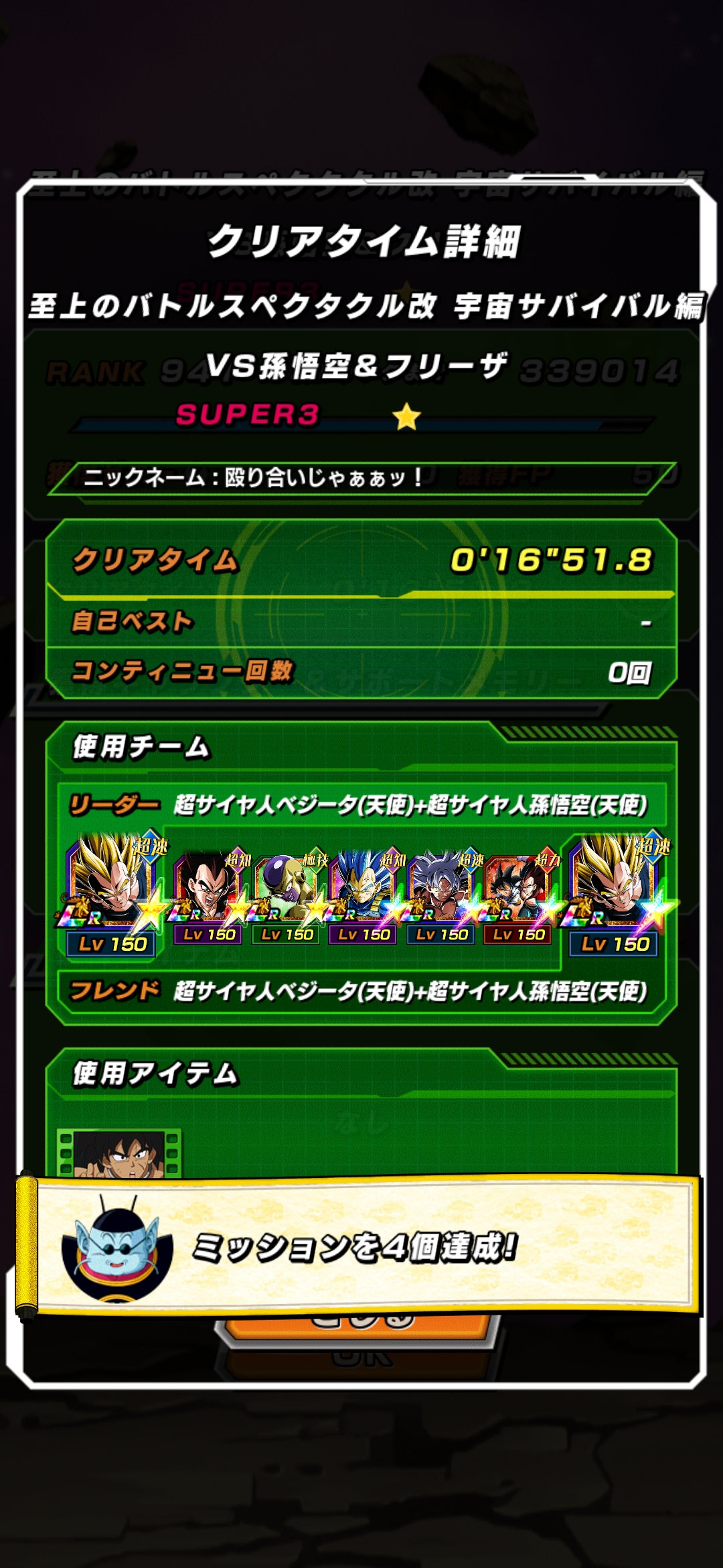 再起ミッションクリア。やけに未来悟飯くらうな〜と思ったらリダスキ対応してないことにクリア後に気づいたw