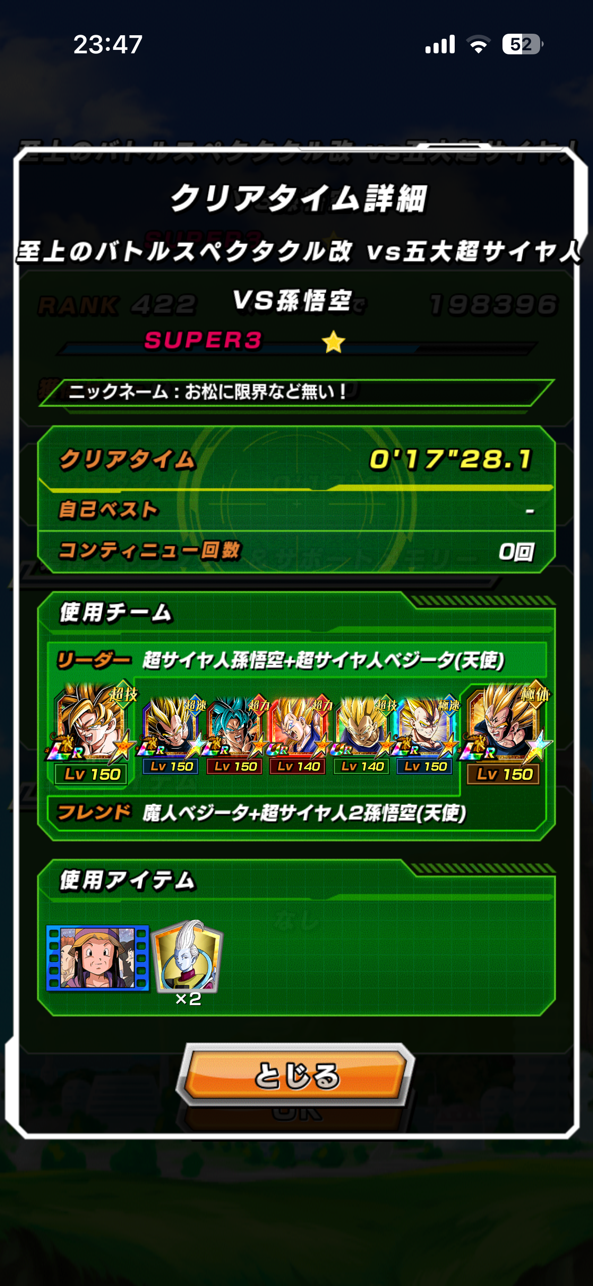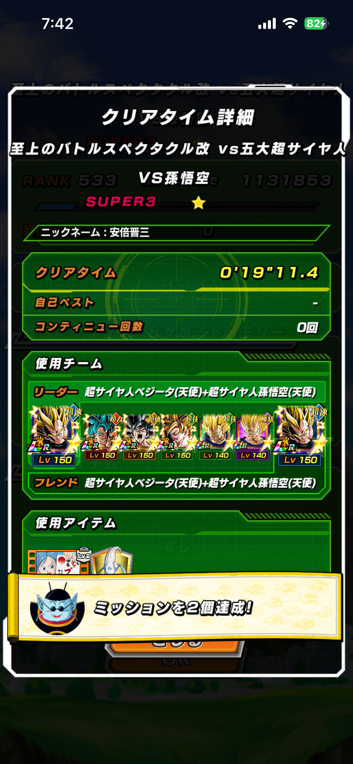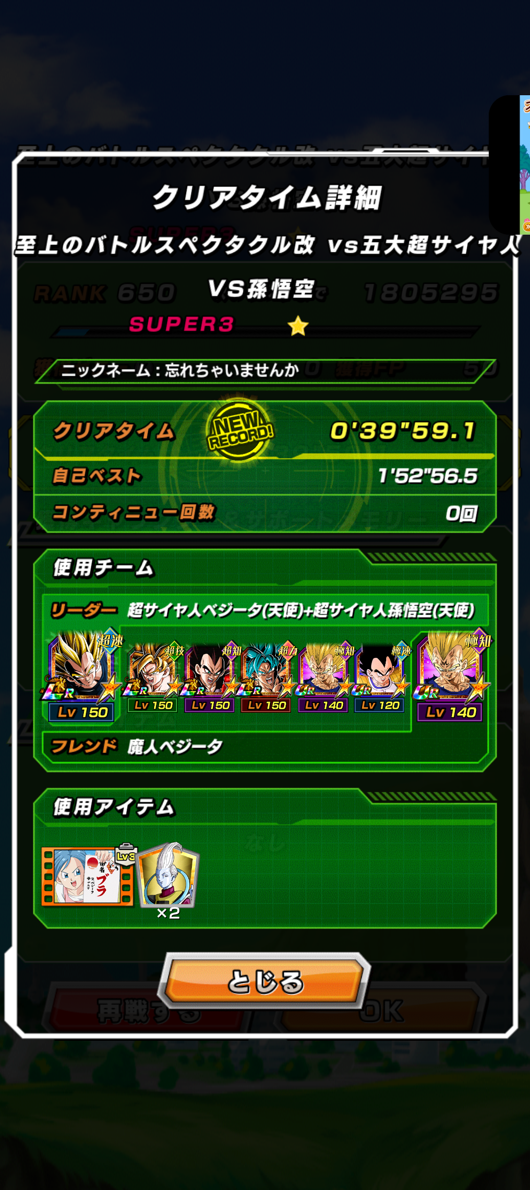 自前11周年、新規極限なしでクリアしました。ウイス乗ったまま3戦目リバチェン魔ベジ、ベジット、ゴジータの条件じゃないと負けます。魔ベジアクティブ残ってないと多分火力足りないと思います。