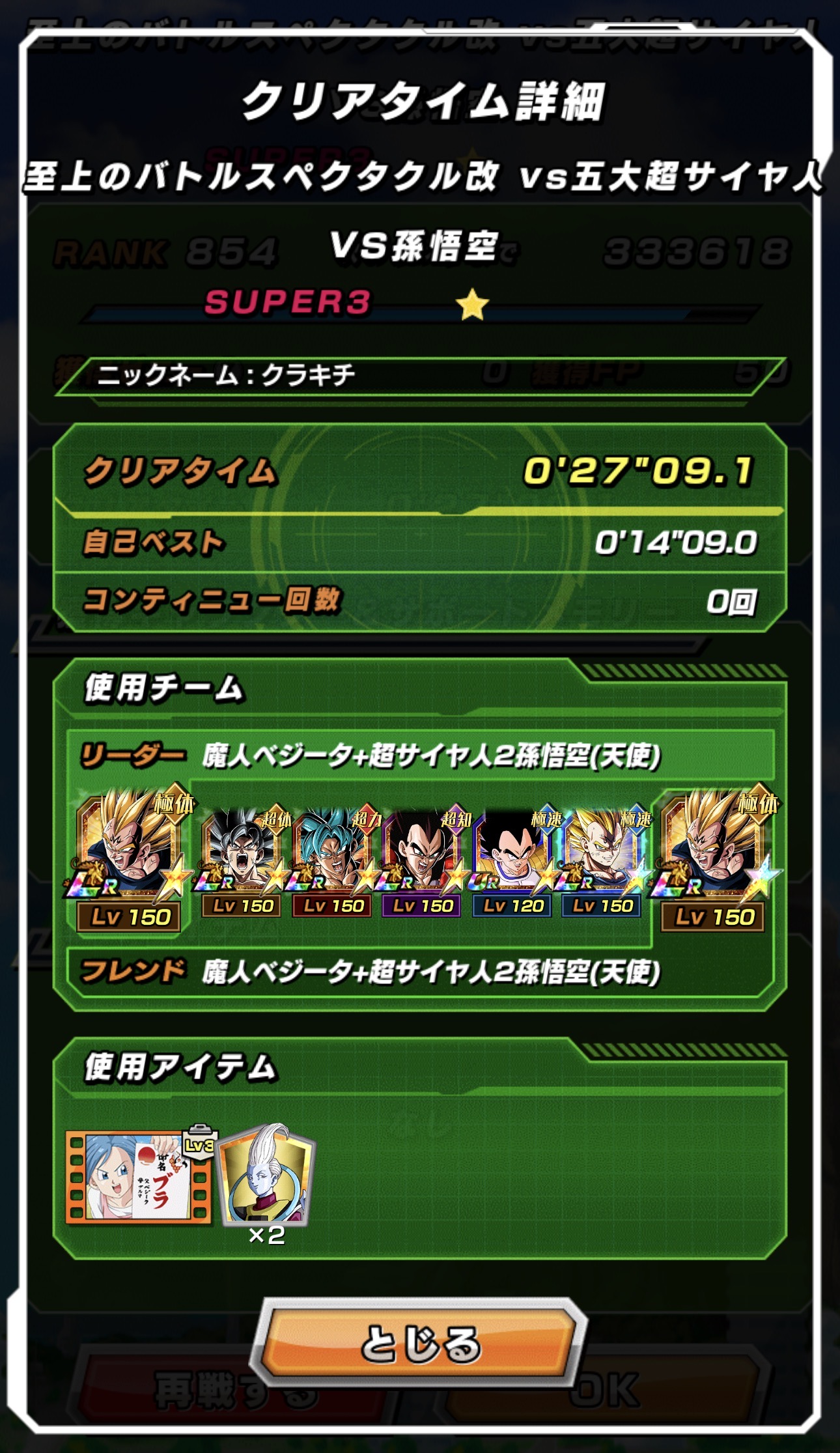 ベジット様様ですわ、蹴りマジで強い。11周年のベジータ側が両方いなくてどうしようと思ったけど助けられた。