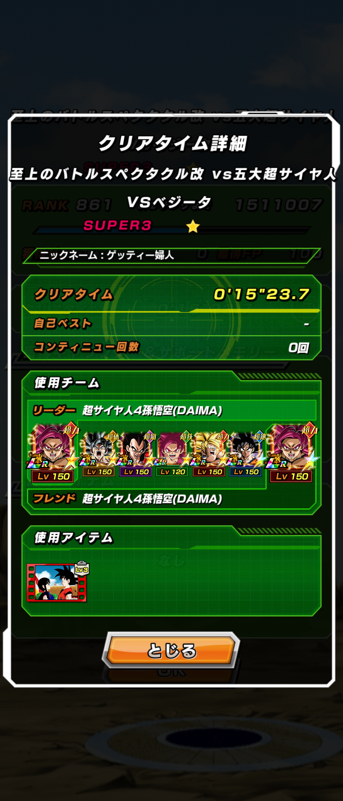 一応1ターン2回必殺はありますが、このレベルだと今は十分余裕を持って受けられるキャラも多いし、ミッション指定の『孫悟空の系譜』もゲーム屈指の大規模カテゴリだとそう脅威ではないでしょう。