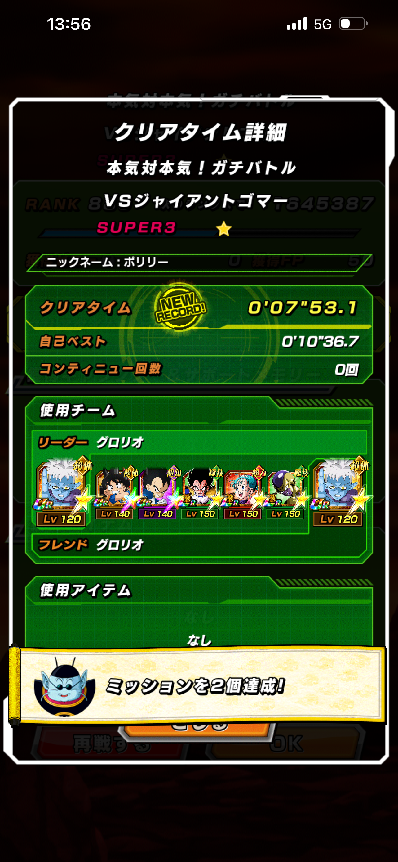②「ドラゴンボールを求めし者」カテゴリに属するキャラクターを6体編成して1回クリア (龍石×3)