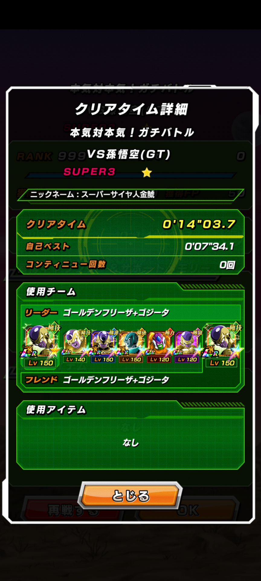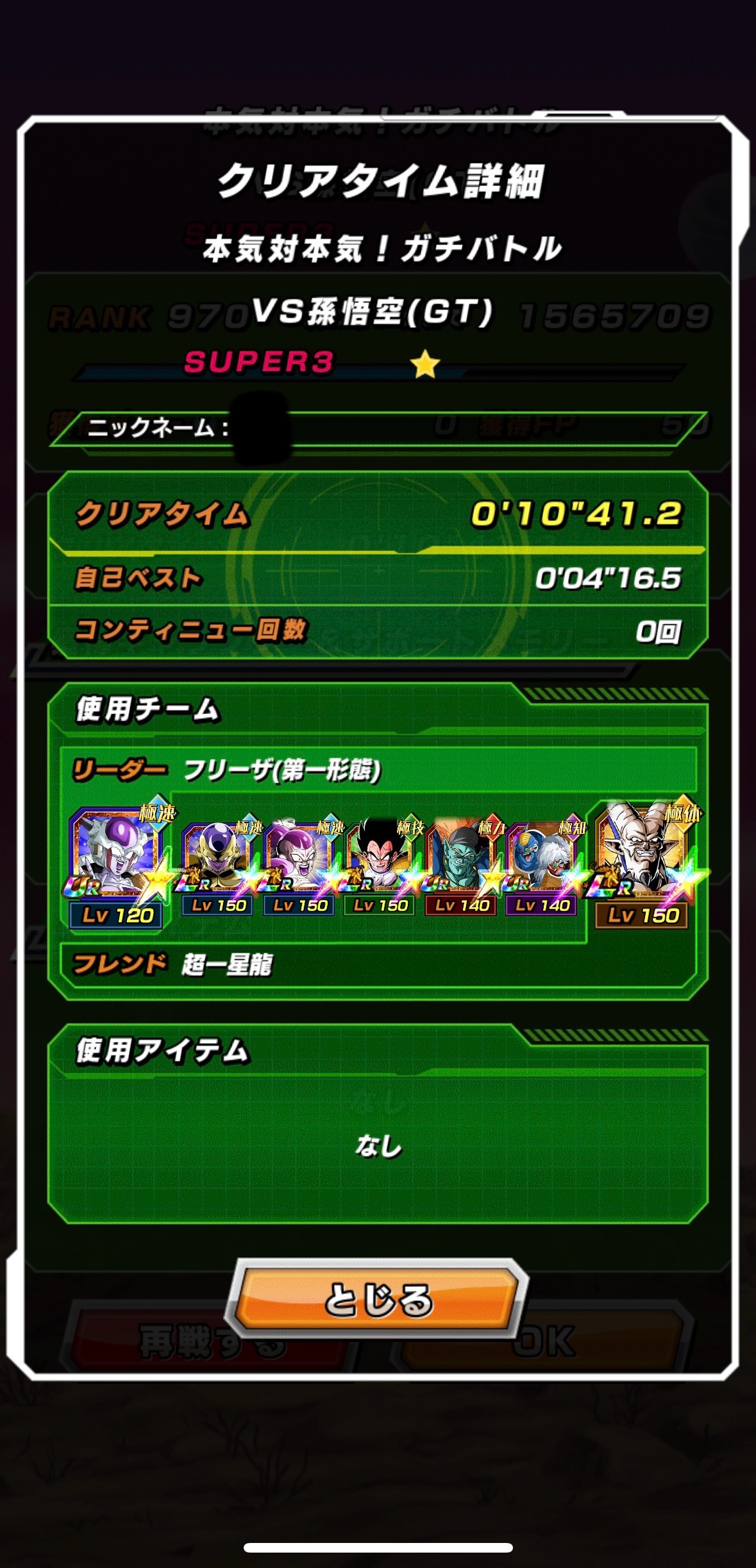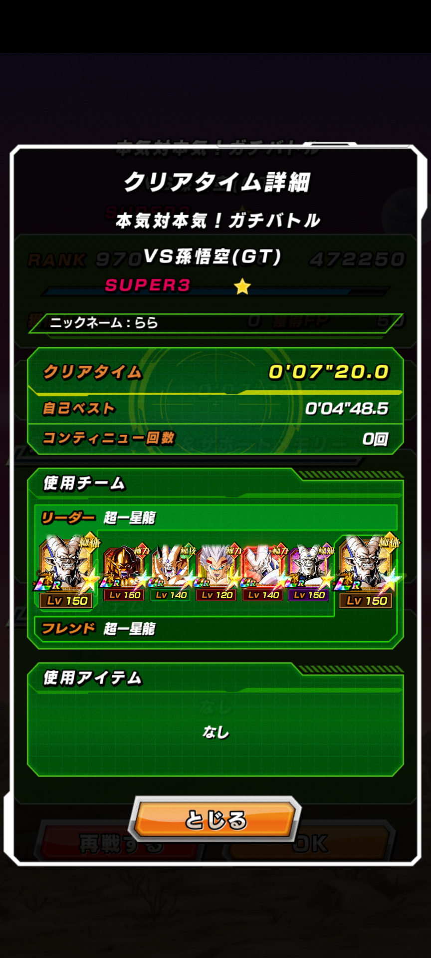 3悟空で4ターン使って5ターン目からベジットで吹っ飛ばすだけだけどメタルクウラはこの手のミッションでほんと強いな