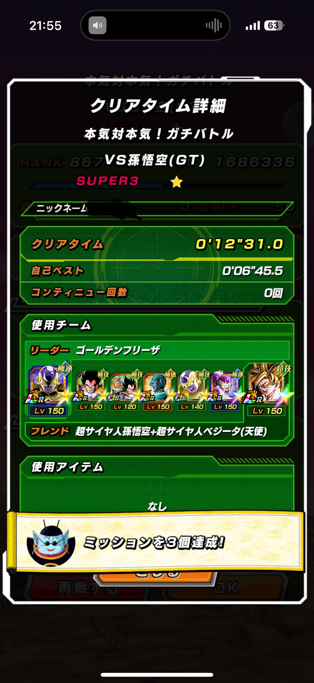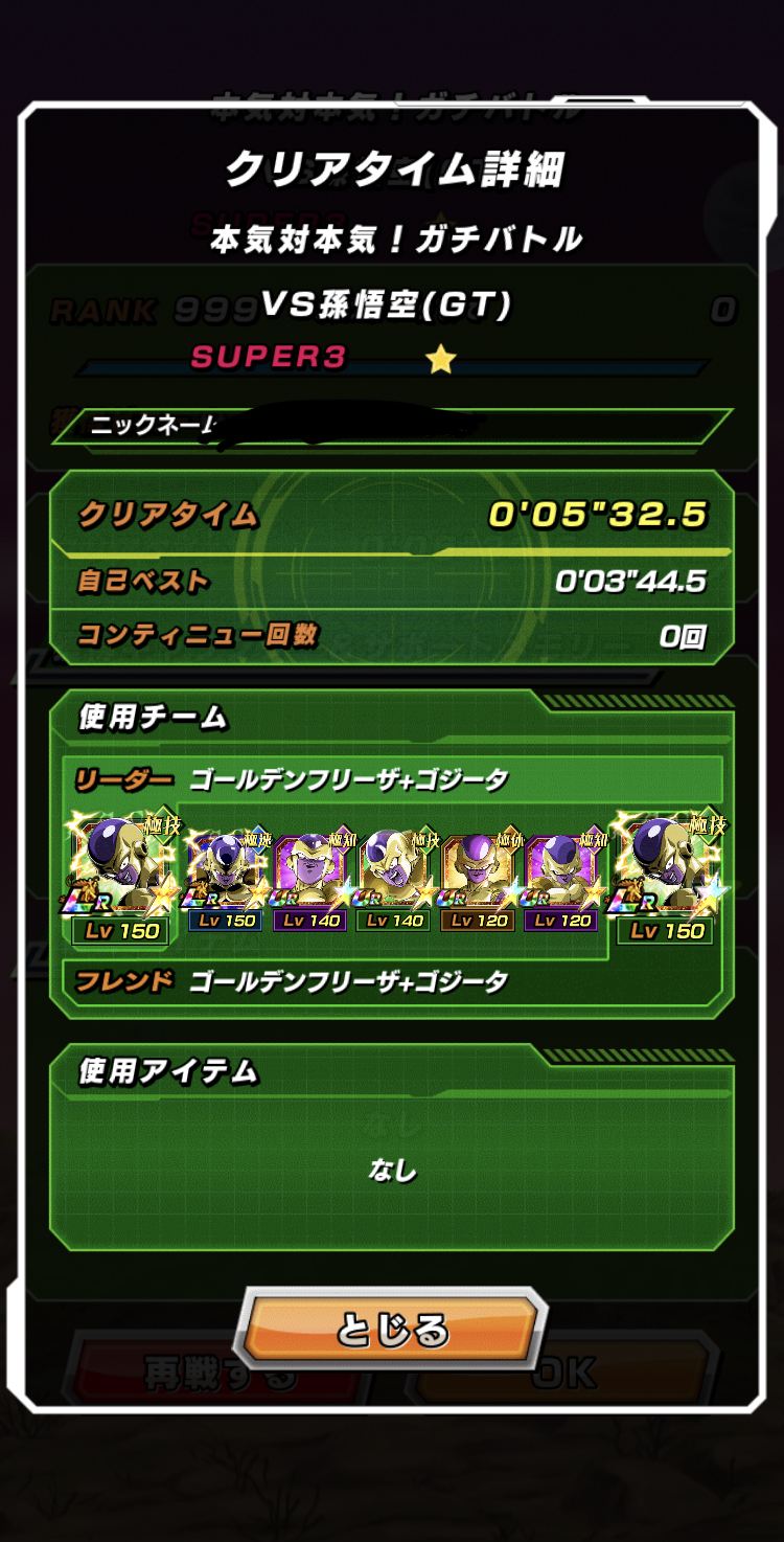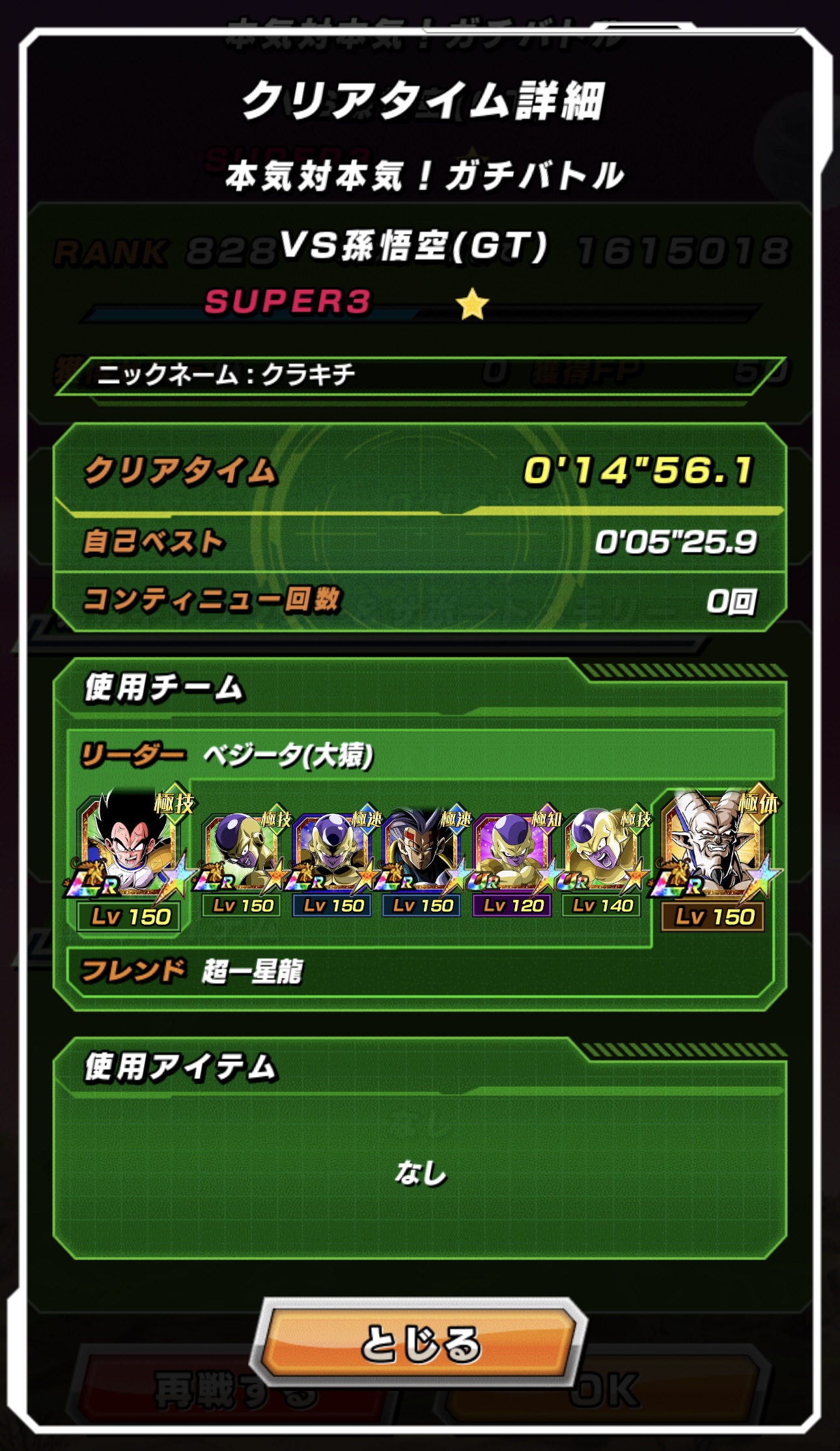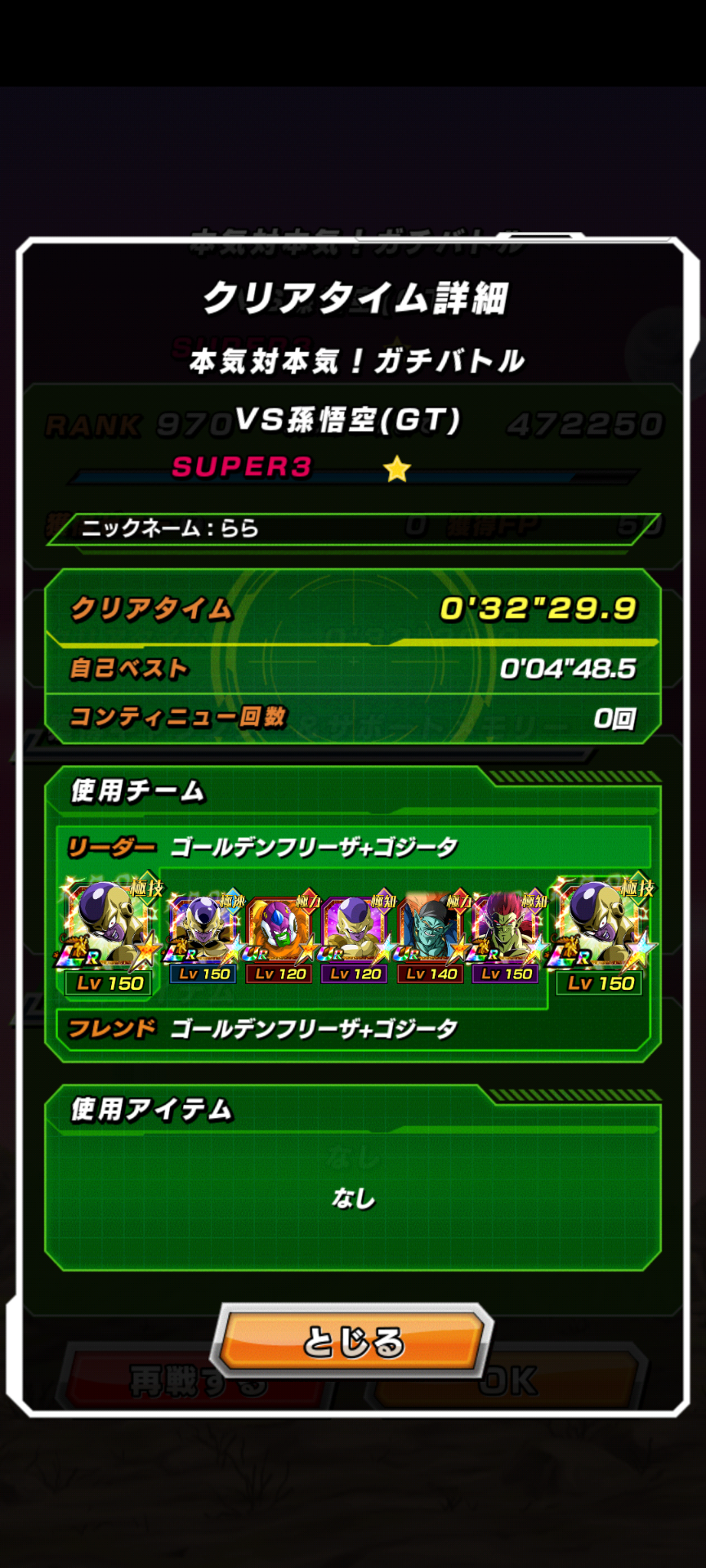 3悟空で4ターン使って5ターン目からベジットで吹っ飛ばすだけだけどメタルクウラはこの手のミッションでほんと強いな