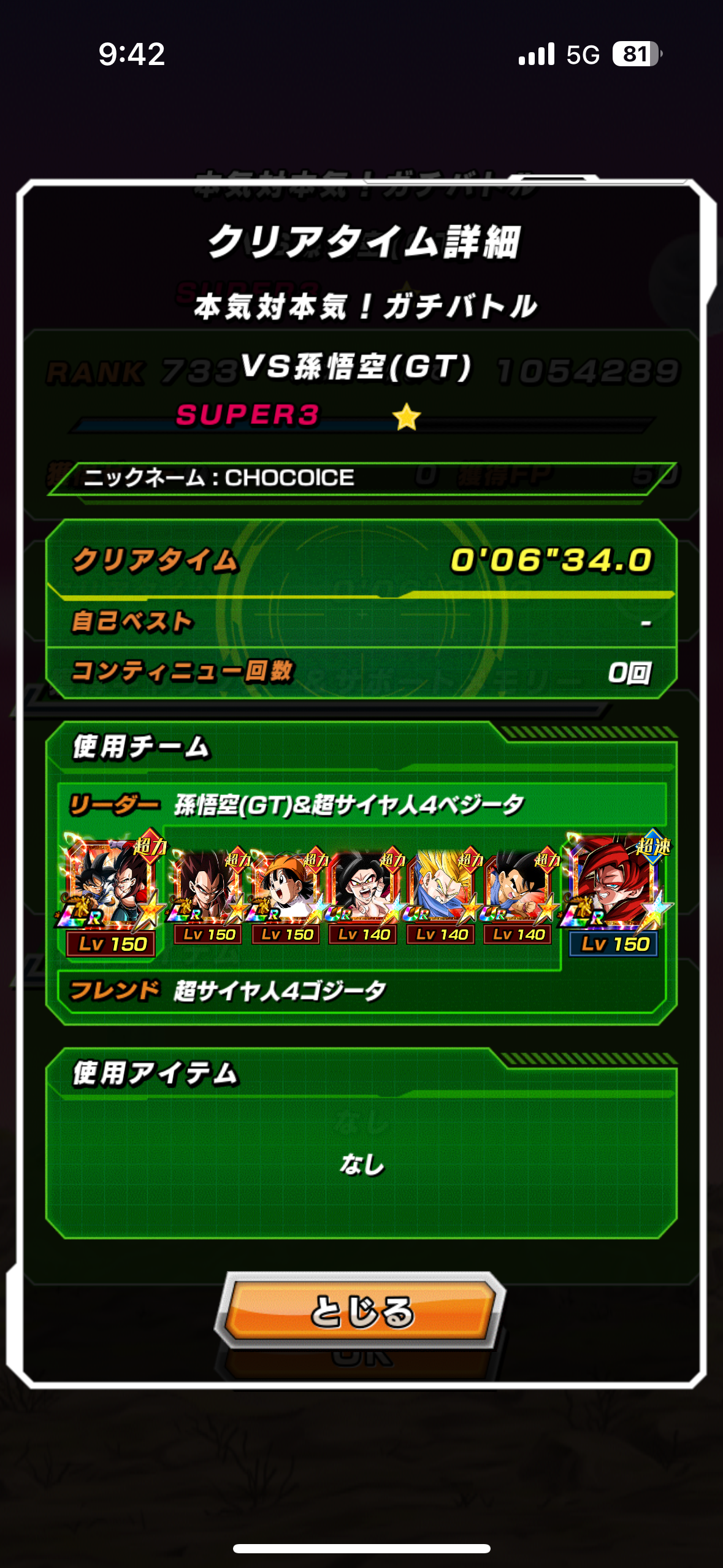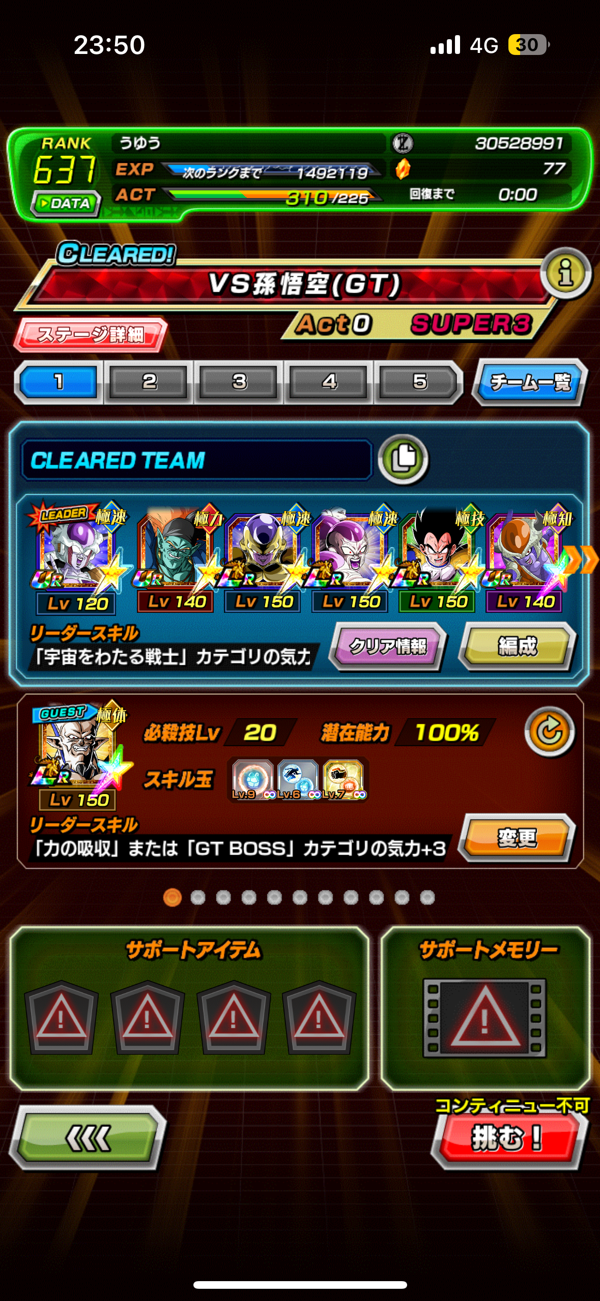 『本気対本気!ガチバトル』の『vs孫悟空(GT)』ステージの攻略ページです。