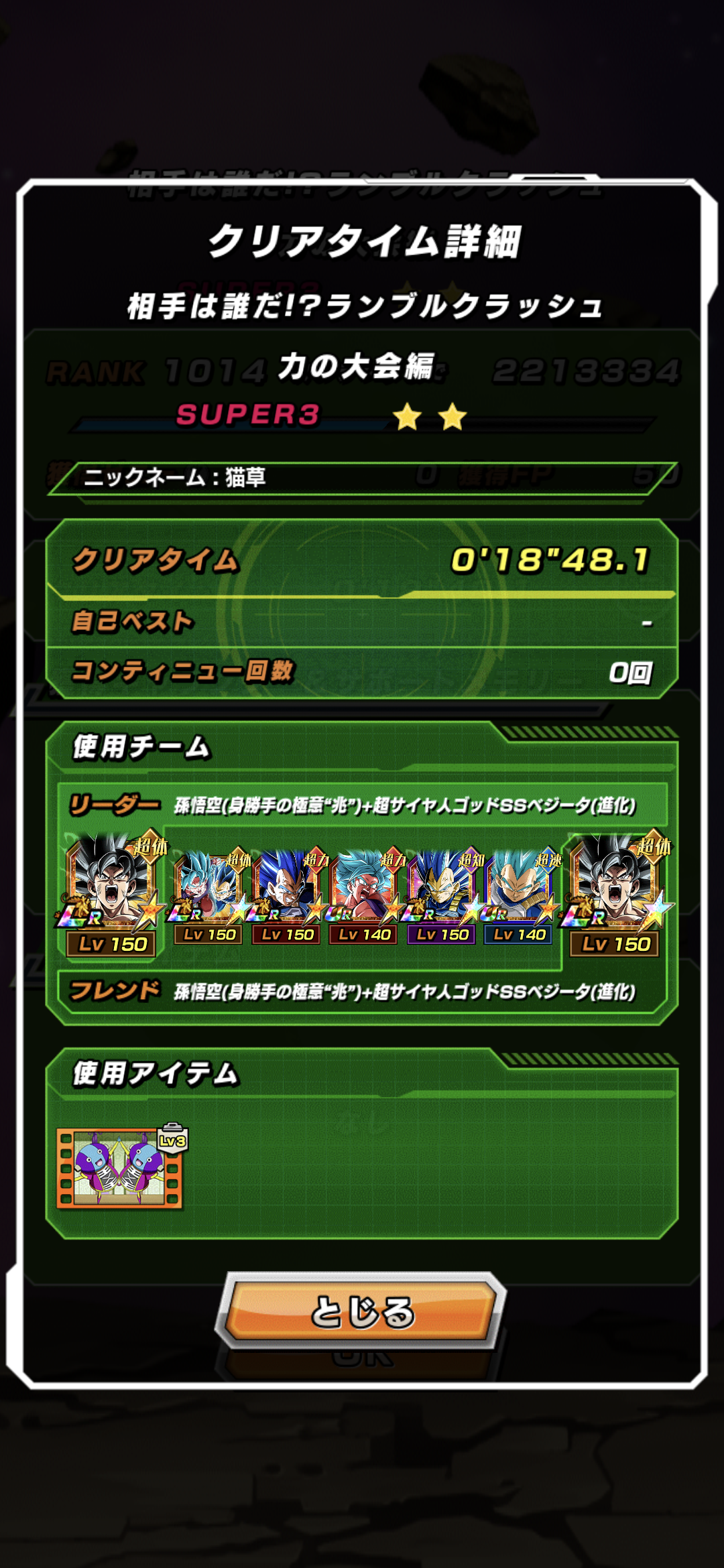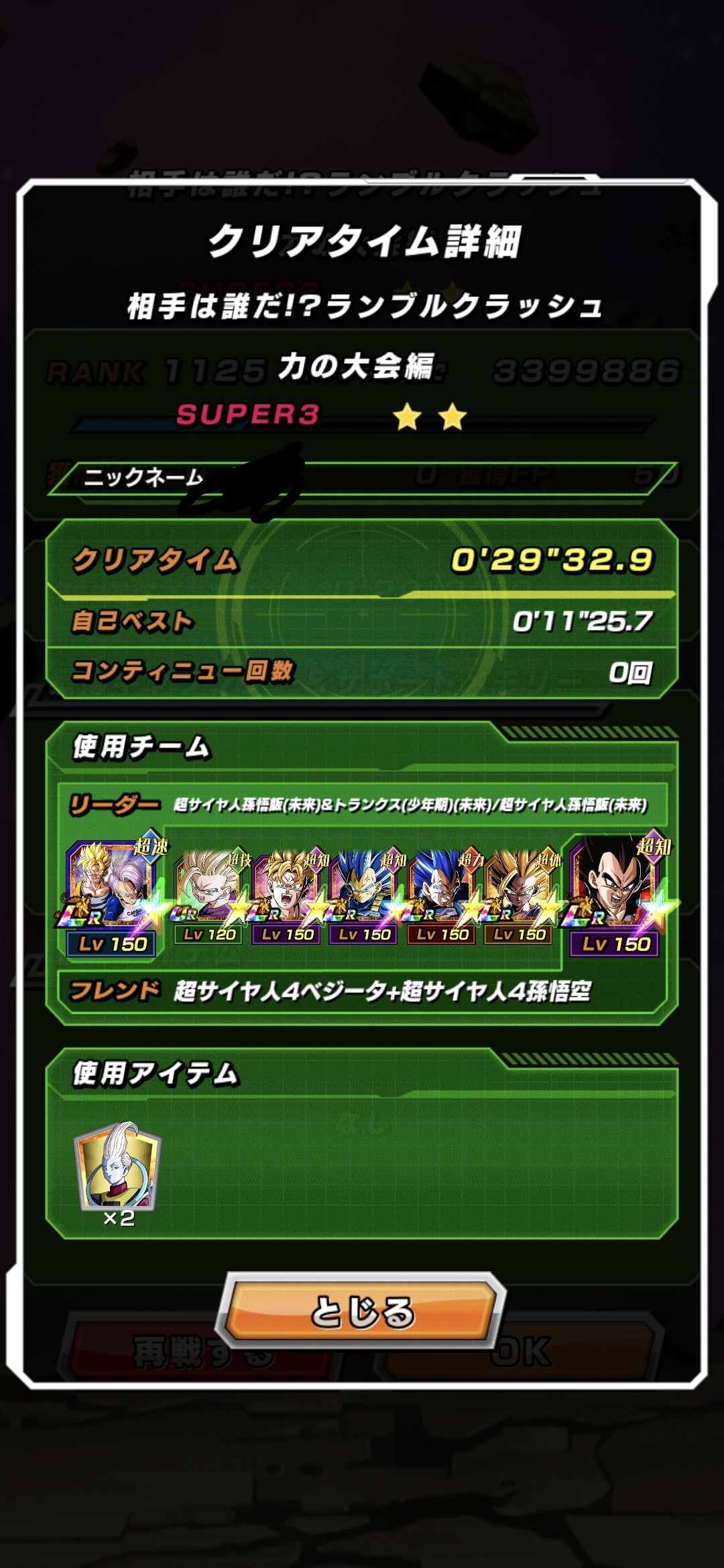 • 11周年いなくても、技身勝手リーダー、6周年×2、ゴッドコンビ、超極限ブルベジ、リバチェンブルーでフレンドに11周年借りて、3戦目に色んなアクティブ打てば神次元とフルパワージレン撃破同時クリアできるぜ