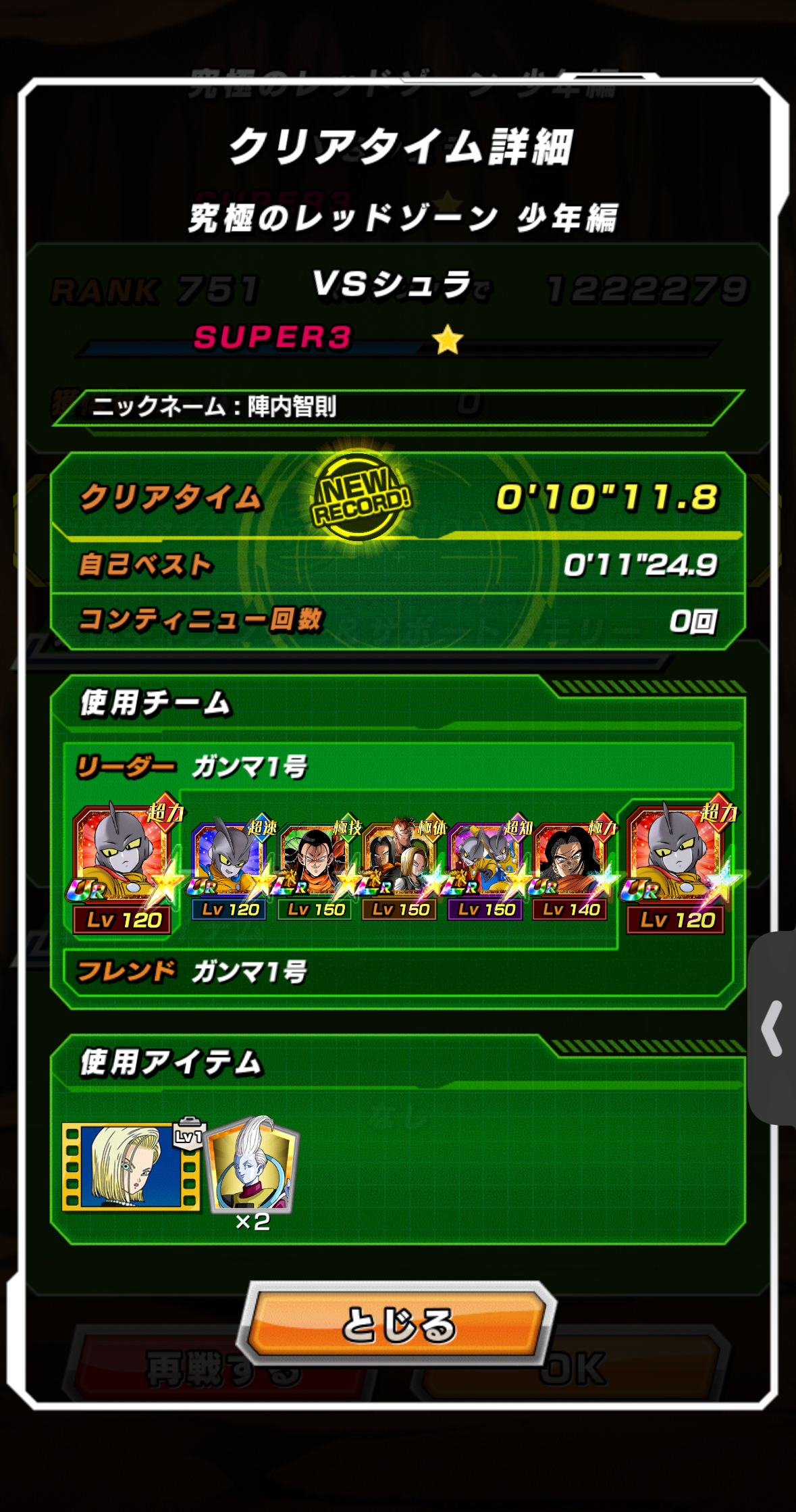 • グロリオもヒットもおらんから体ギニューリーダーにしてクリアしたけどラディッツベジットで行けるんかい