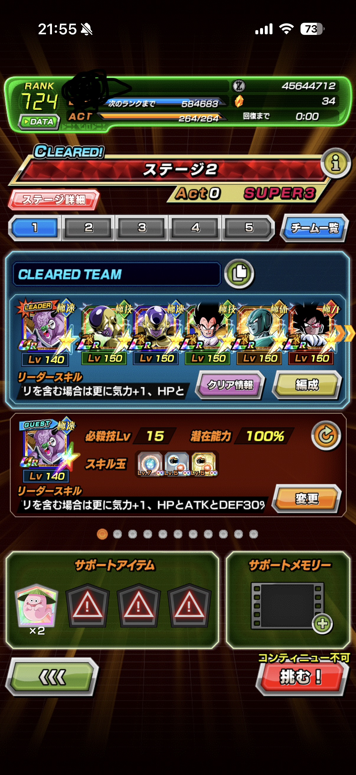 征服ミッション、わざと爆弾取ってHP40%以下の大猿ベジータ様でターン稼ぐのがいいな