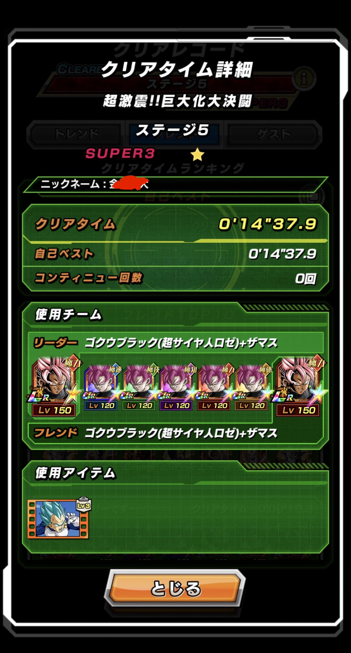 • やっっっっっっっっっっとロゼチームでノーアイテムクリアできた……最初の2戦の運ゲーきついわ。ロゼザマス持ってないから代わりに技合体ザマス入れたけど、4悟空の時にロゼザマスが顔出しできれば勝ち確。ザマスアクティブ→一番手置いてロゼで叩きのめす。