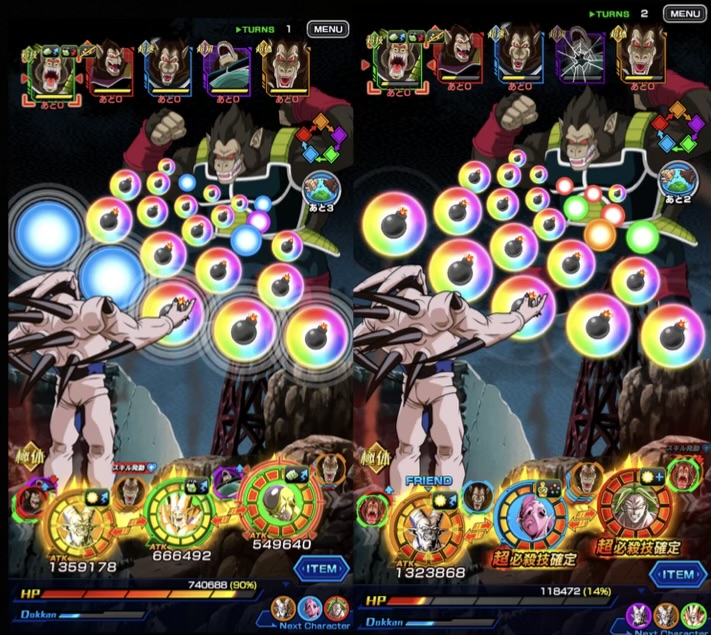 全員が被弾でドンドン火力を上げて来るし、バーダックは初動からでもATK800万超え火力なのでバカにならないし、極系5属性ミッションについてはLR【邪悪な力に覆われた世界】超一星龍の独壇場でしょう。