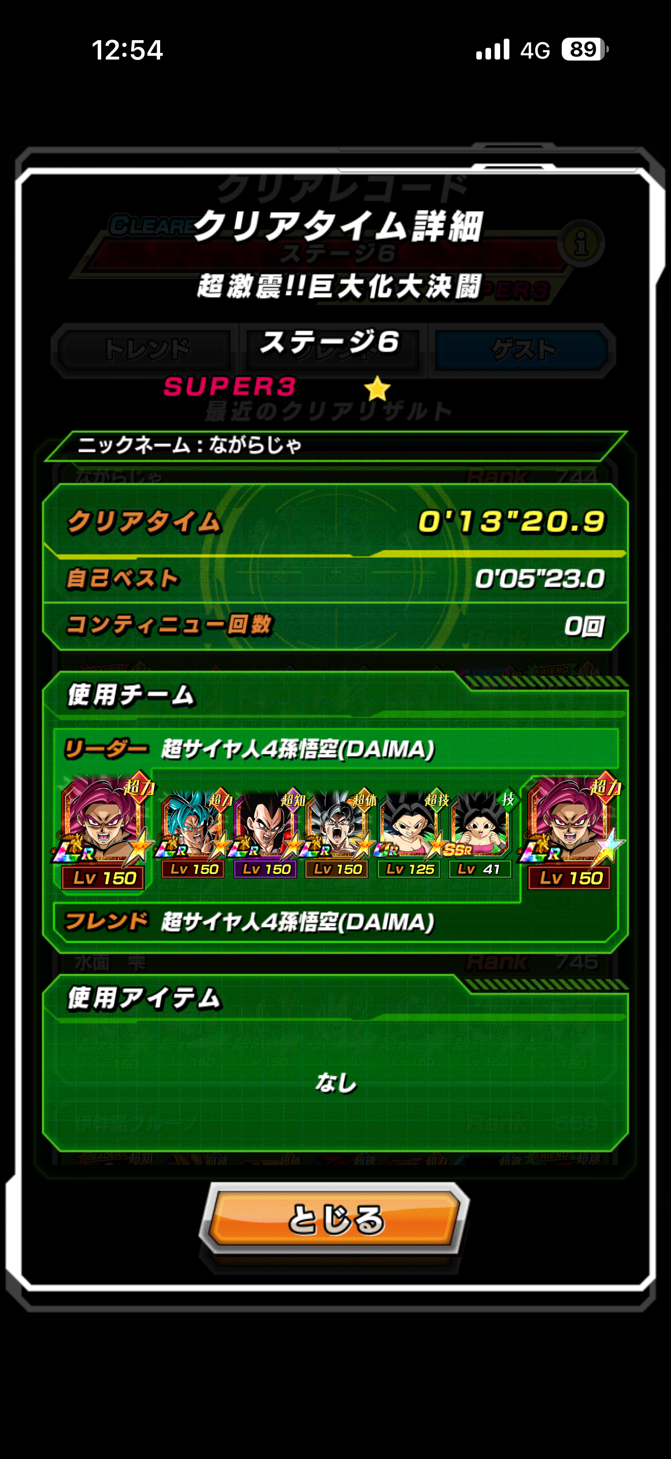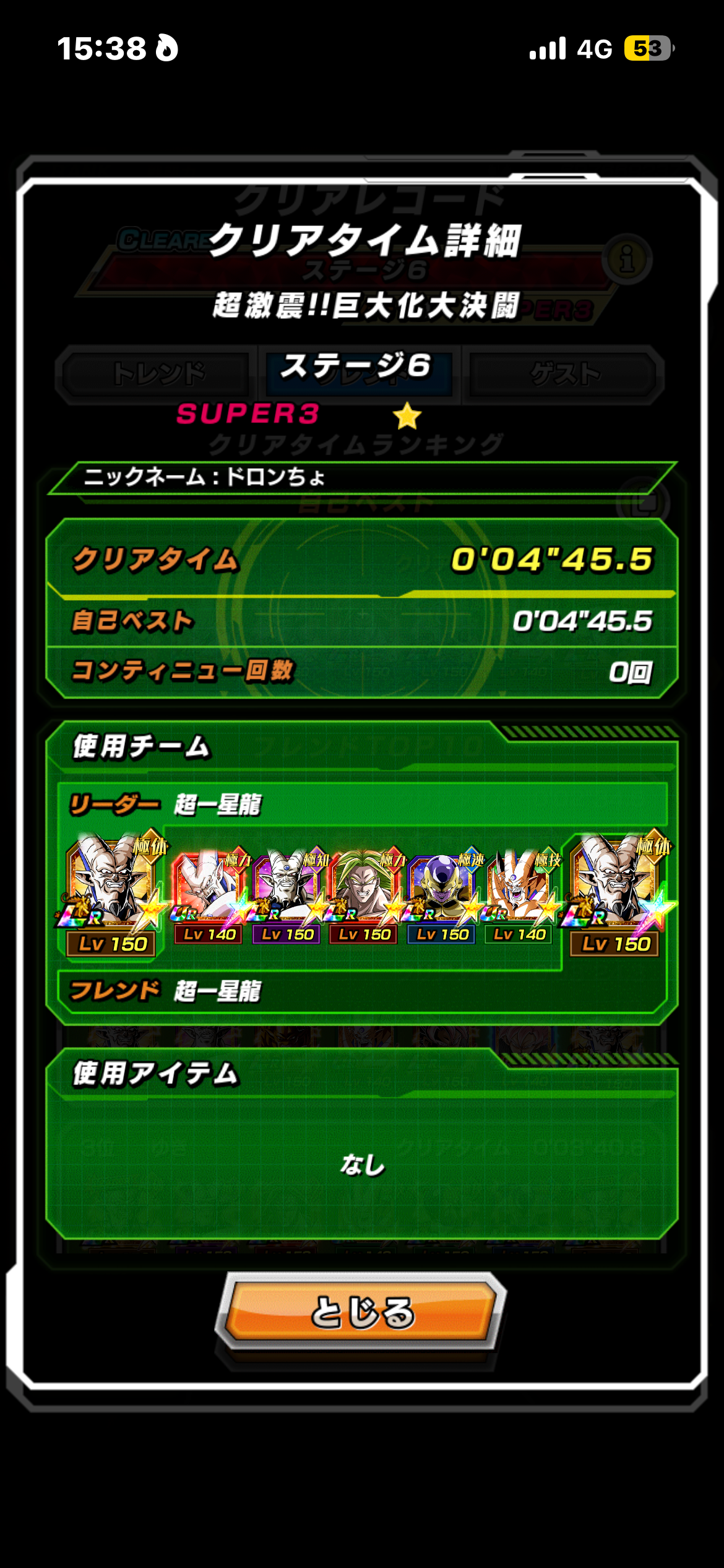 超一星龍の順列と周りの必殺封じがうまくいけば、このようなパーティでもクリアできました。