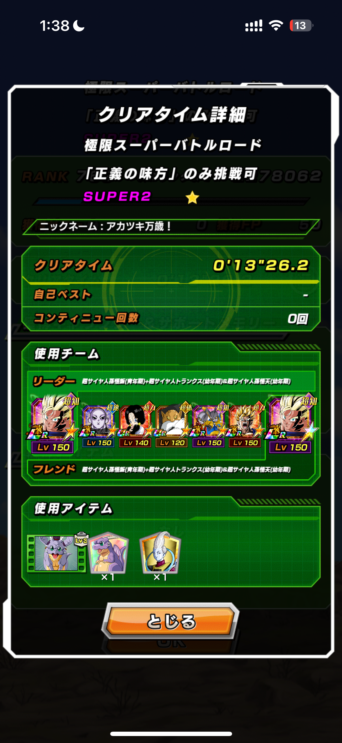 第11宇宙パの火力が低すぎて一戦目でアイテム3つ使っても終わらなかった