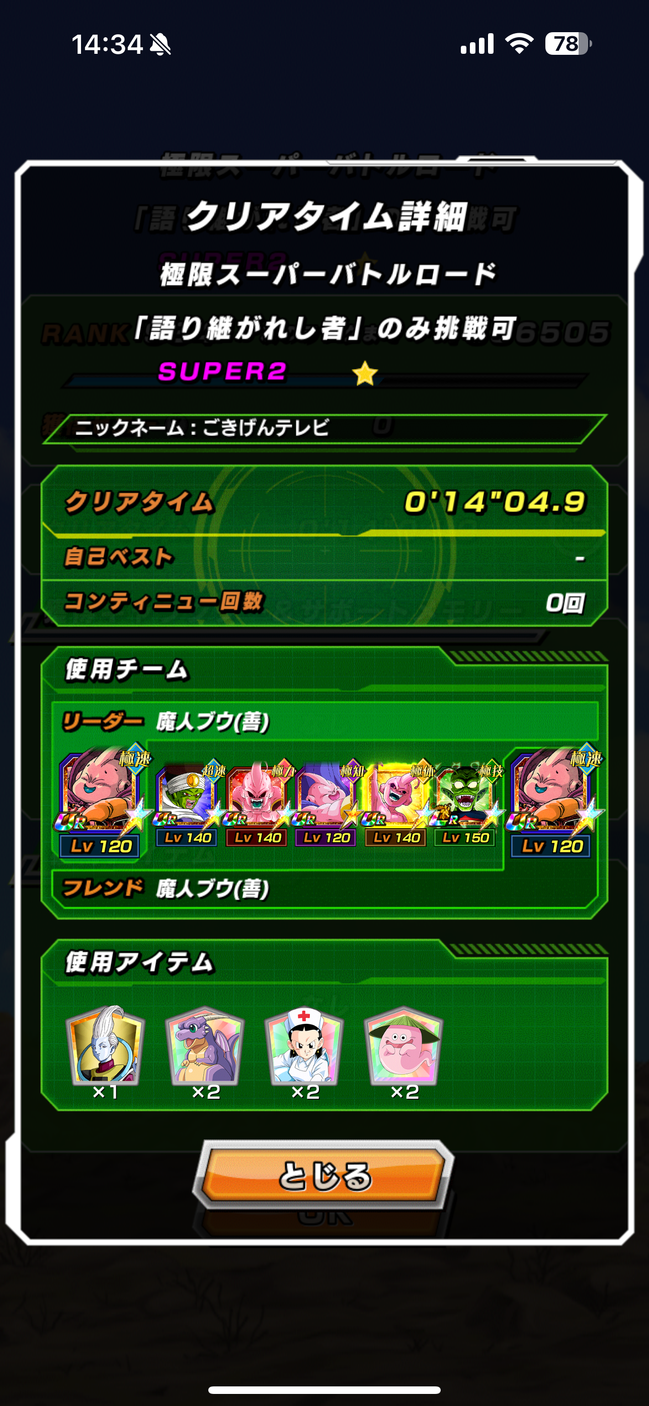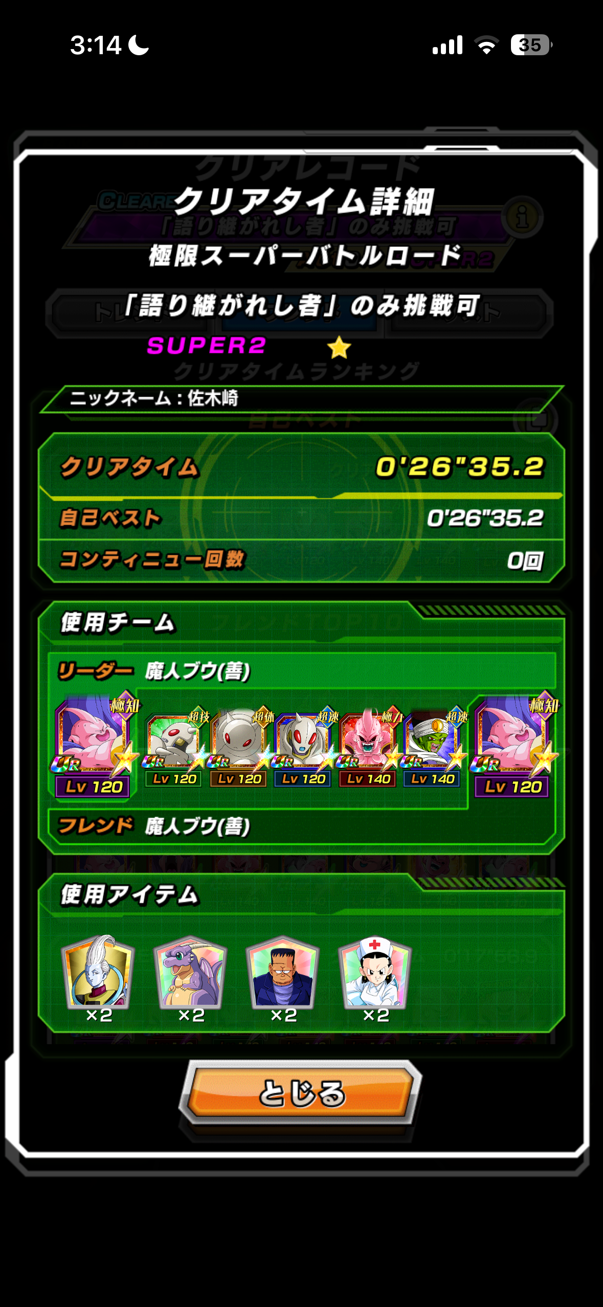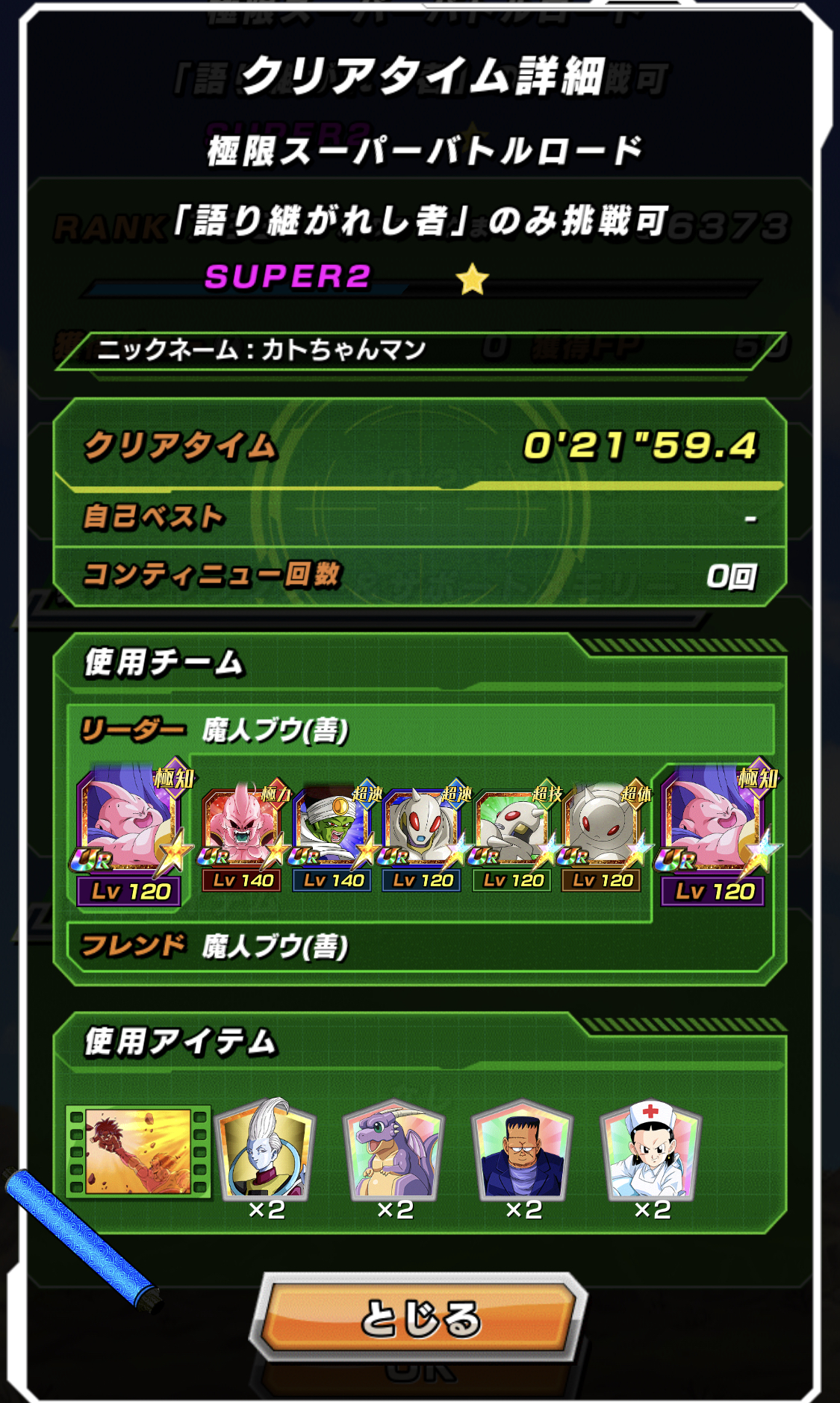 並びをテキトーにやってたら全く勝てなかったけど、復活善ブウと40善ブウでターン回してたらアイテム使い切る前に勝てた