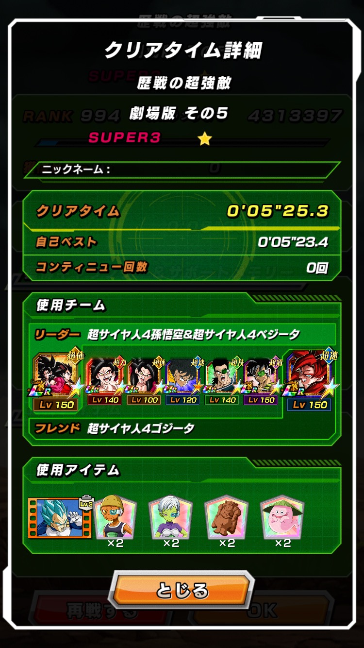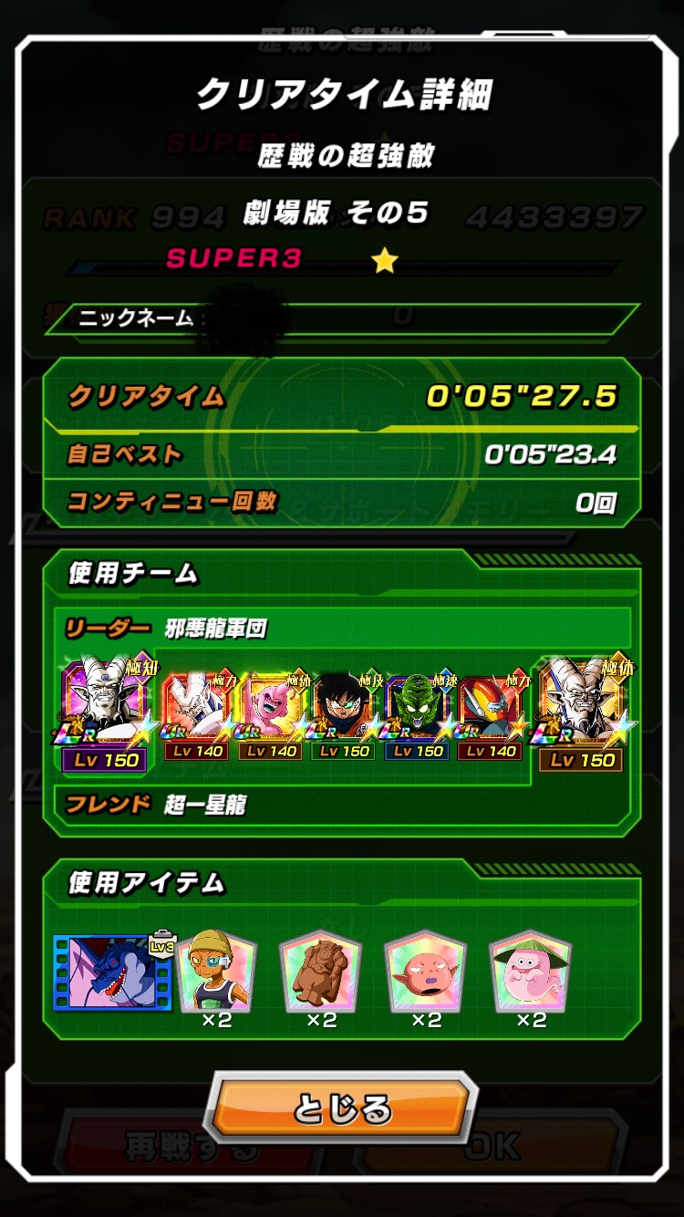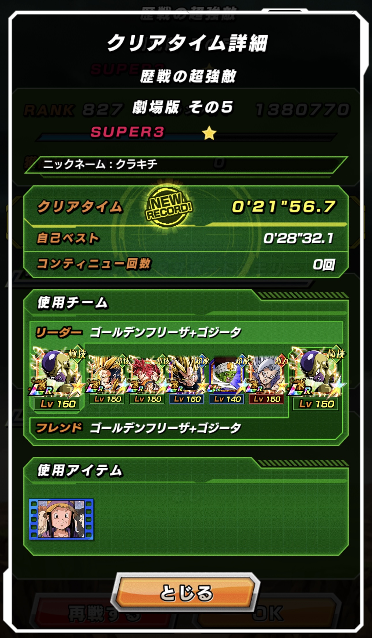 メモリーありだけどなんとか セルマックスの必殺が単体全体共にちょうどいいところで来ただけの運勝ちなんだけどね