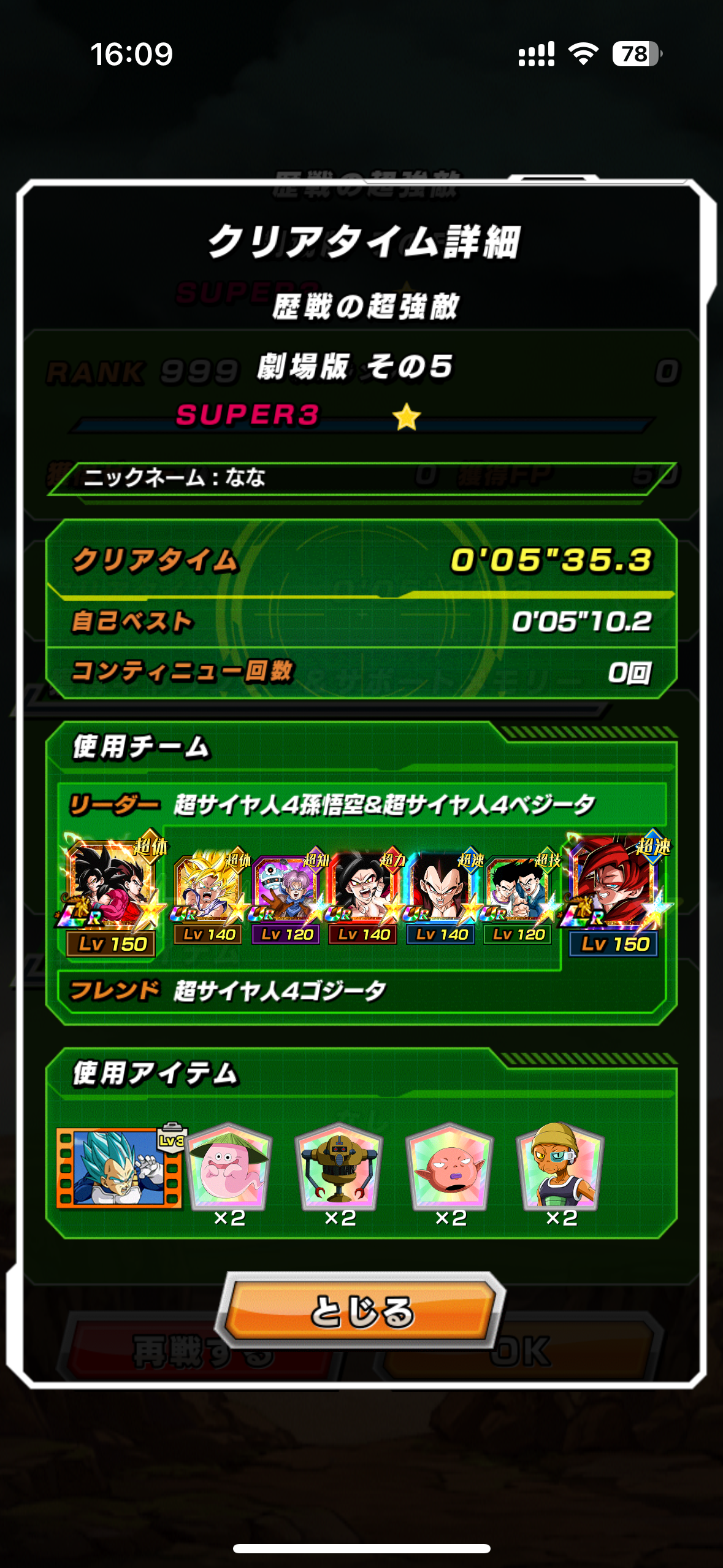 悟飯ちゃんがいないのでブロリー編成でなんとかした