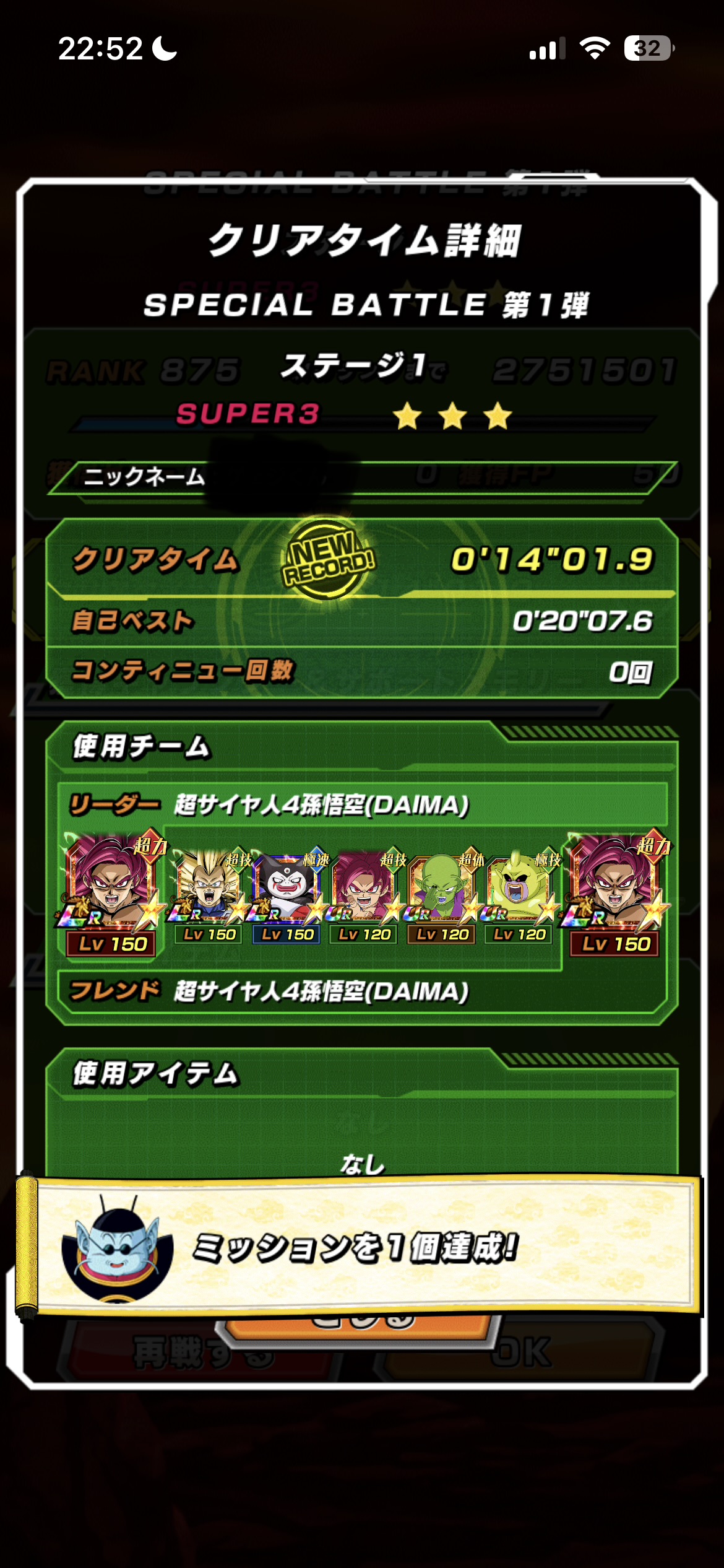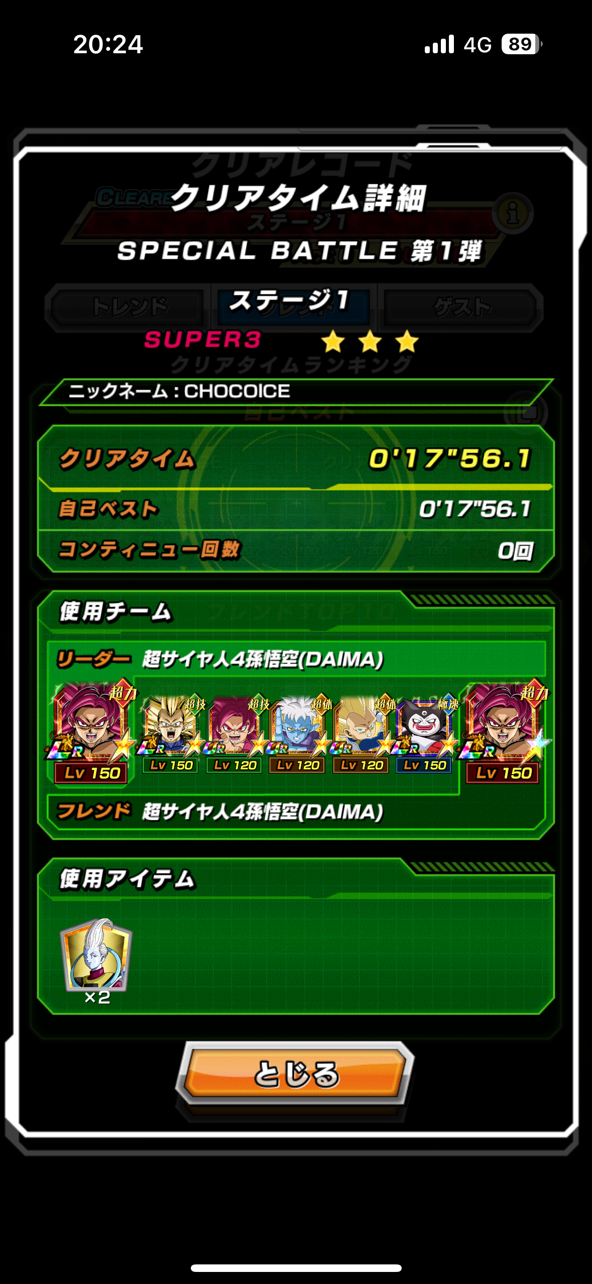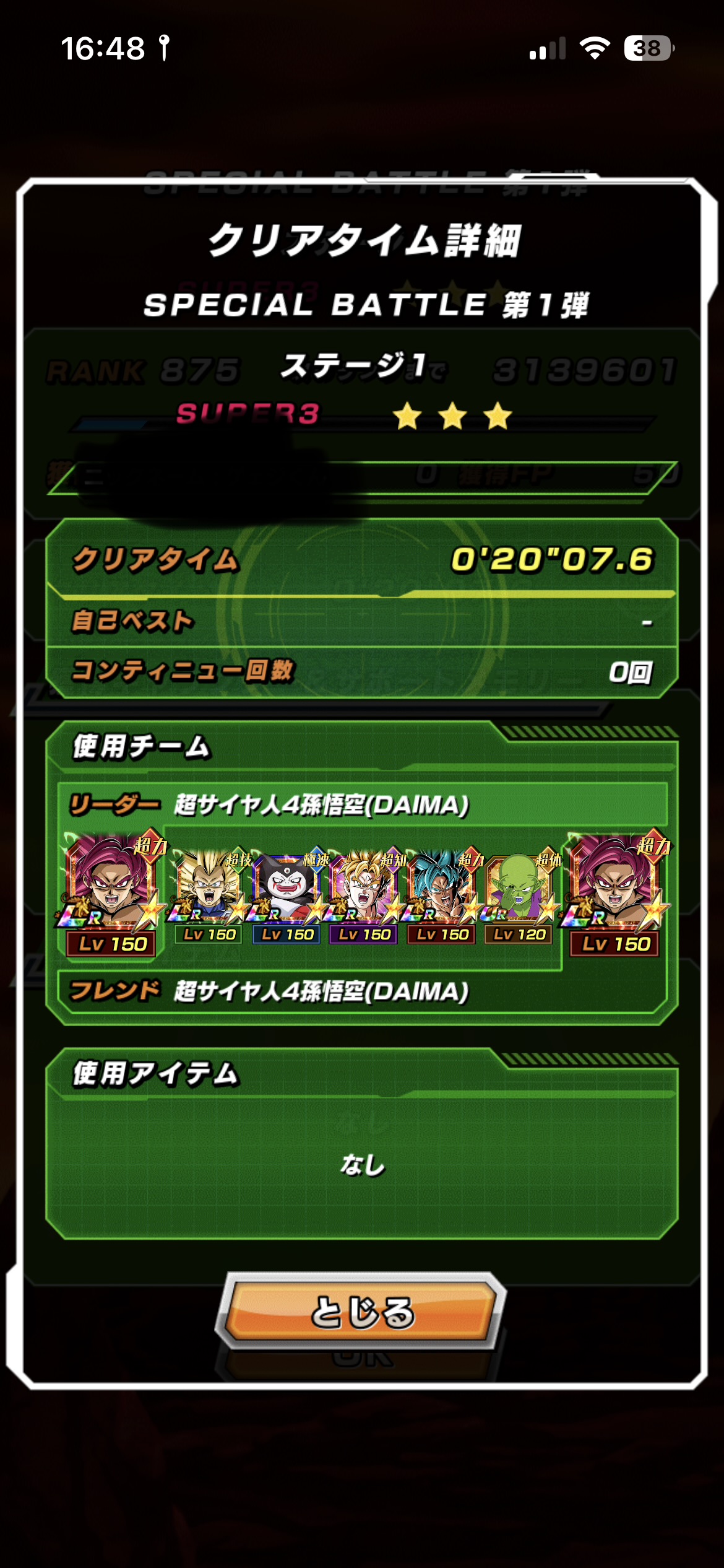 『11周年スペシャルバトル』の『ステージ1 (vs超サイヤ人3ベジータ(DAIMA))』の攻略ページです。