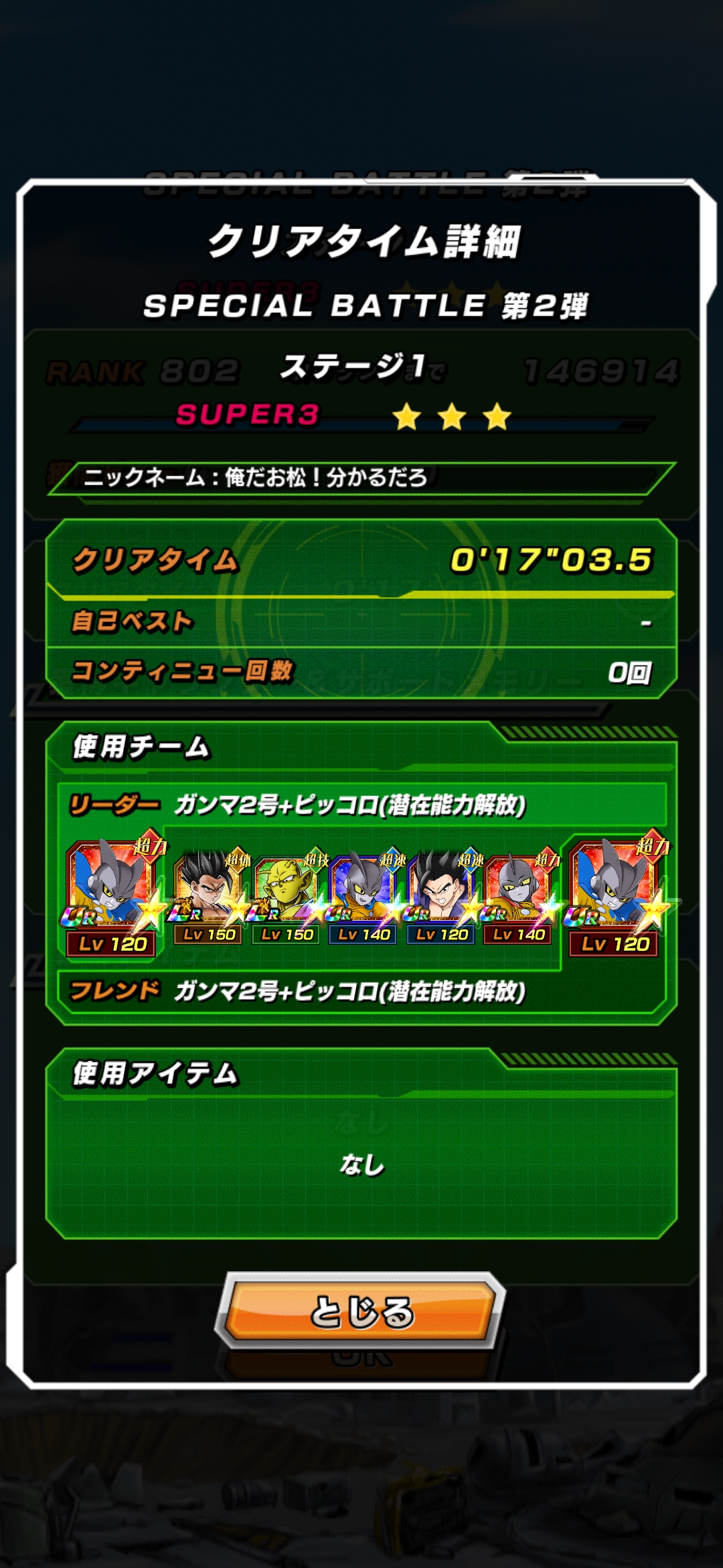クリアした後の『クリアタイム詳細画面』や立ち回りなどを投稿してくださるとありがたいです。