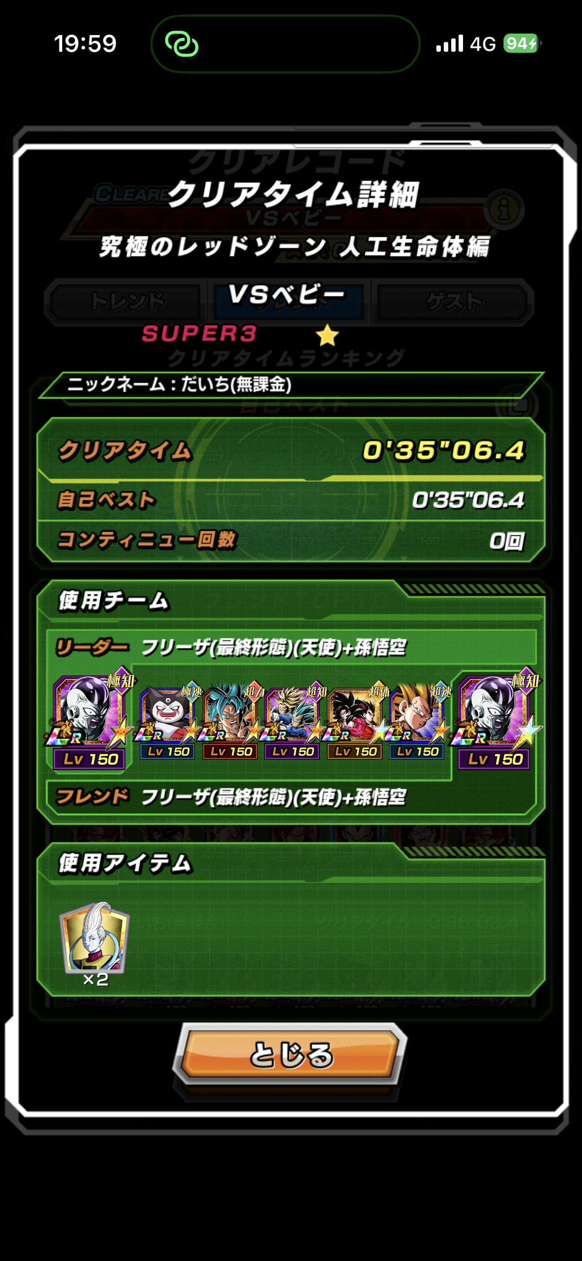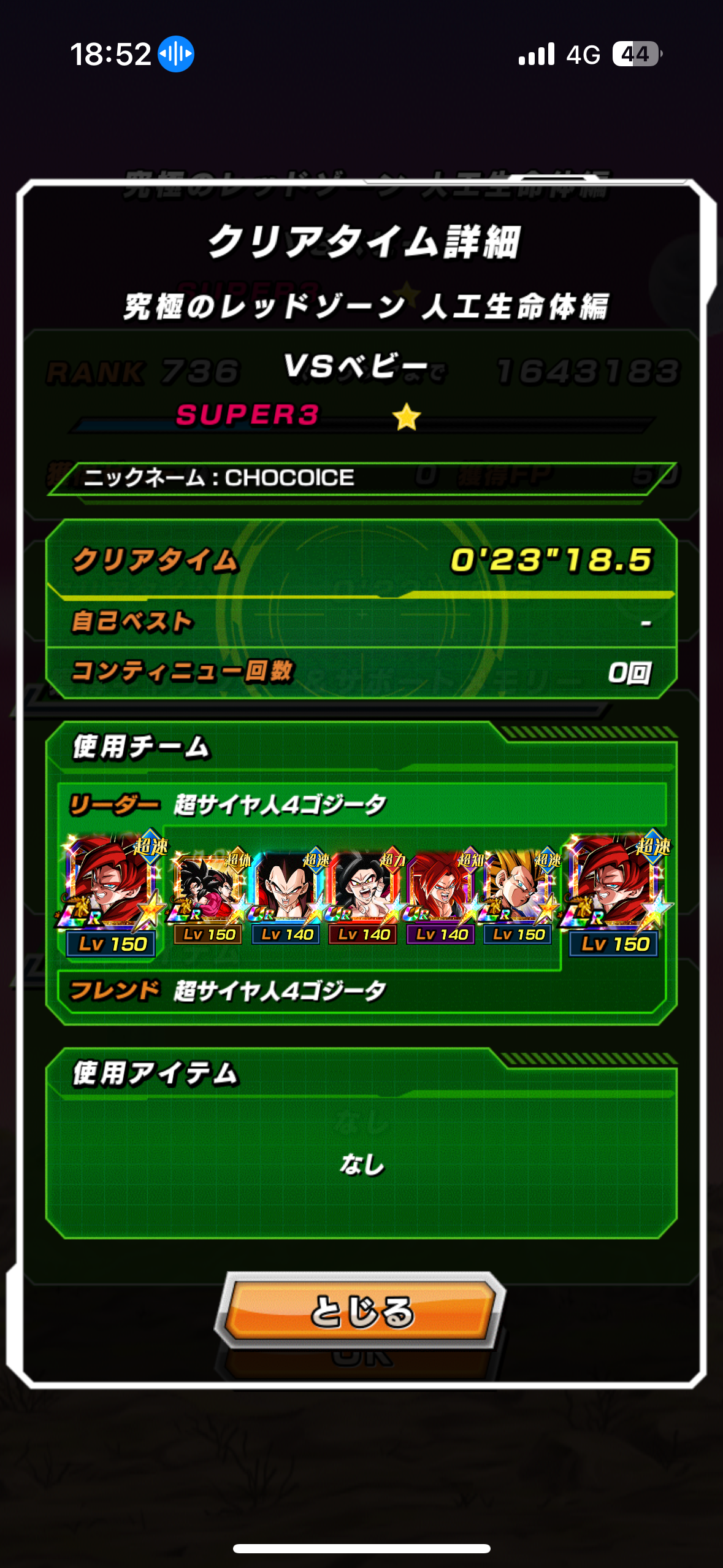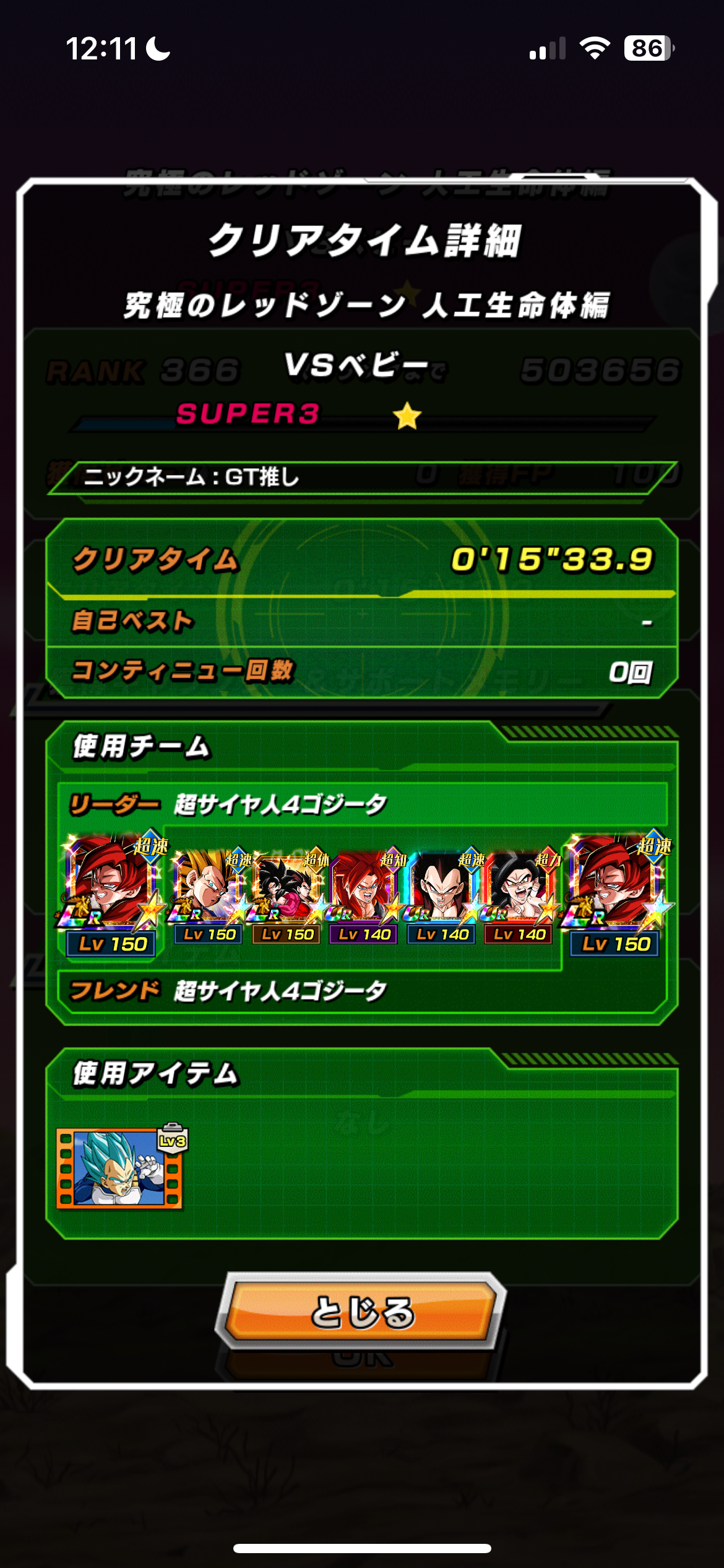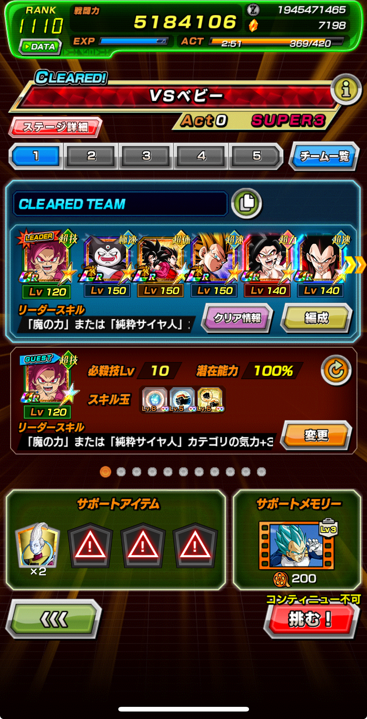 • 俺がやった時は超極限悟空4、黄金大猿の裏サポのみで軽減率30の状態でも大猿ベビーの必殺完封だったぞ。実数値に依存してるから前のターンにしっかり育てとくことが重要