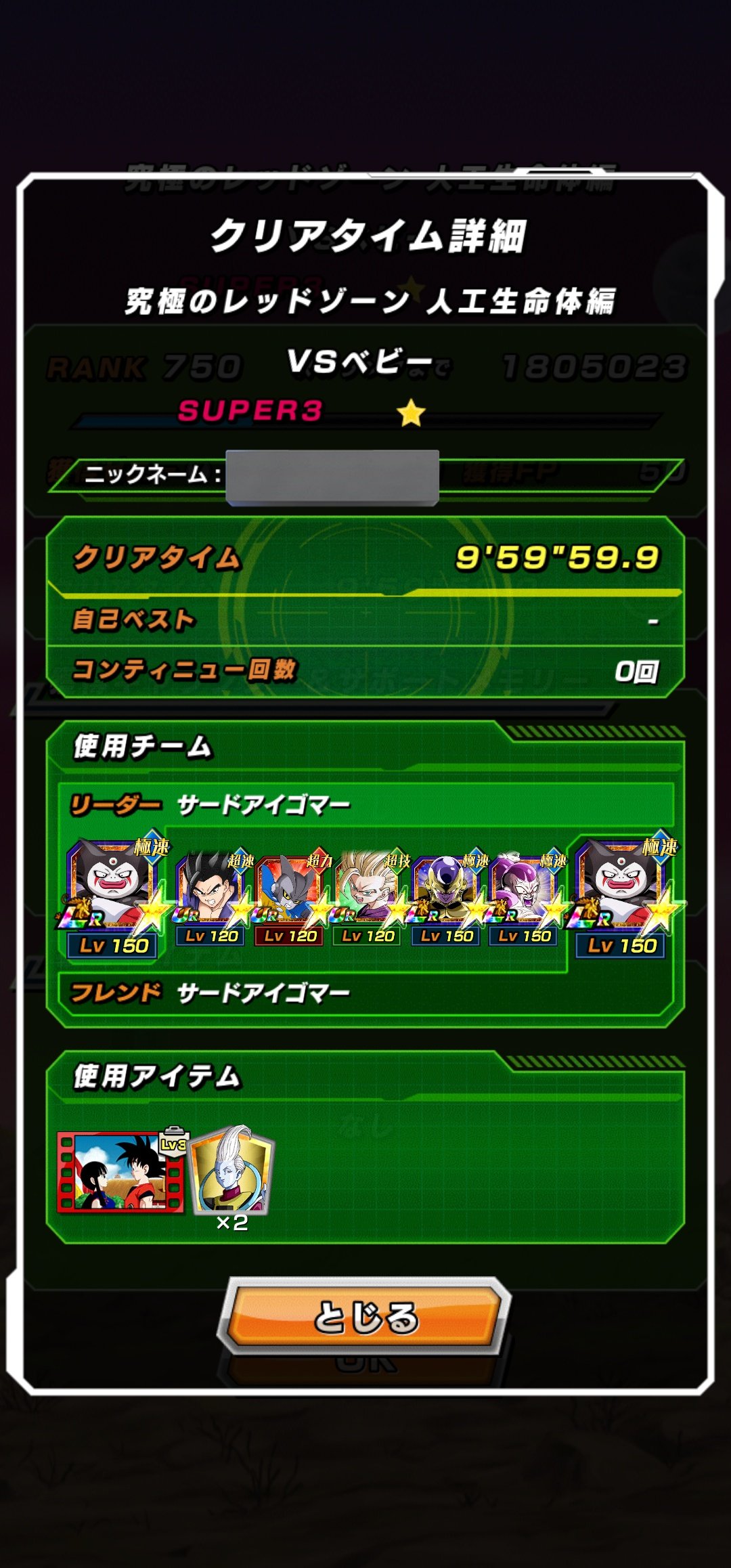 最終ラウンドはATK1,000万前後の必殺を1,2,3番手に確定3連打して来るので足を引っ張るキャラが1人でも居たらアイテムなりでカバーしないと確定敗北ですが、これだけじっくり育てる余地があればその必殺連打への対抗手段も十分間に合わせやすいです。