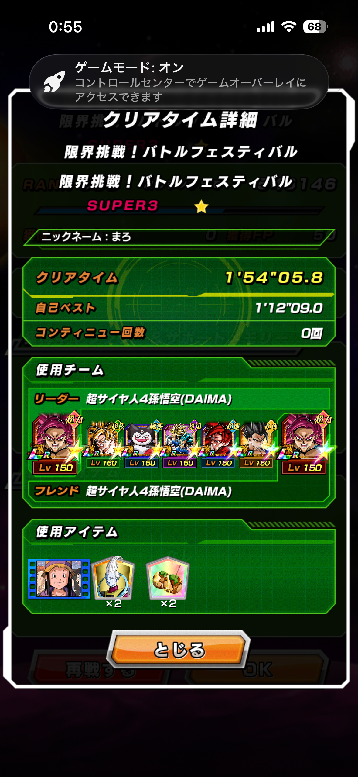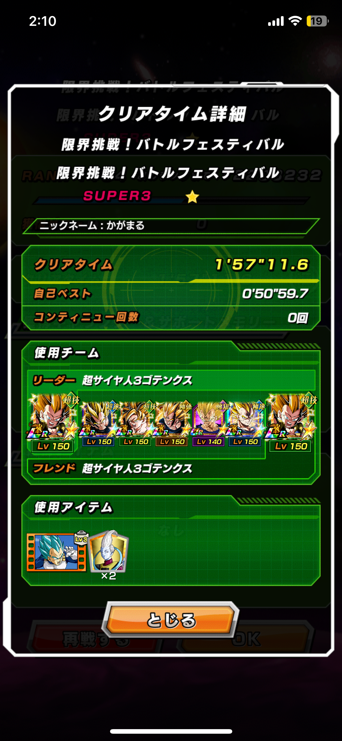 信じられない程の長期戦なので『無限上昇キャラ』が重要になりますが、『規定ターン数』が指定されているのでダラダラ戦って積む事は許されない構成です。