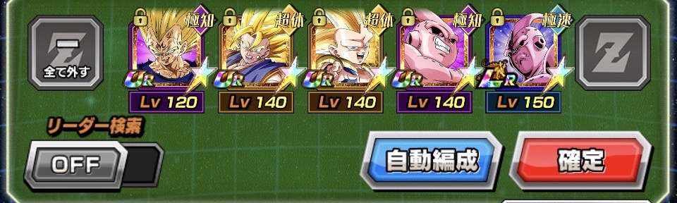また縛り5体ステージも『自前1体+フレンド1体』で自由枠が2つあるので、例えば『混血サイヤ人』の縛りもカテゴリ外のキャラをリーダー・フレンドに使って上記のような編成で挑む事も可能です。