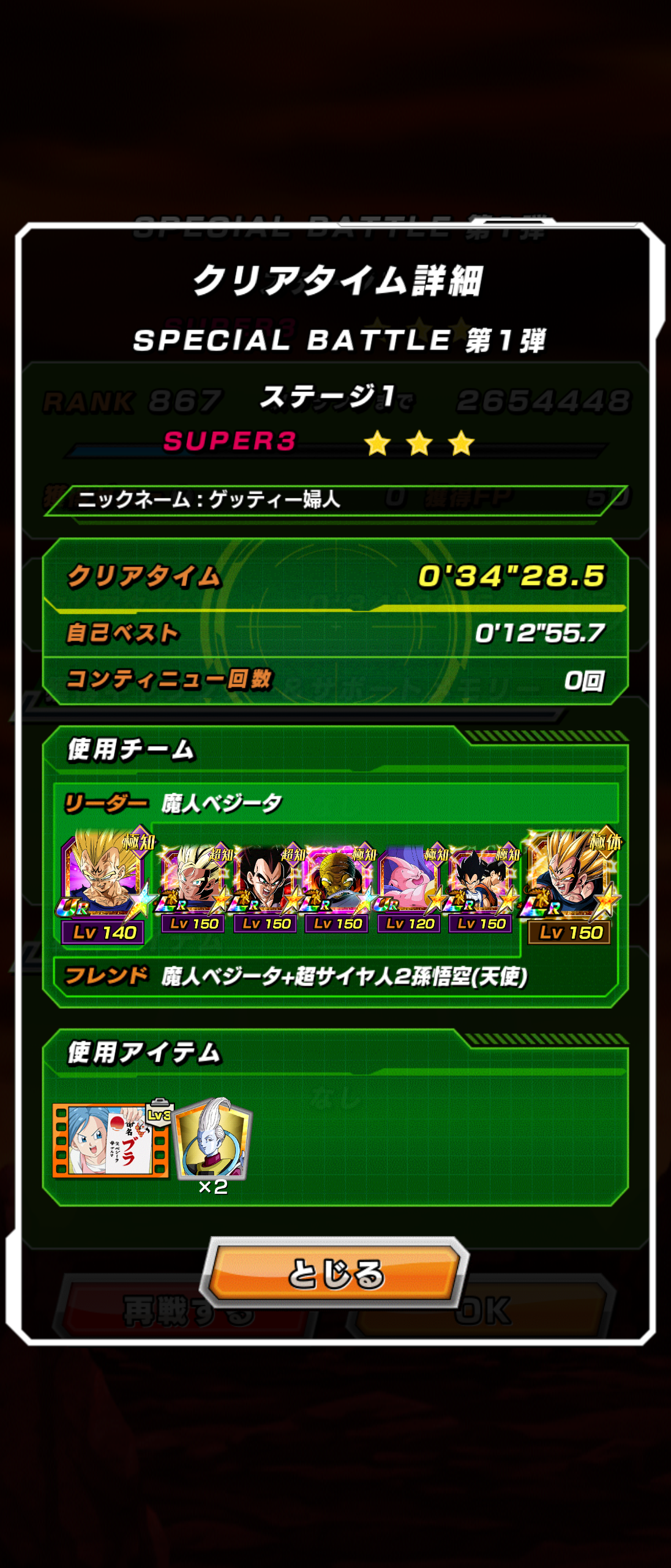 メモリアルゴジータノーアイテムで行けてワロタ