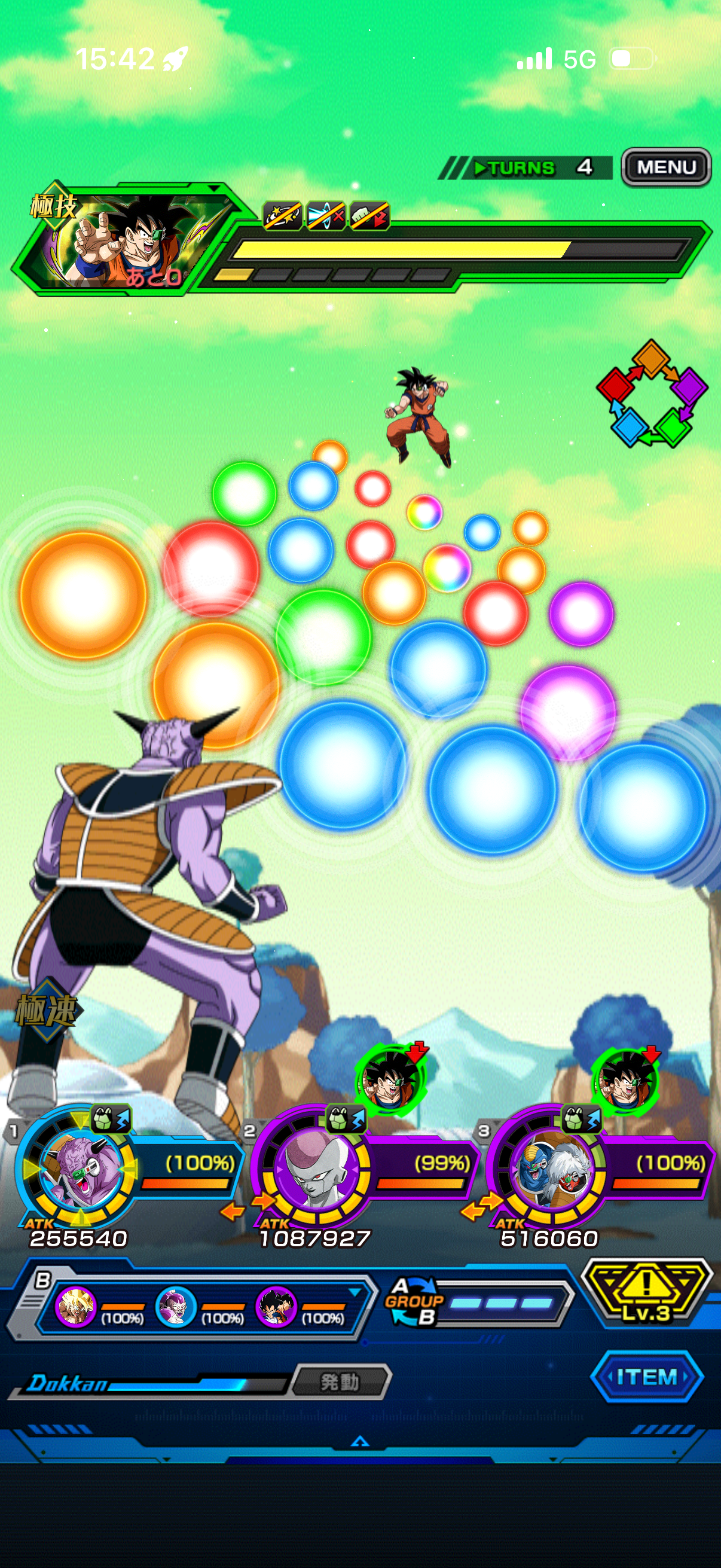 グループチェンジバフかけしてLRギニューの必殺効果でバフかけて3/4でギニューが必殺撃てればに殺せるよ