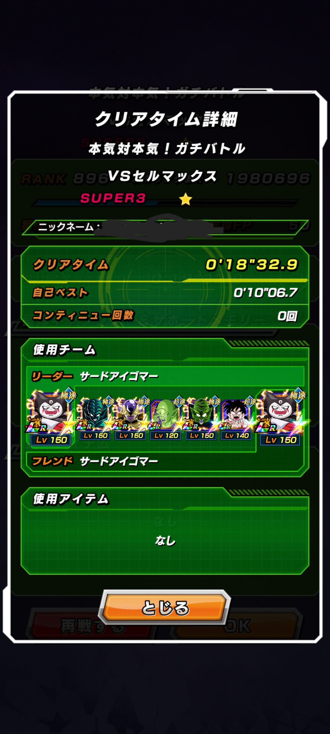最後のステージ9・vsセルマックスが追加されました。全ステージをクリアするとユニーク称号を獲得出来ます。