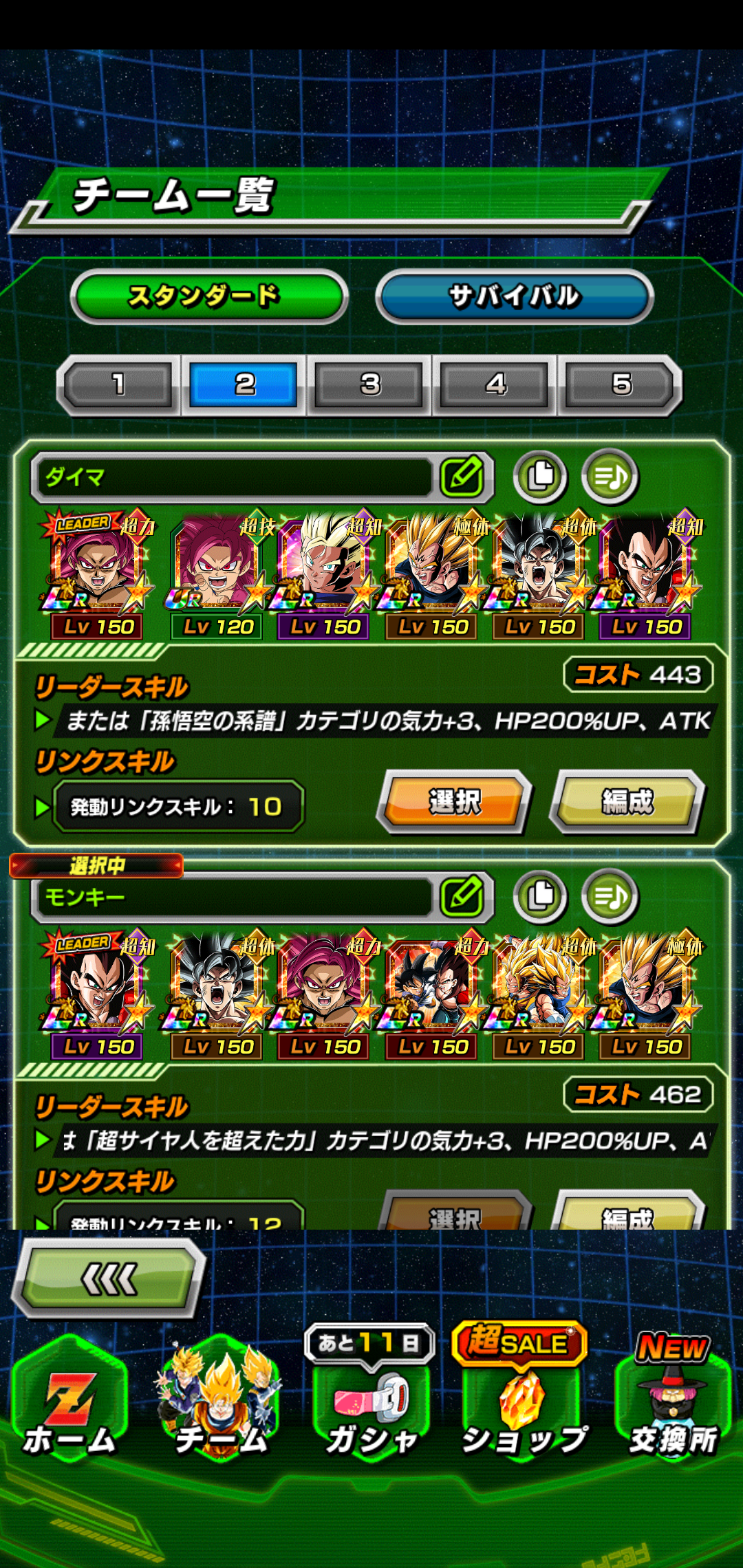 ⑥「超サイヤ人を超えた力」カテゴリを 6体編成してクリア (龍石×5)