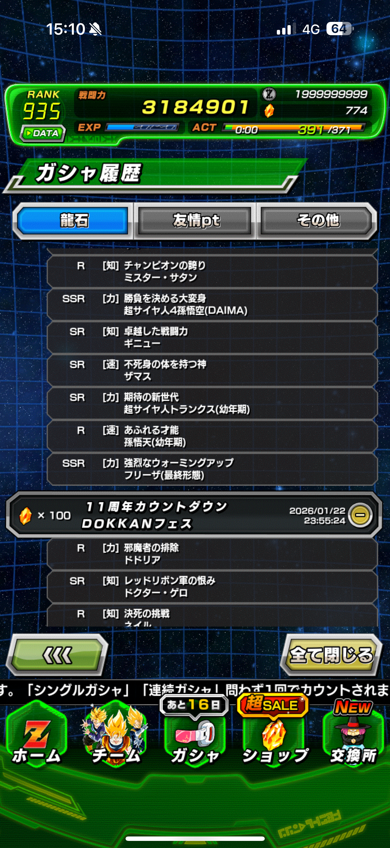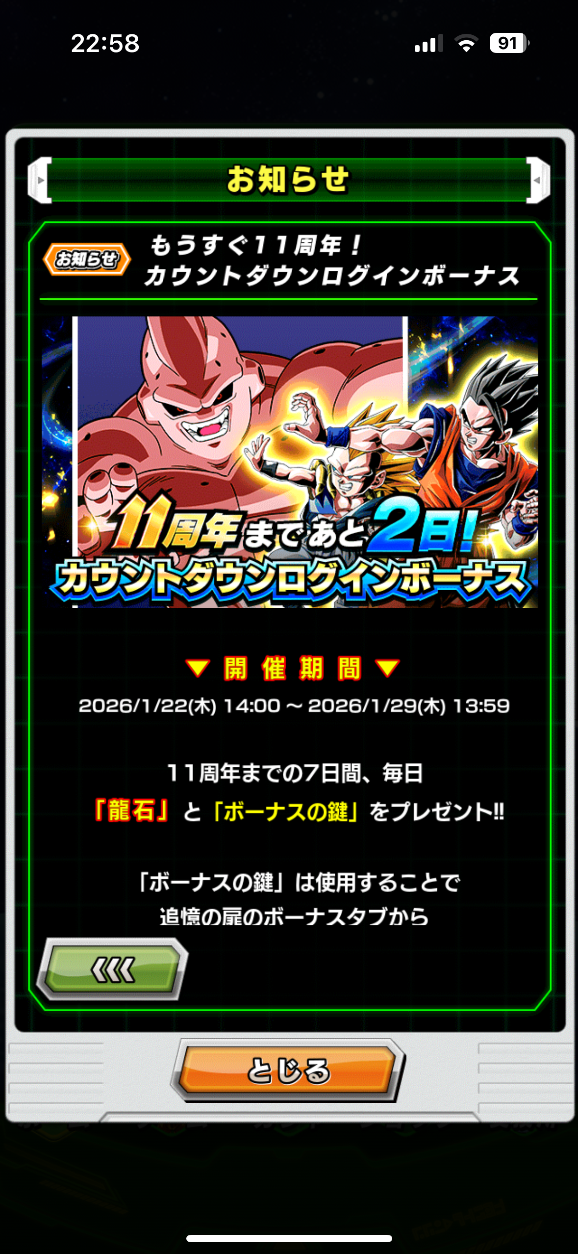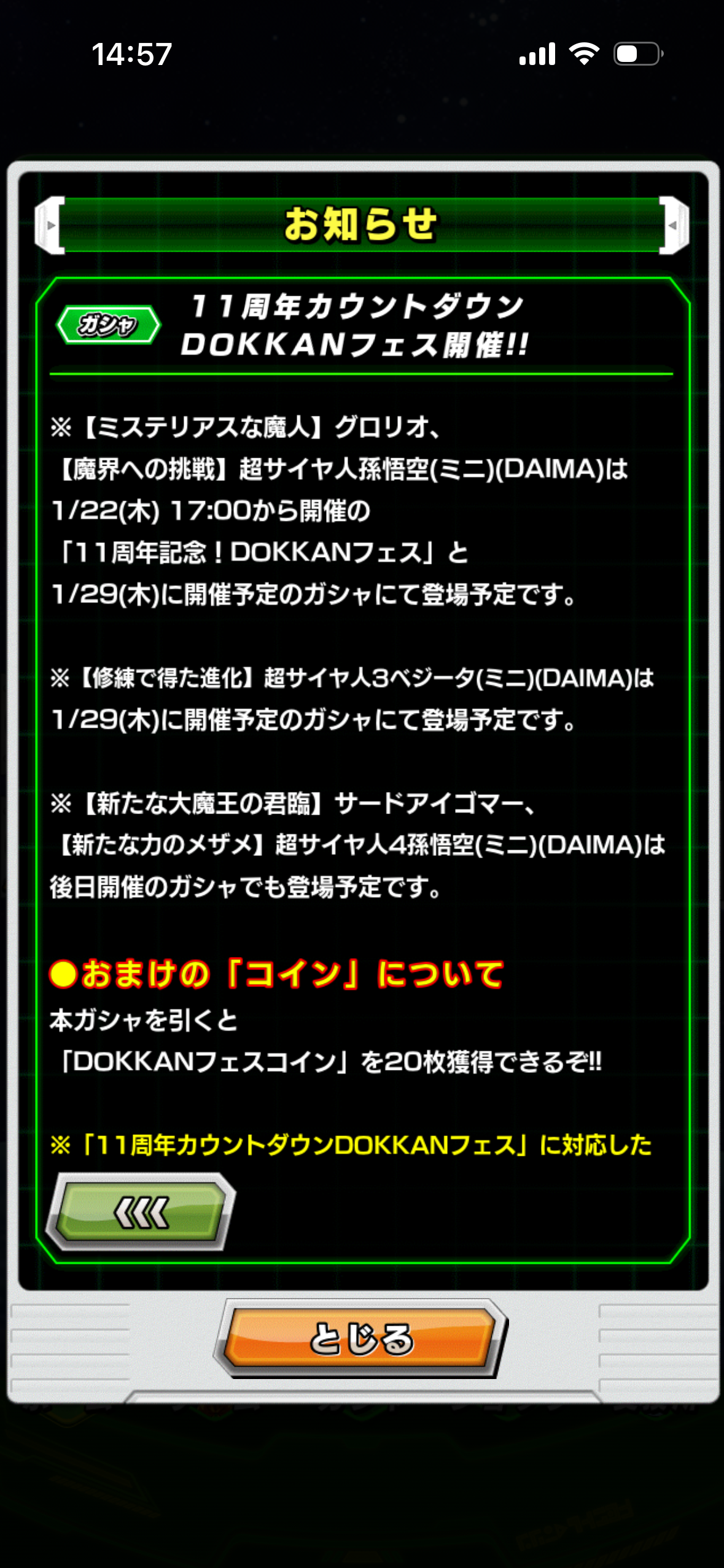 来ないんじゃ11周年がナメック星!ナメック星!