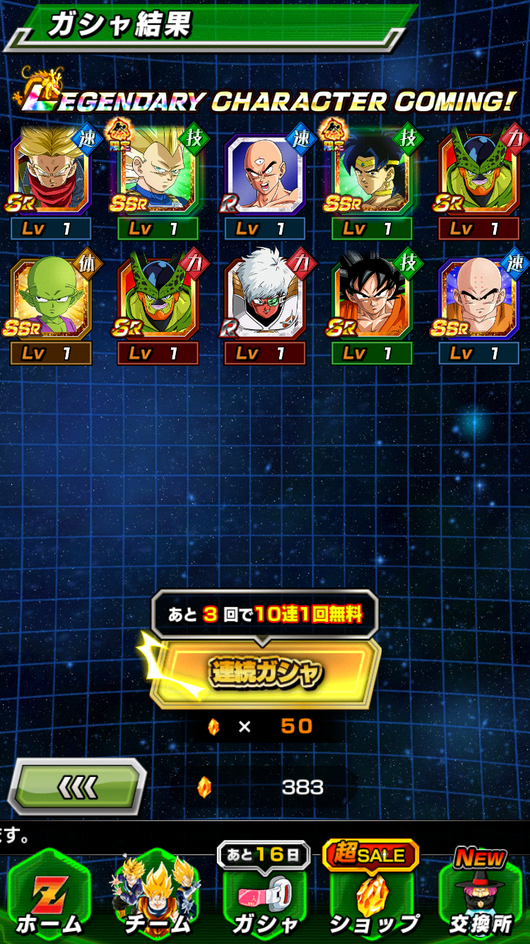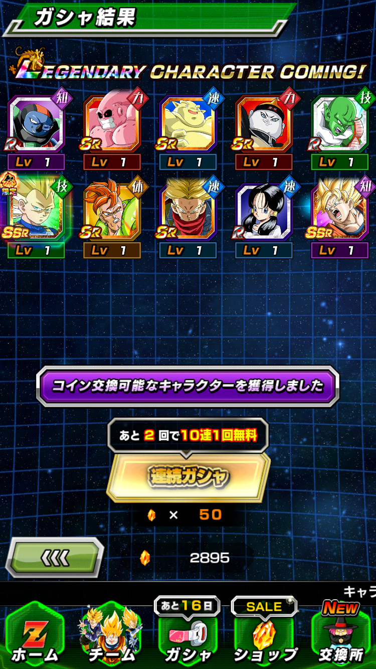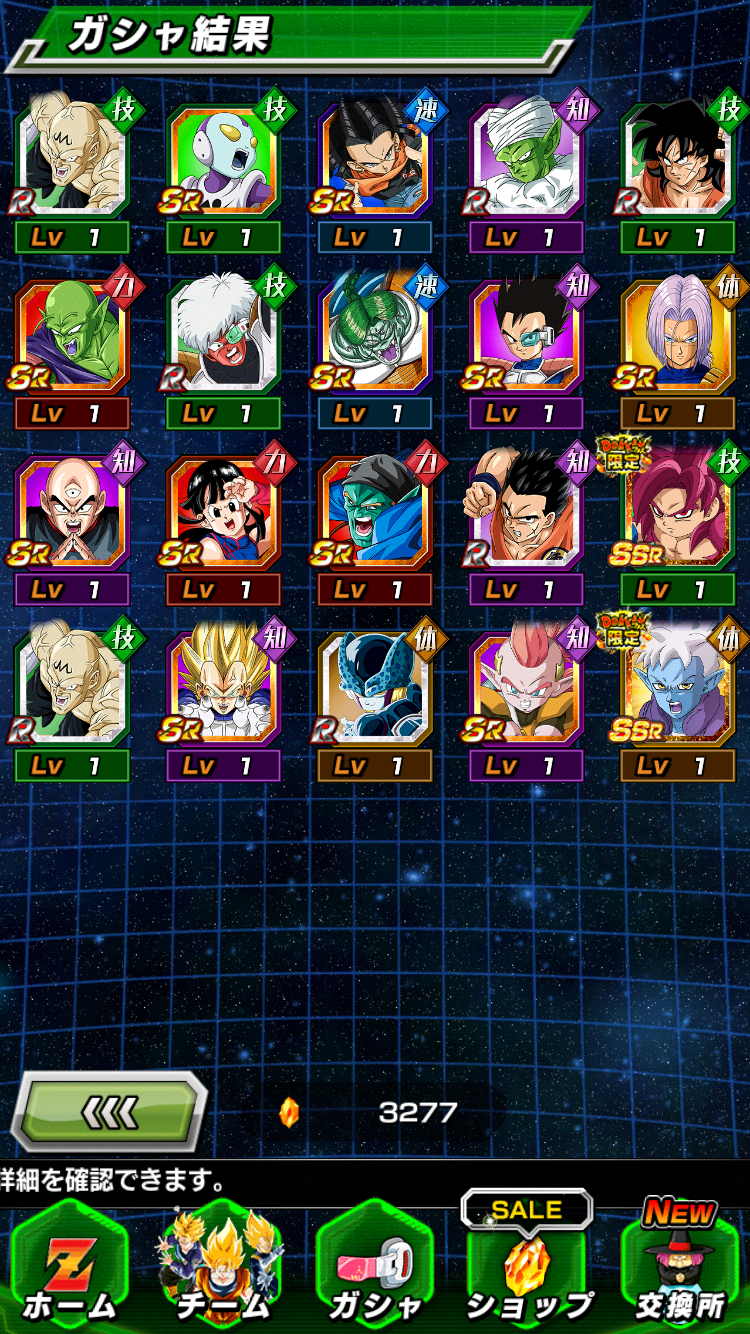 サブ垢2つともで計3垢でそれぞれで1200石以上使ってやっとでたから、去年よりは出辛い気がする、ベジータの方なんて余裕ないわ