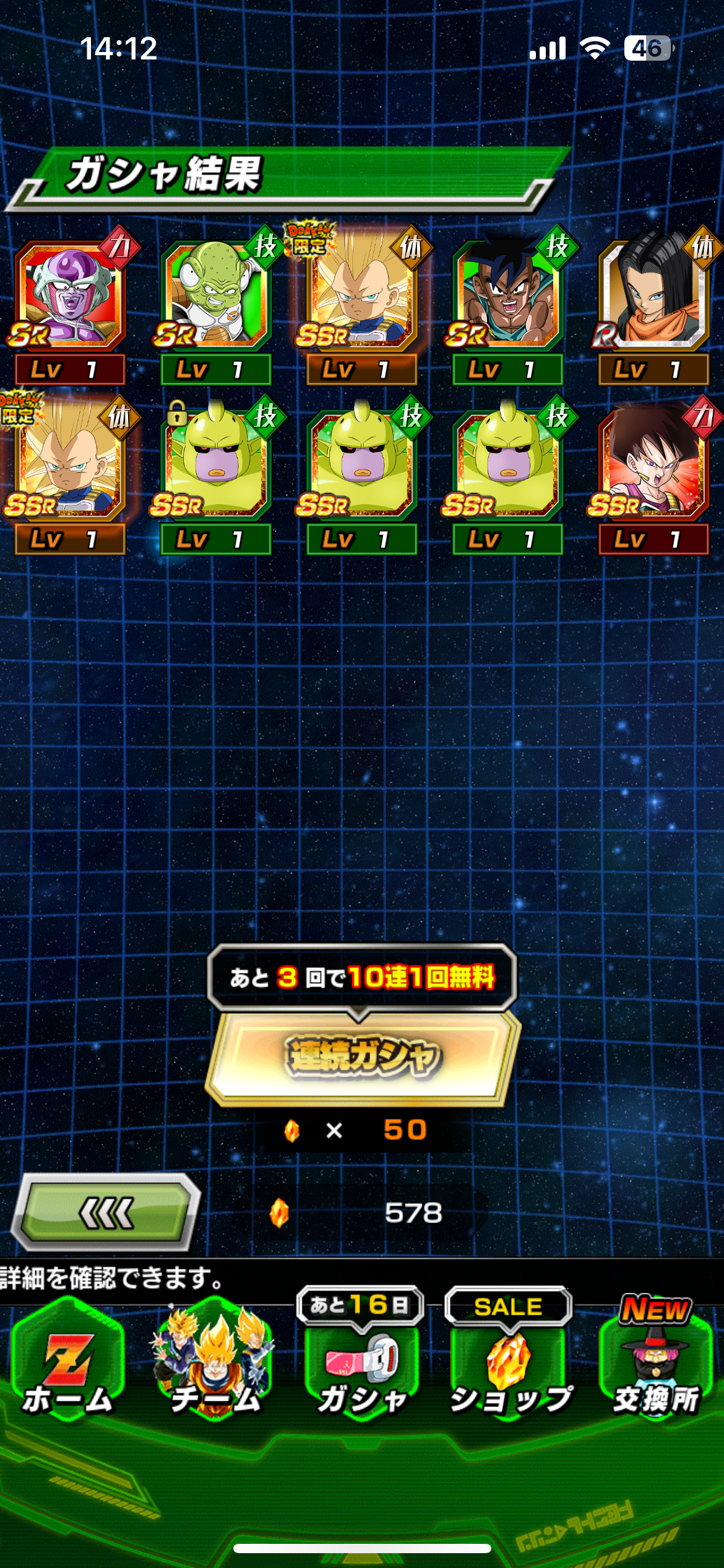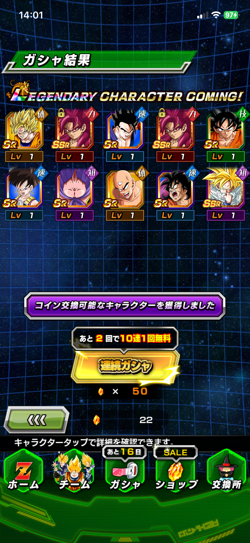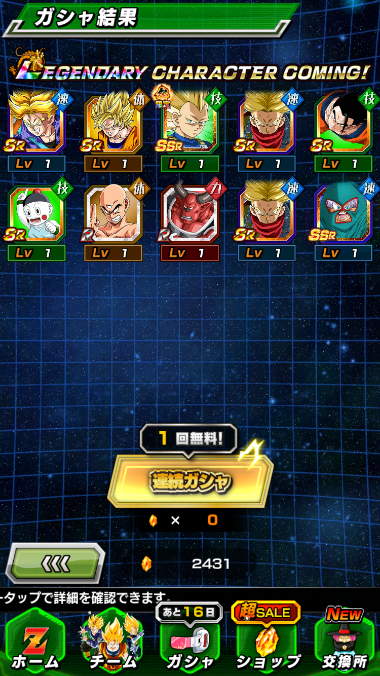 サブ垢2つともで計3垢でそれぞれで1200石以上使ってやっとでたから、去年よりは出辛い気がする、ベジータの方なんて余裕ないわ