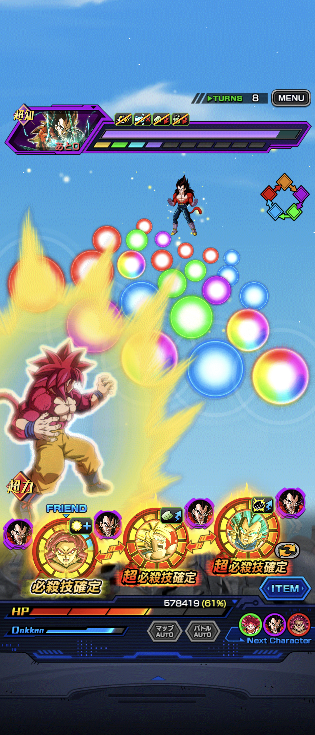 全体的に敵はクソ弱いですが、最終ラウンドの悟空&フリーザのみ、ターン開始時にHP50%以下まで追い詰めると『ATK500万超えの会心必殺』を放って来ます。
