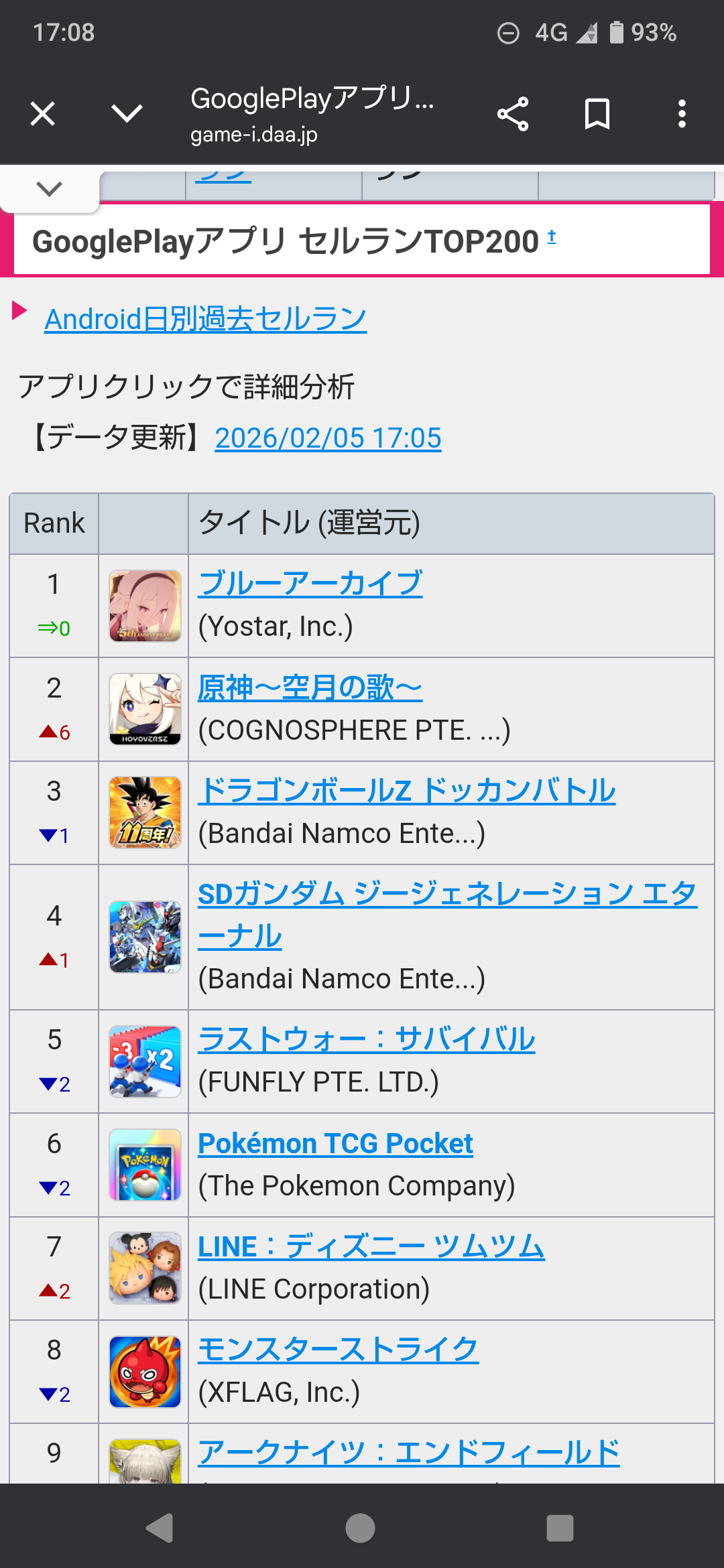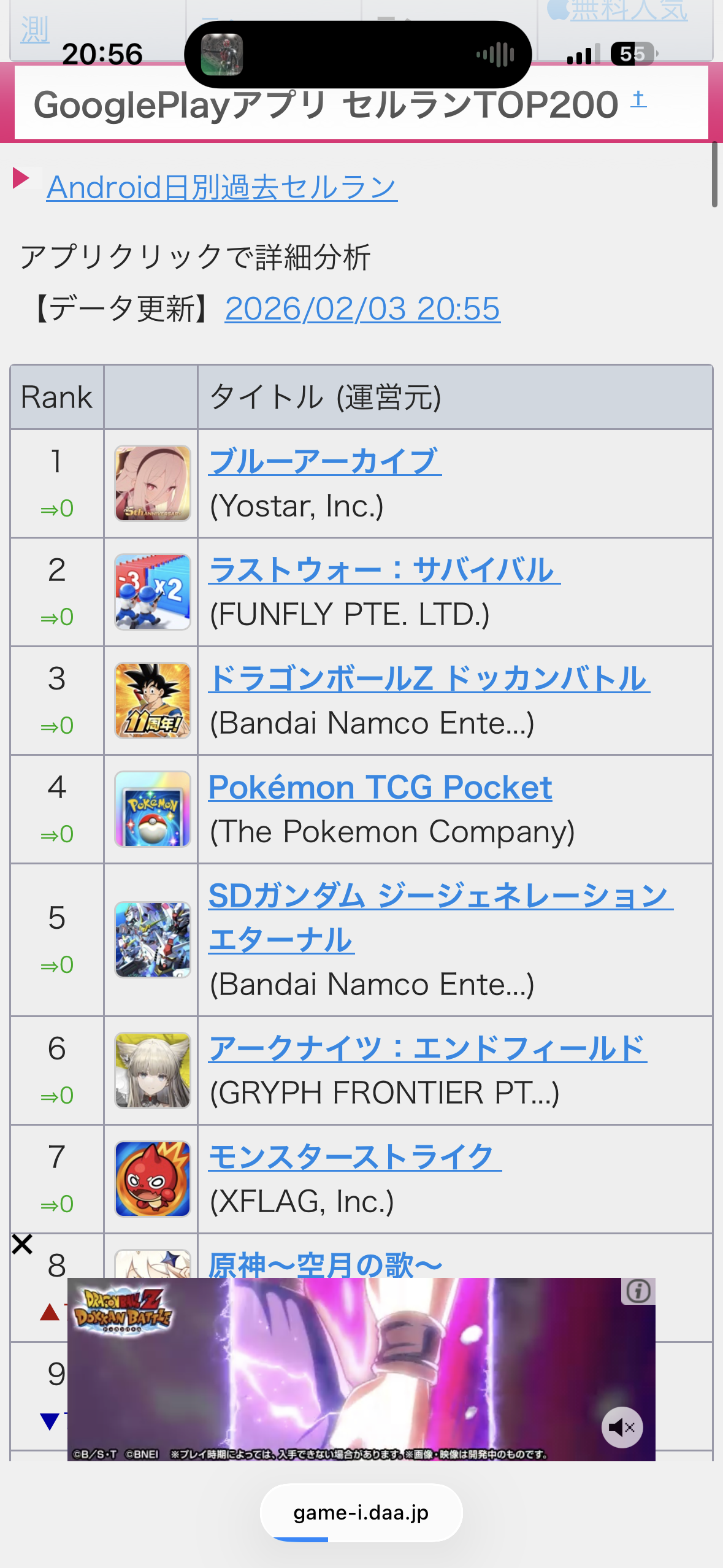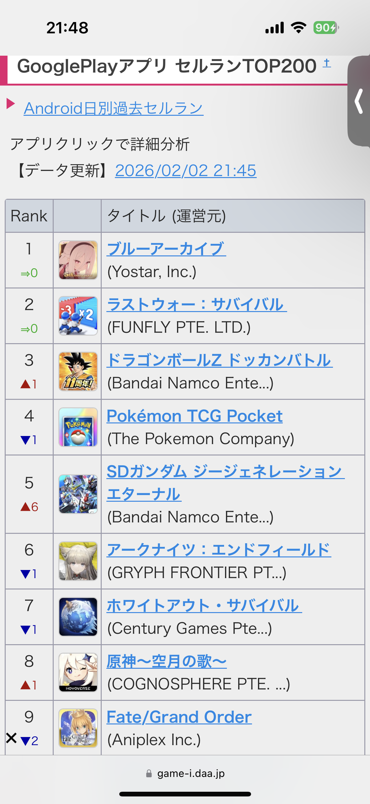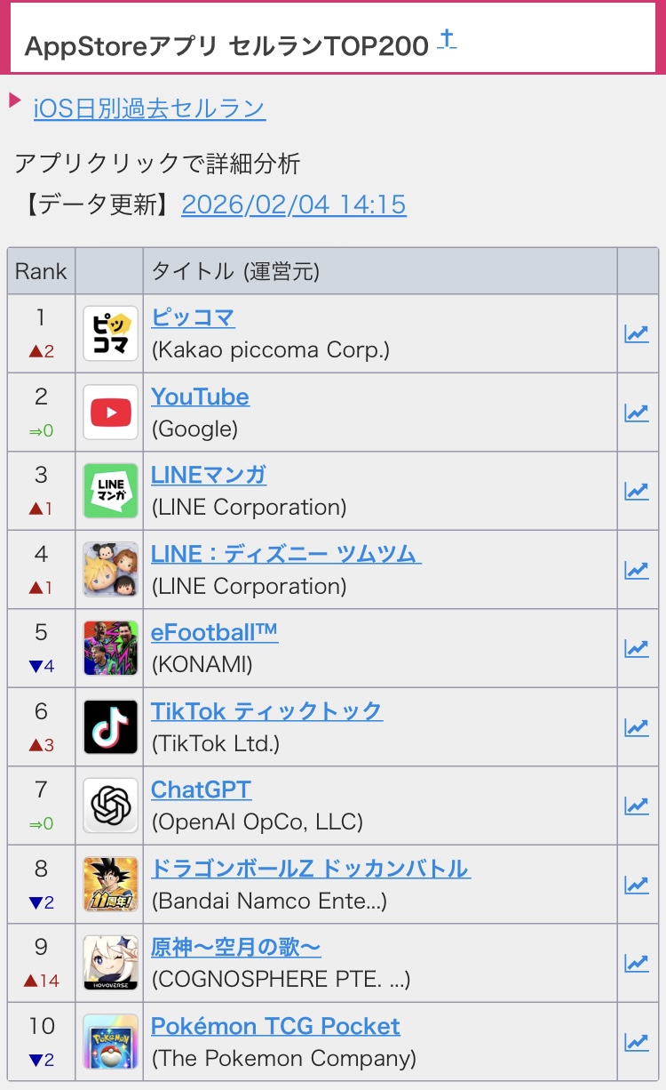 ドッカンまだ1位やん