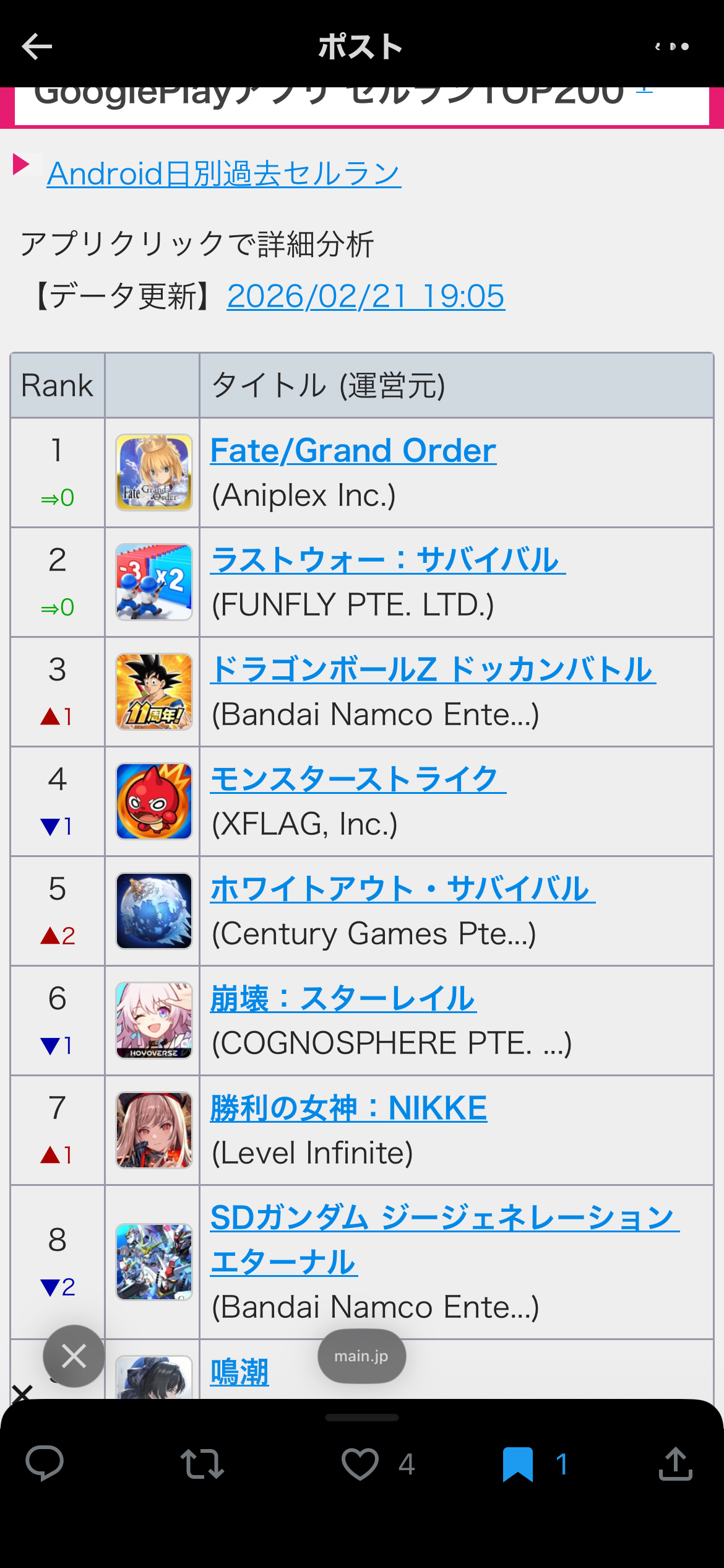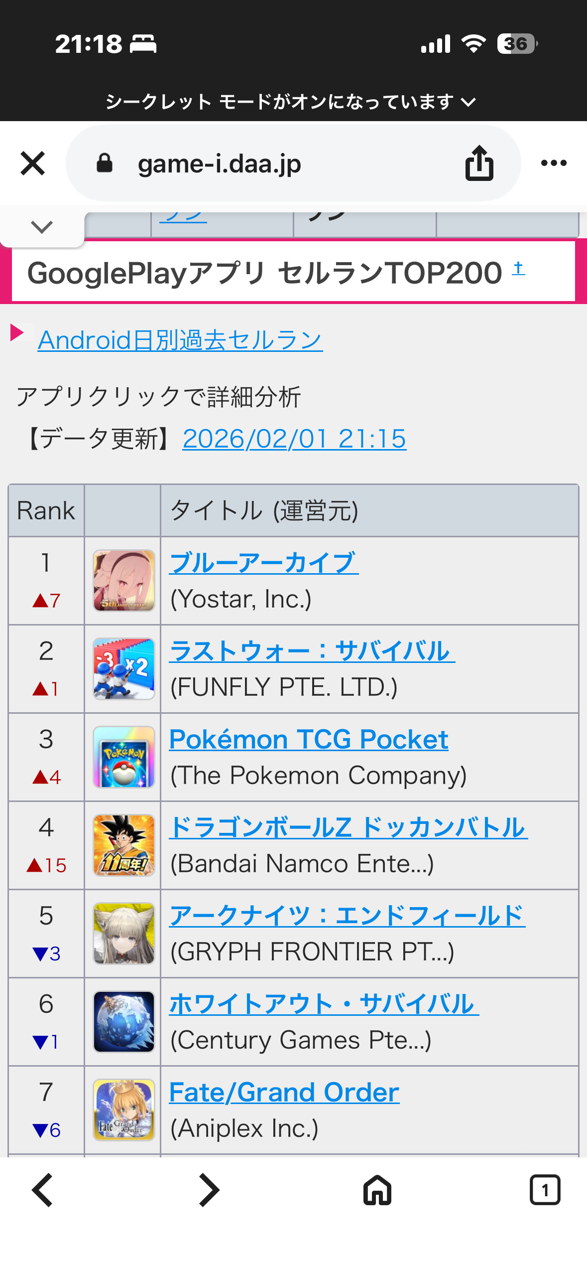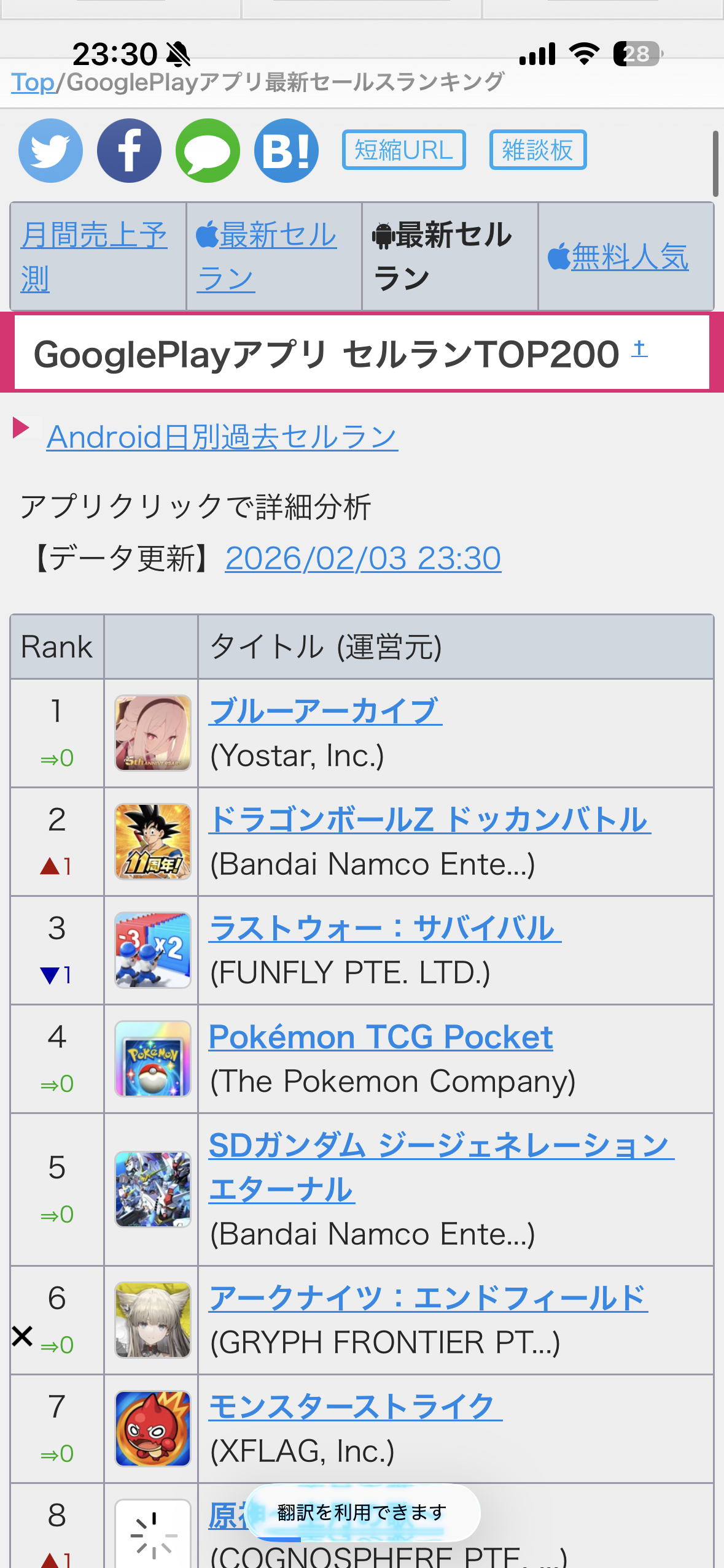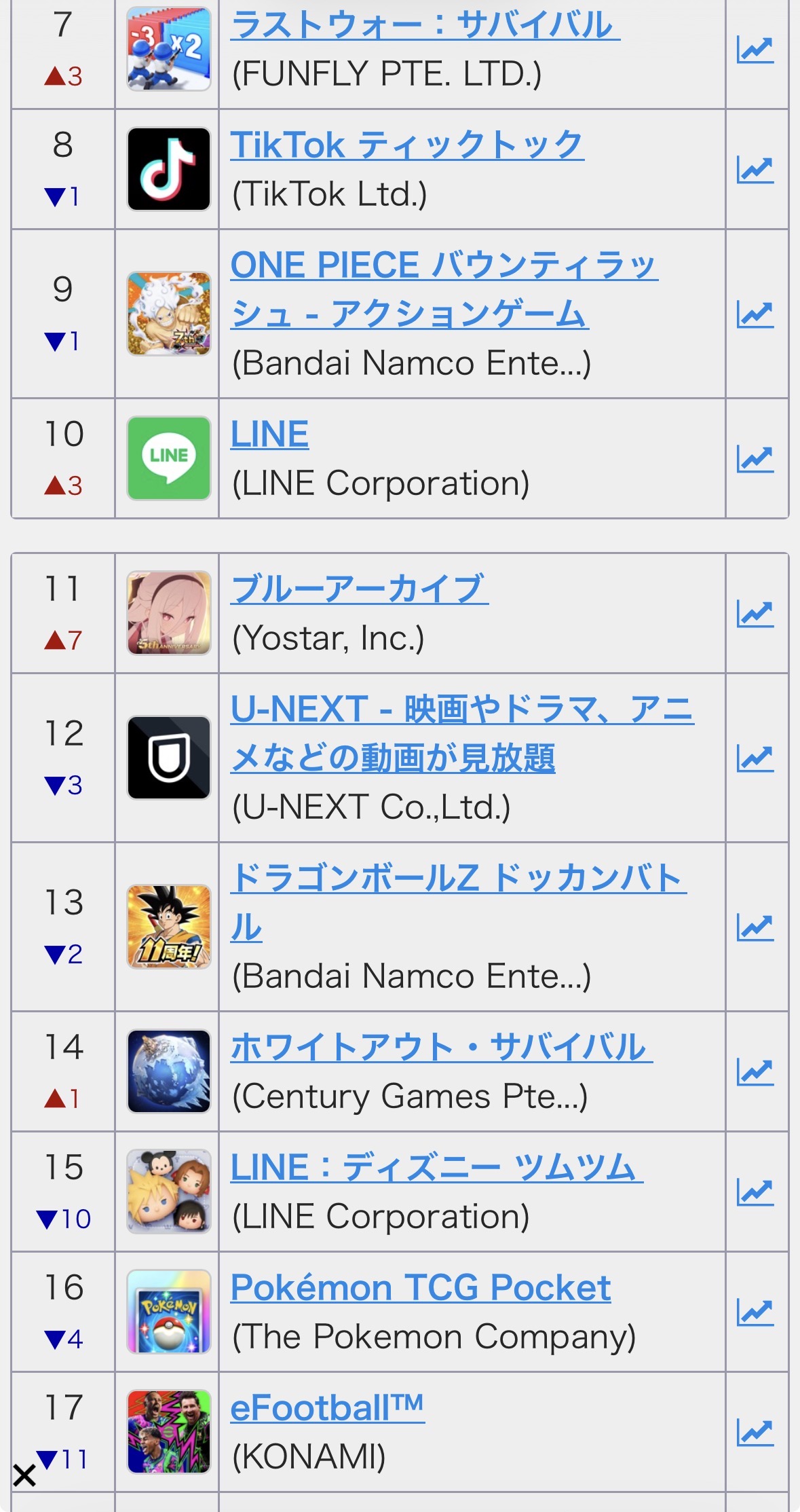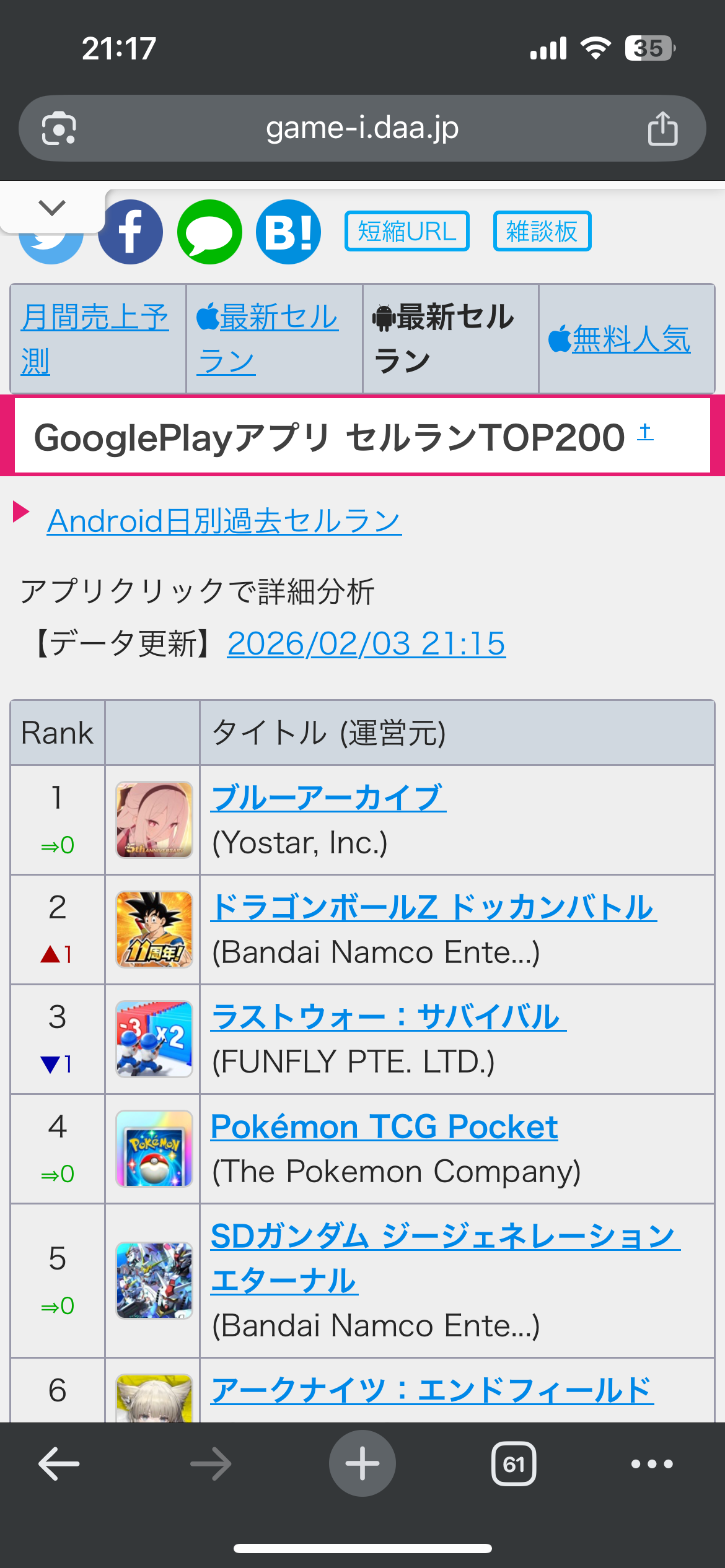 ドッカンまだ1位やん
