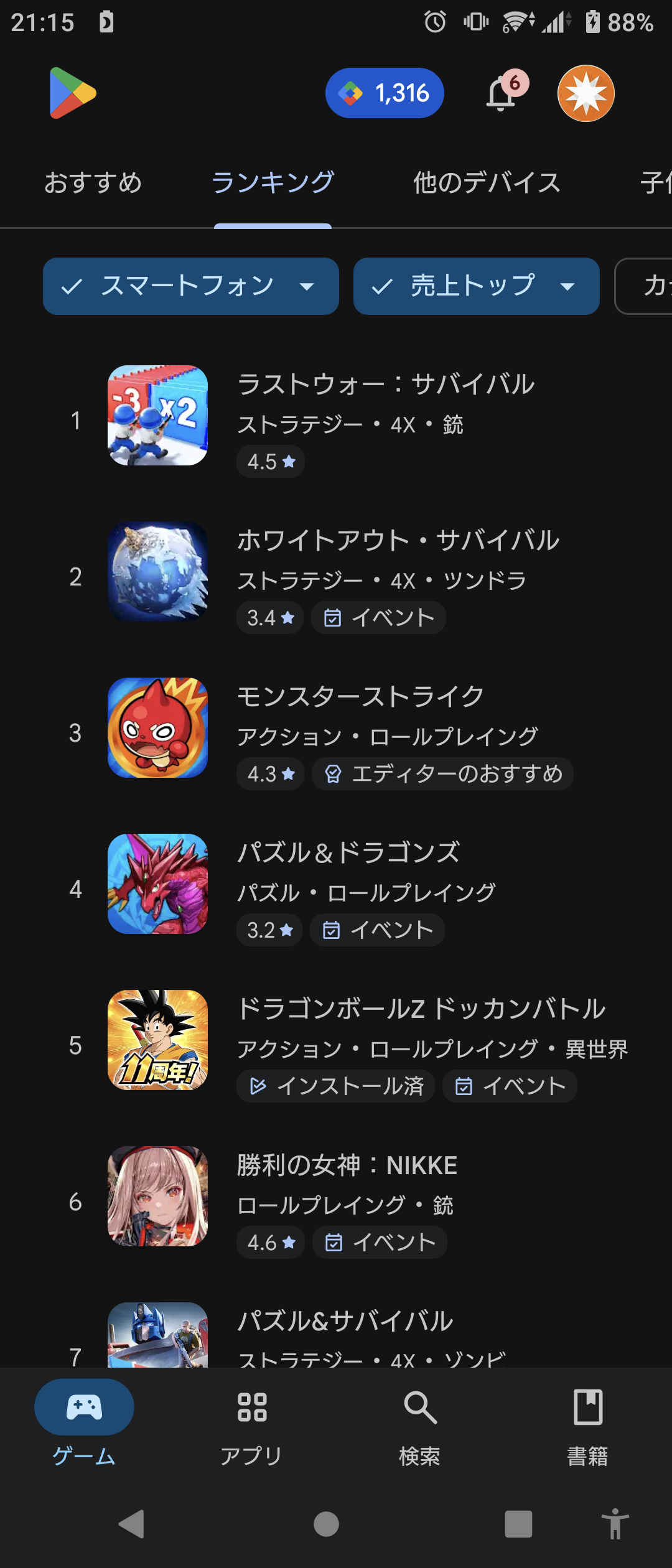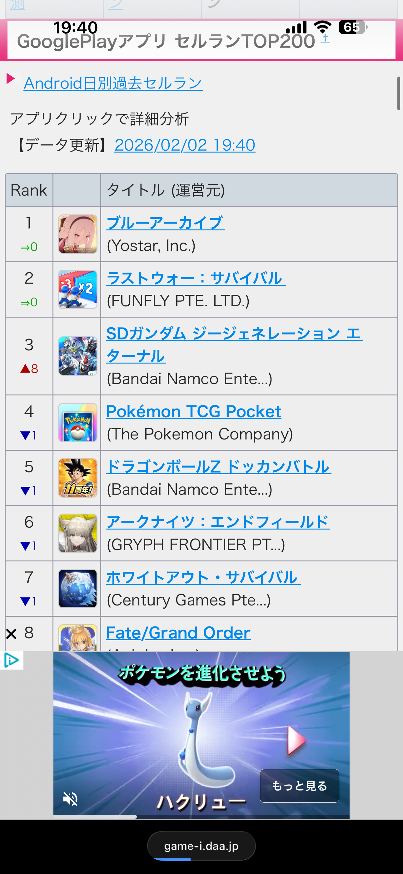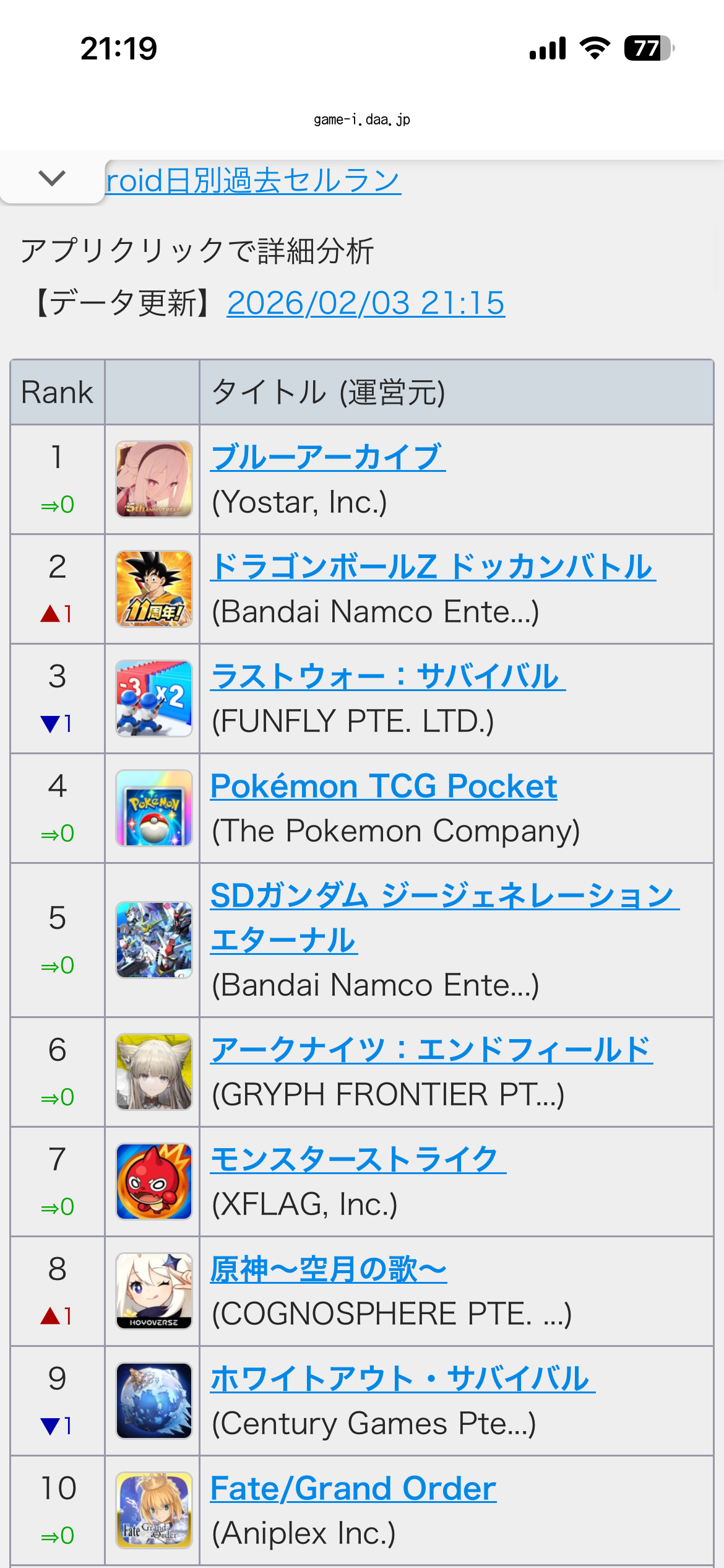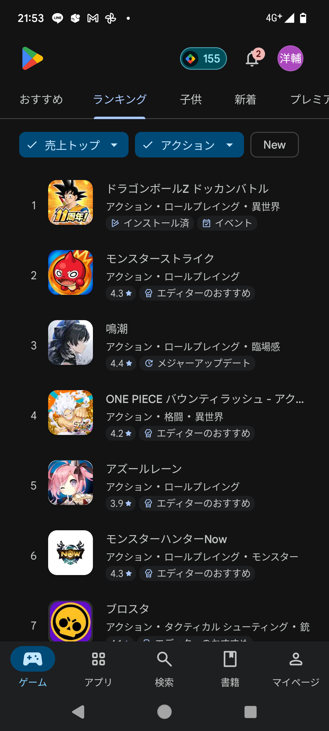 ドッカンまだ1位やん