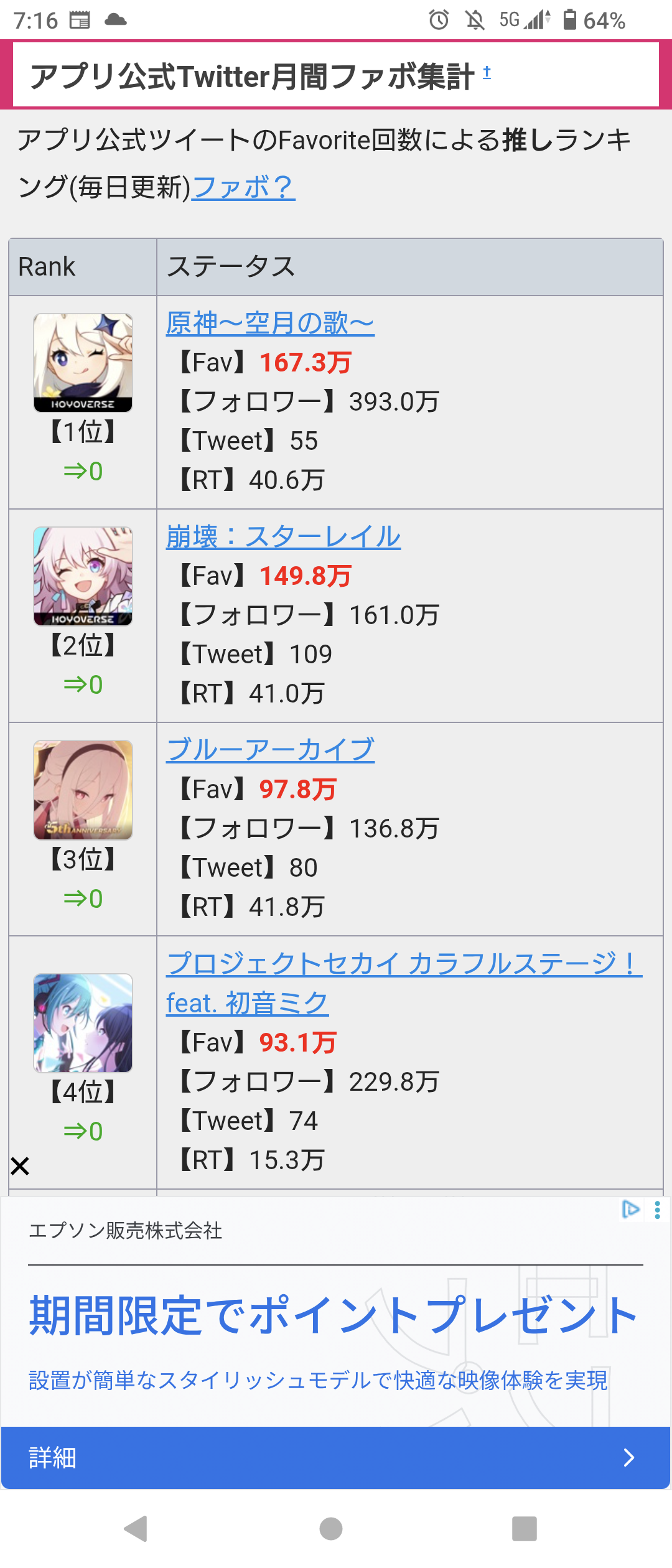しかしiOSは前後半1位を獲って数日間死守する底力をまだ秘めてるのはただ凄いと私は思いますのー