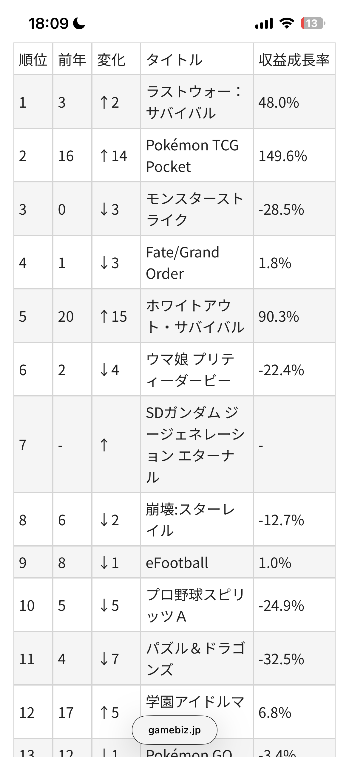 てかポケポケ弱体化したとか言ってDAIMAの売上認めたくない人いるけどポケポケ未だにゲーム売上ならずっと上位キープしてるしわざわざ時間変更してドッカンに対抗してガチャ始めてるのにそんなに下げたい理由がわからんわ
