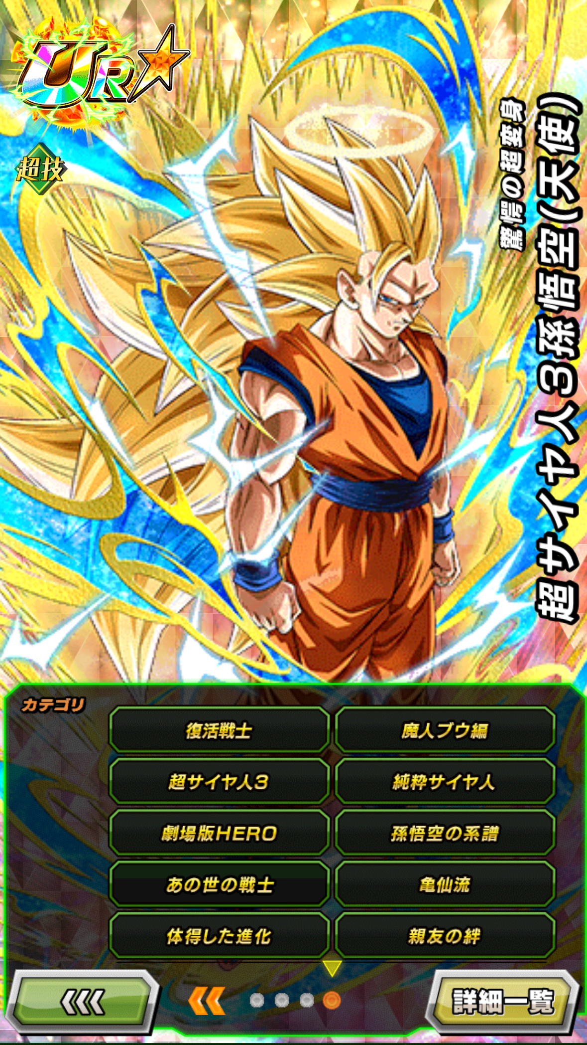 条件を満たせば『ATK3,365%up,DEF1,385%up,75%回避(1度だけ85%),全属性ガード,ダメージ53%軽減,無限上昇』の基礎性能を持っており、ブウ編キャラに掛け算のATK,DEF50%サポートを掛けられます。