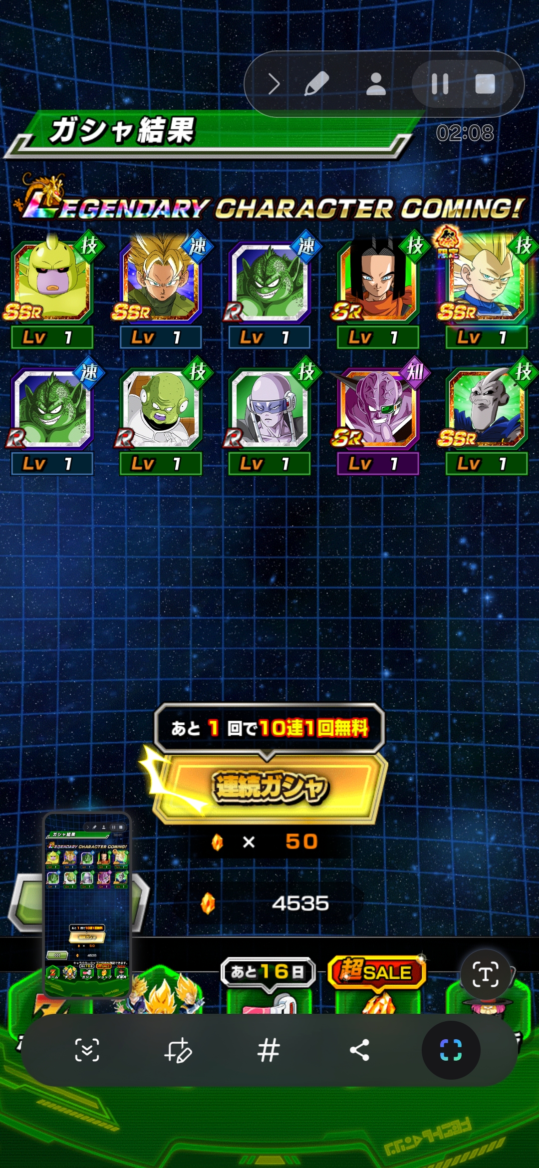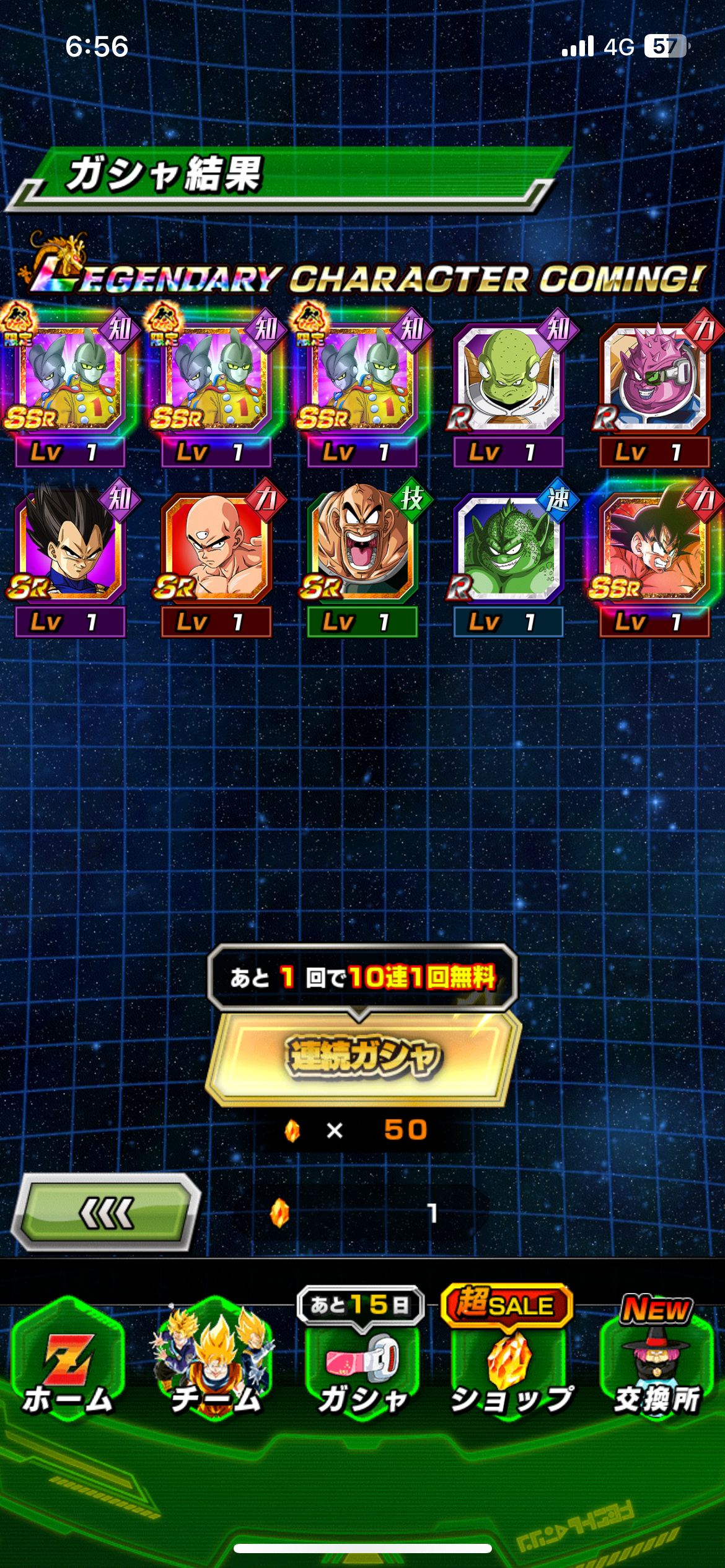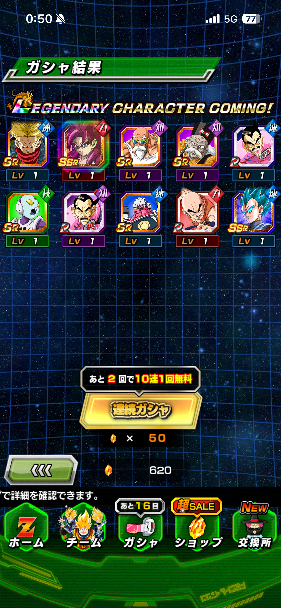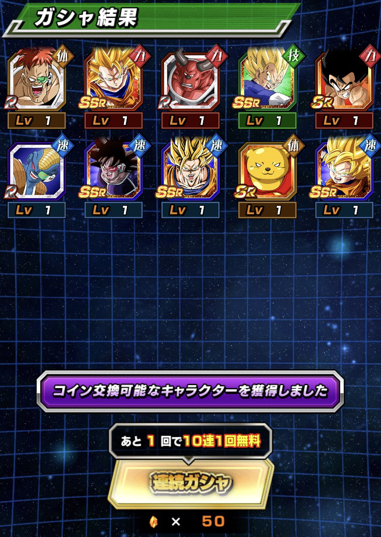 悟空10連、ベジータ40連で無事ゲット。