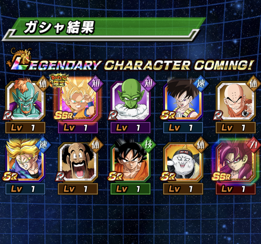 続いで伝説降臨祭、こちらは通常産ピッコロに加えてロゼザマスや悟空フリーザの凸も全然進んでないので副産物としては期待出来るものも多いです。